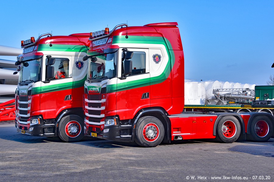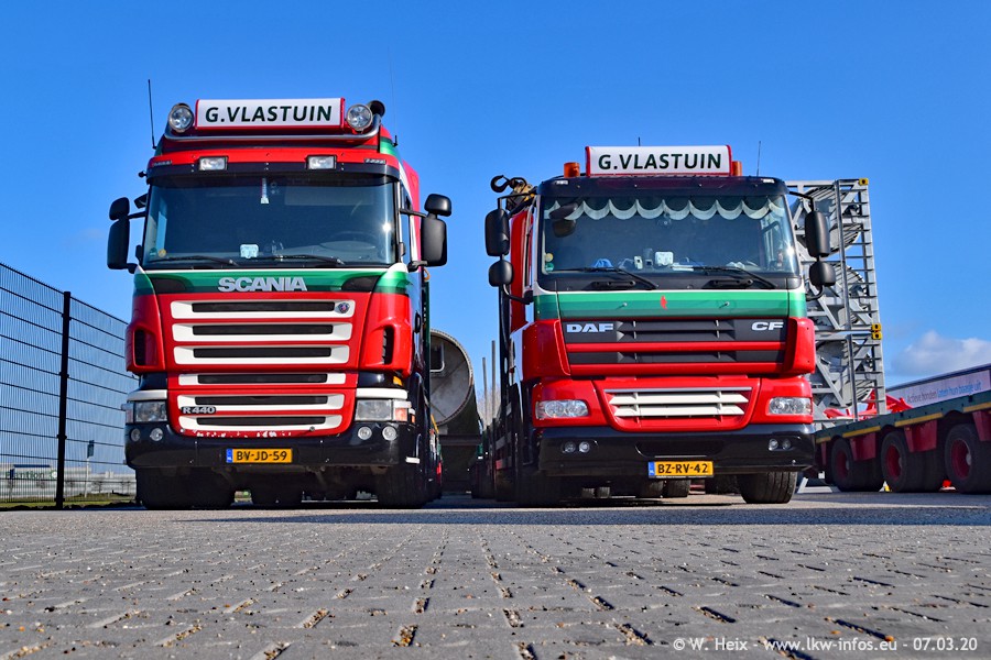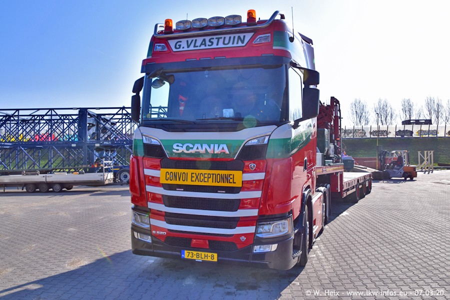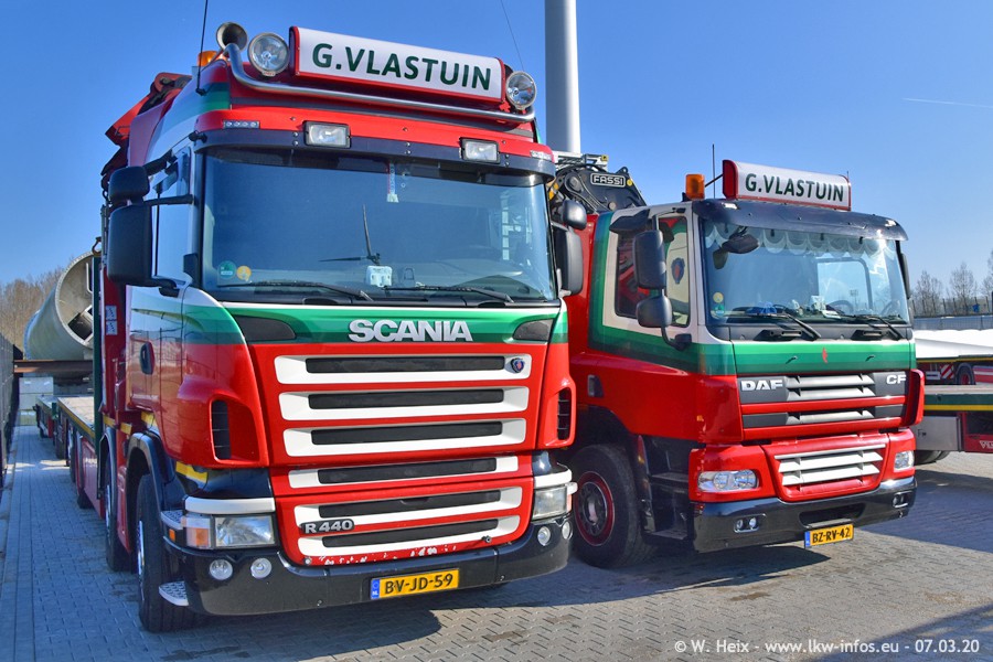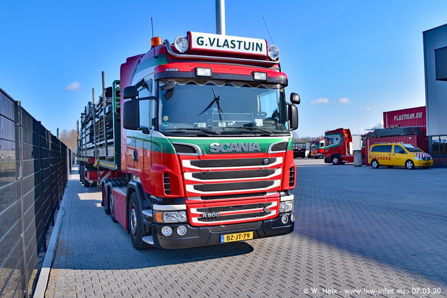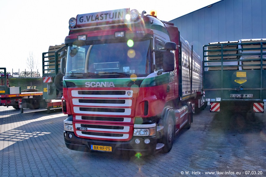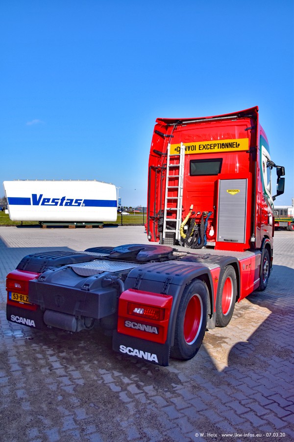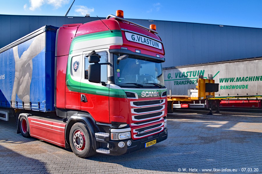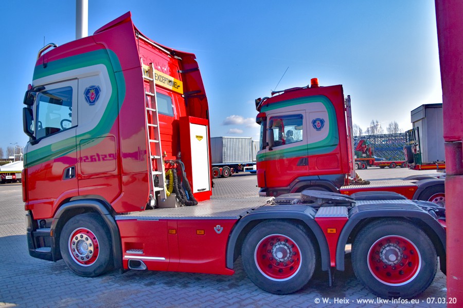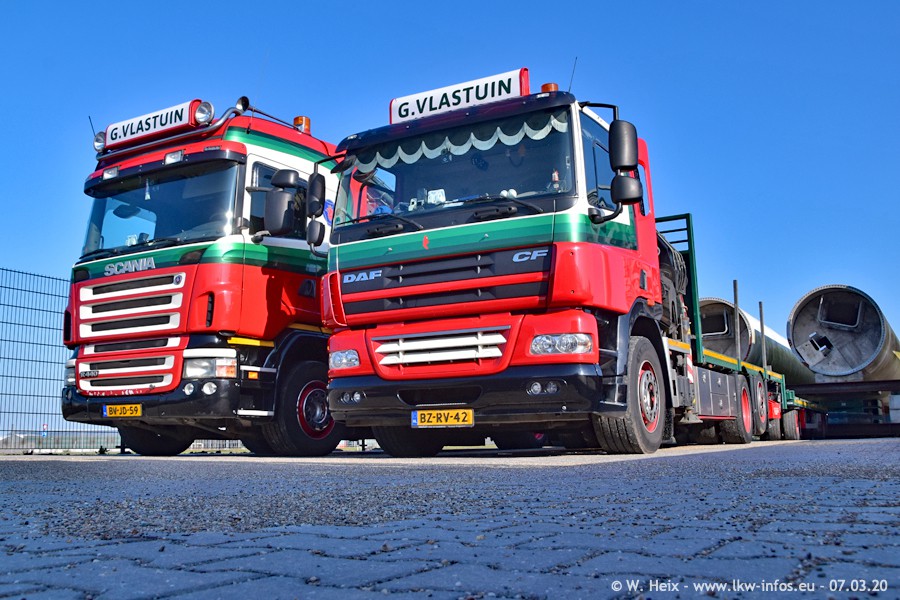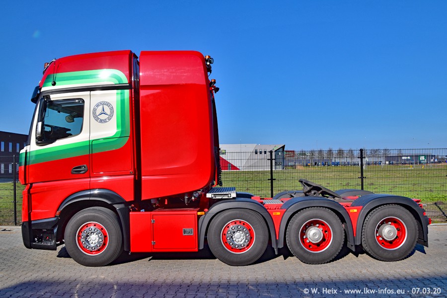 Ich war zwar erst vor vier Wochen bei G. Vlastuin. Aber dieser Besuch hatte einen Grund: der Mercedes-Benz Actros 4163 SLT war zuhause. Das ist der erste LKW und die erste Schwerlastzugmaschine von Mercedes-Benz im Fuhrpark von Vlastuin. Das Fahrzeug ist seit ca. Mitte 2019 im Einsatz. Diesmal war ein Teil der LKW nicht da, aber ich konnte nochmal von allen drei neuen SCANIA S NextGen schöne Fotos machen und auch vom "Rest". Auf dem neuen Gelände ist viel mehr Platz und somit kann man auch besser fotografieren.