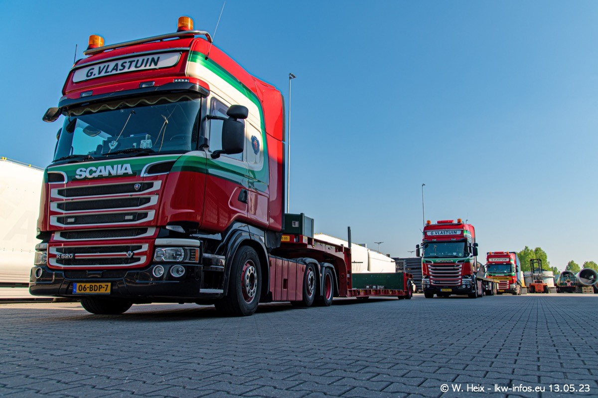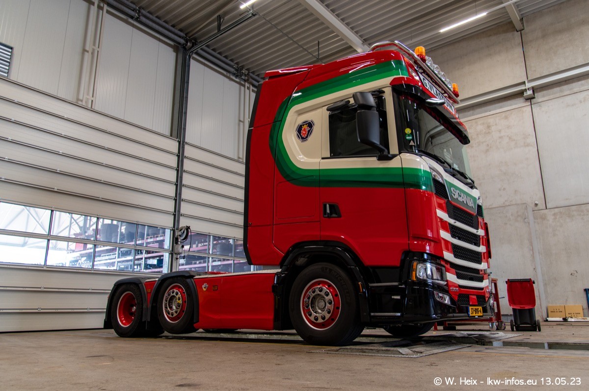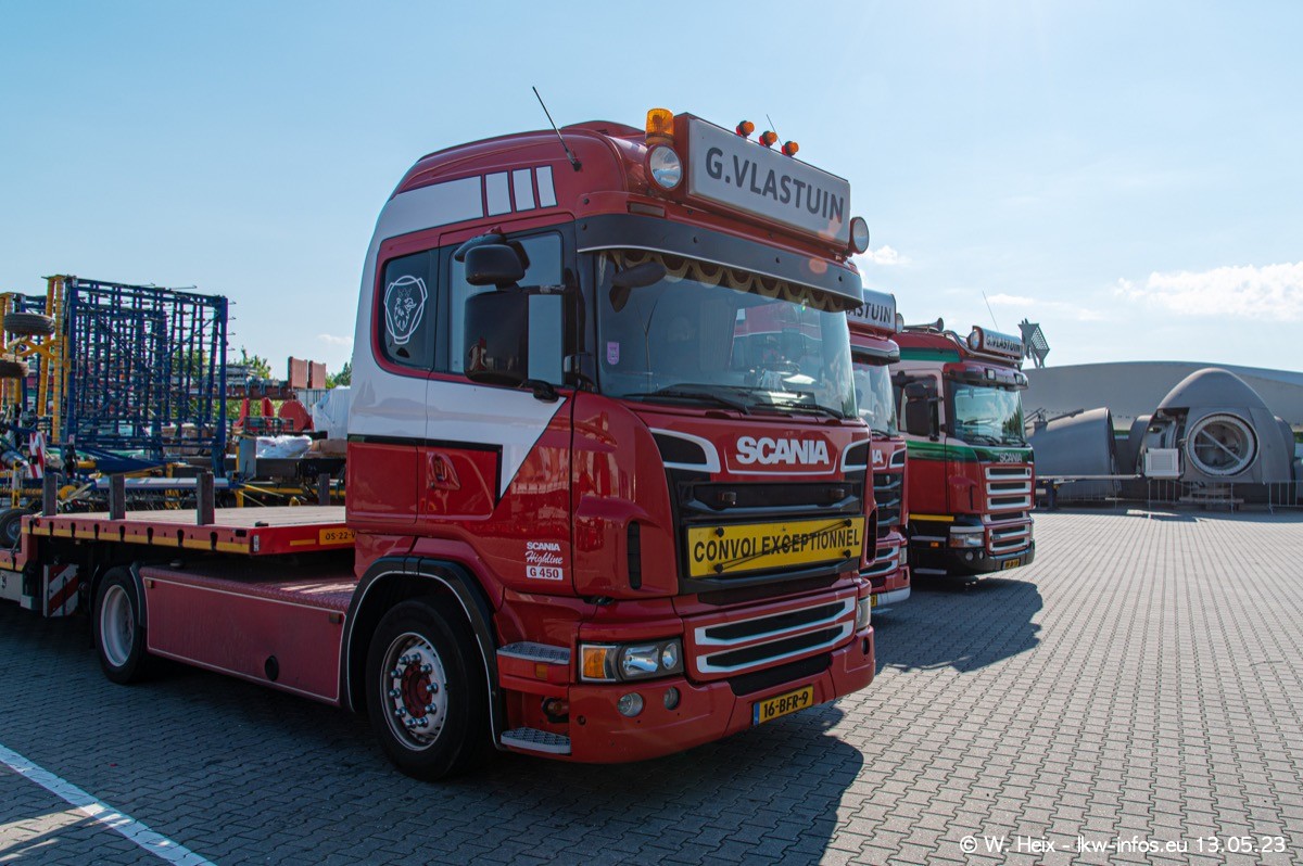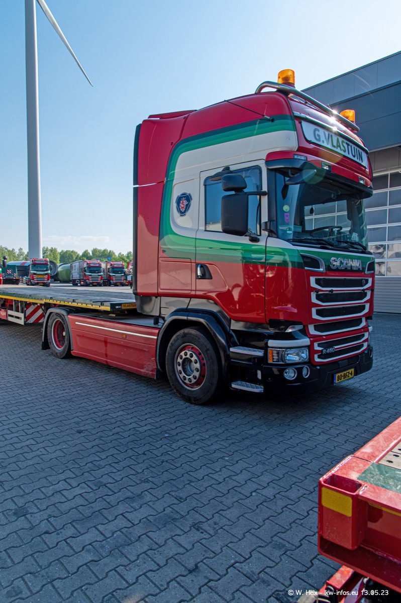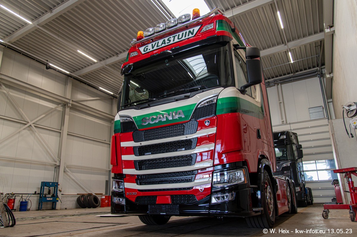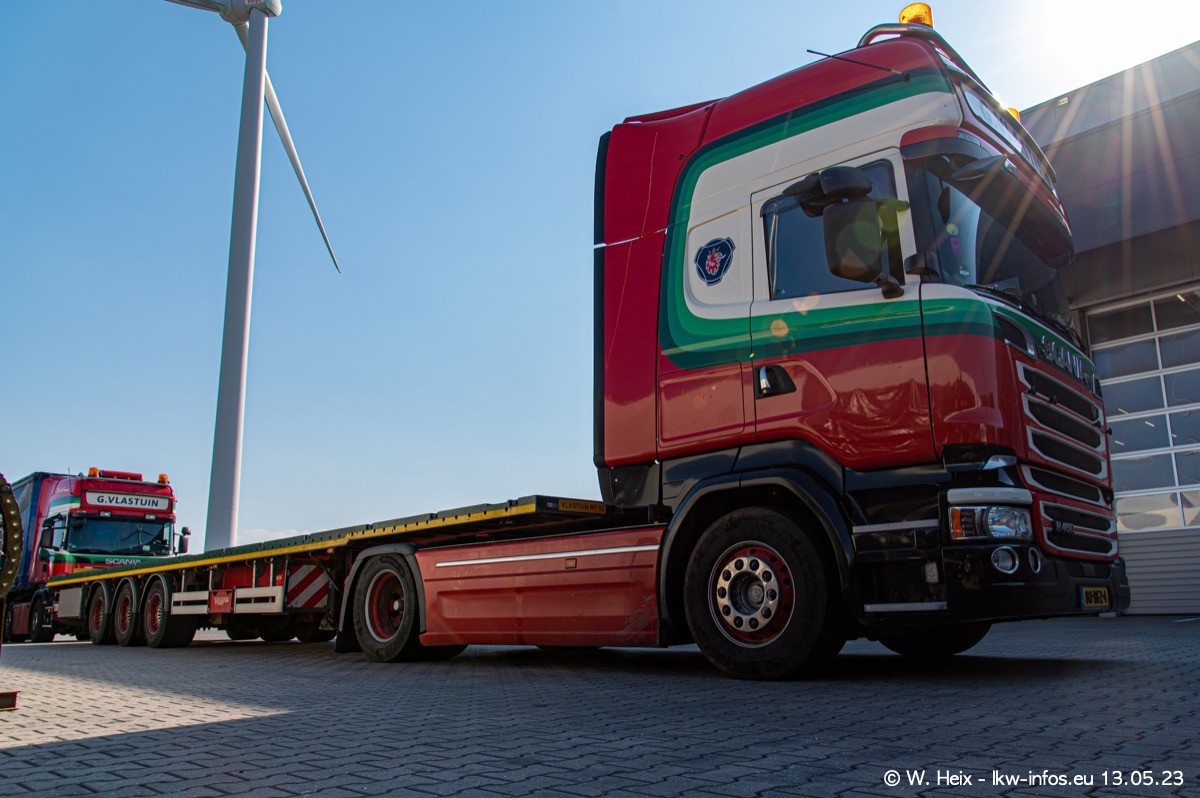 Im verganenen Jahr hat Vlastuin die Firma W. P. de Koning aus Vuren übernommnen. Zwei Fahrzeuge konnte ich heute fotografieren. Ganz neu sind zwei SCANIA 530 S V8, die ich in der Werkstatt fotografiert habe, zu sehen auf den ersten Bildern. Inzwischen sind fast alle älteren SCANIA ausgemustert bzw. durch aktuelle der Baureihen S und R ersetzt worden.
