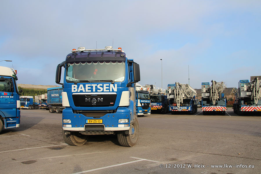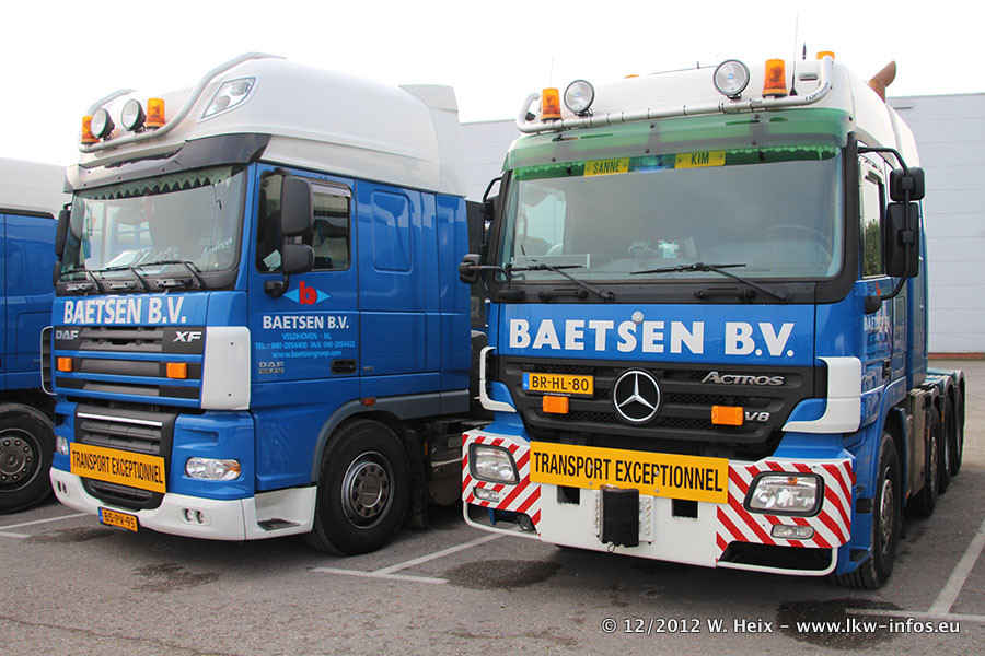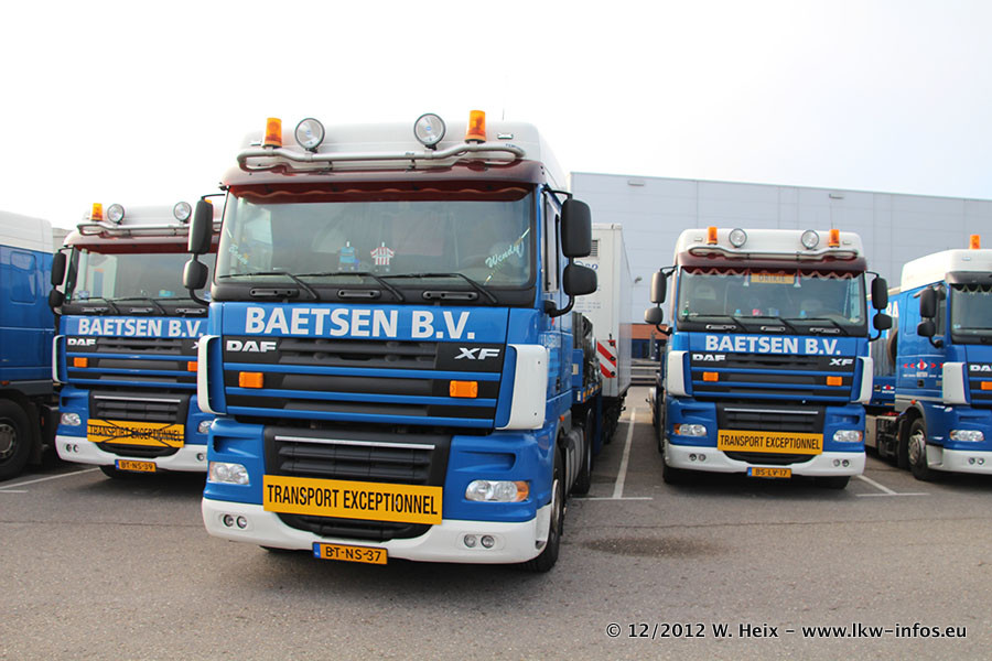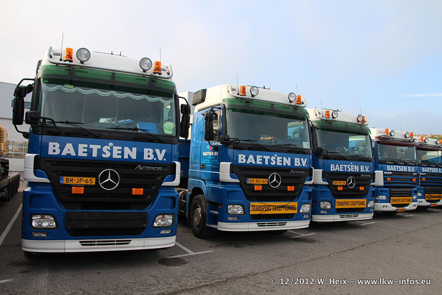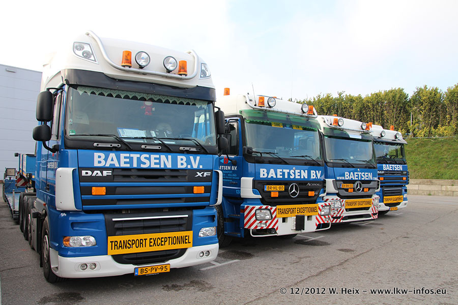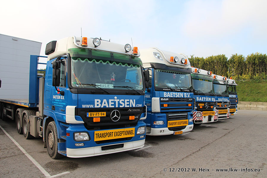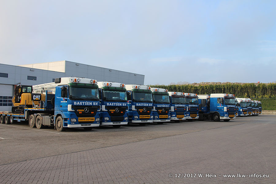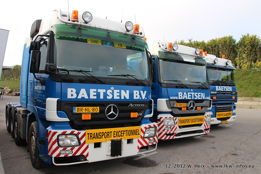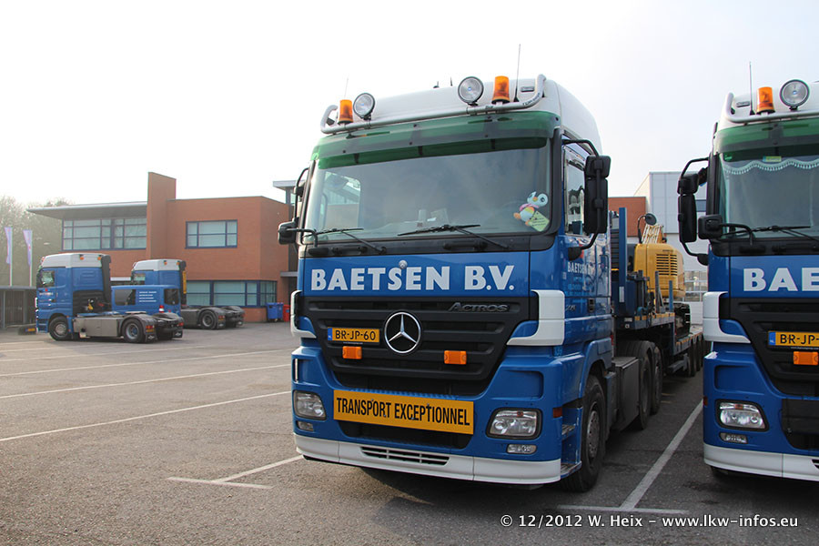 Die Firma Verstappen wurde von Baetsen übernommen, der Scania T V8 und der MAN TGX Kipper werden noch im Baetsen-Design lackiert. Die beiden anderen MAN TGS sind schon neu lackiert. Neu sind außerdem mehrere DAF XF 105, zu erkennen am "BZ"-Kennzeichen sowie ein 8-Achs Semitieflader von Broshuis.