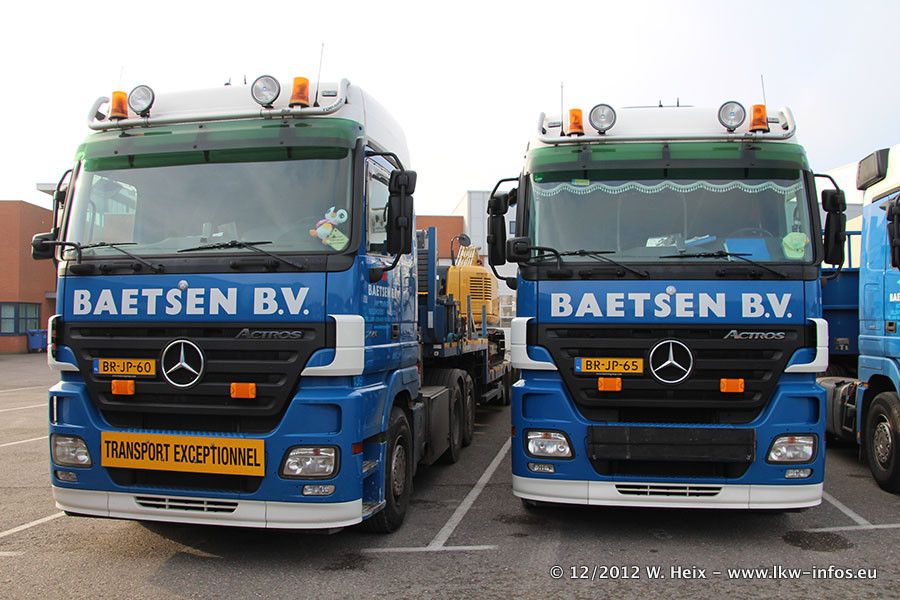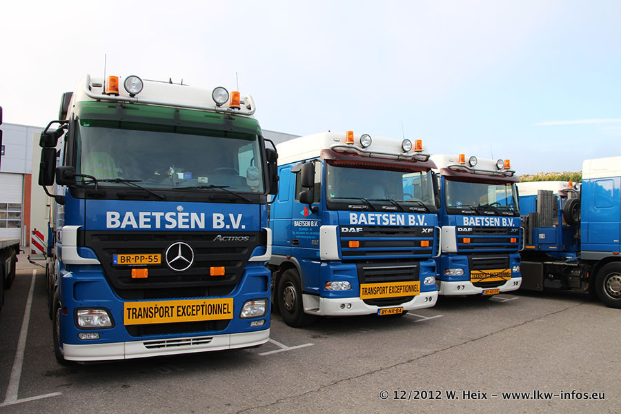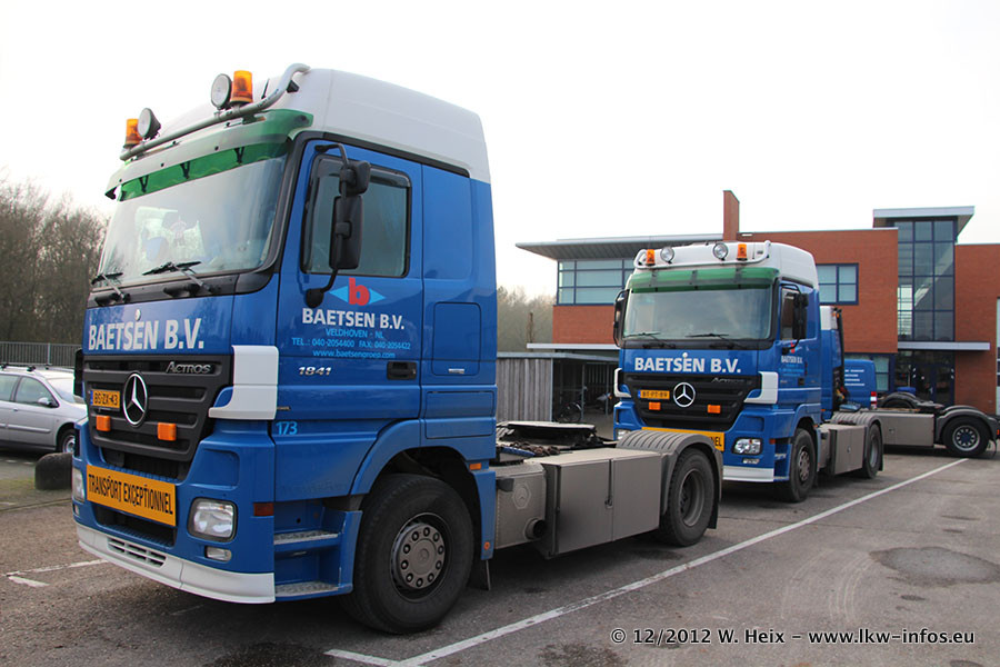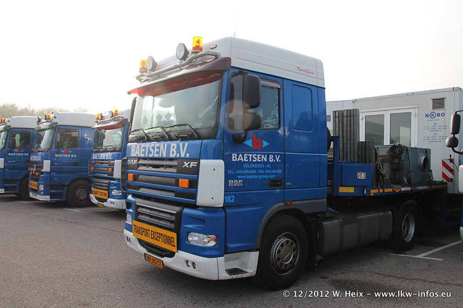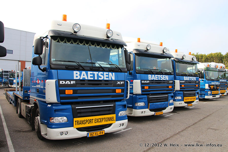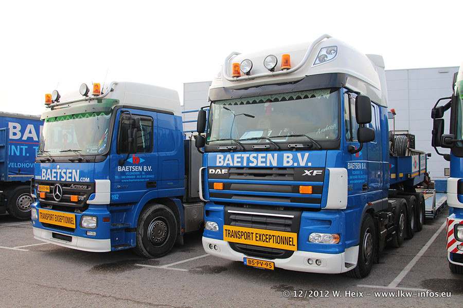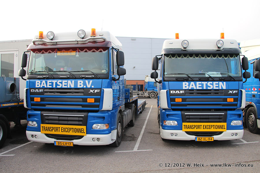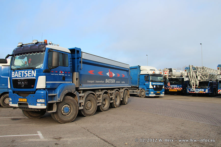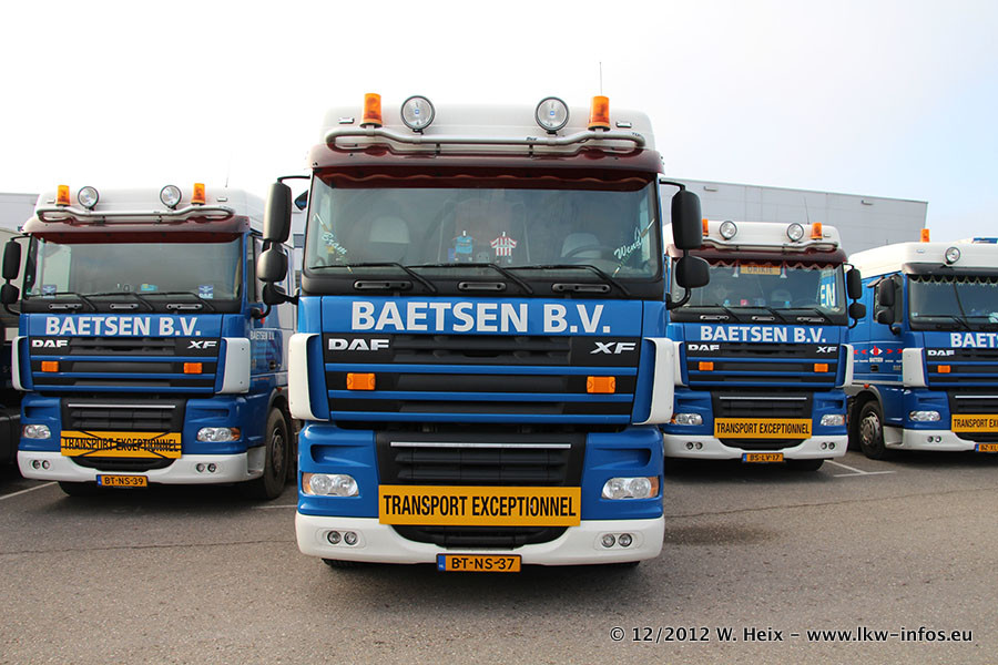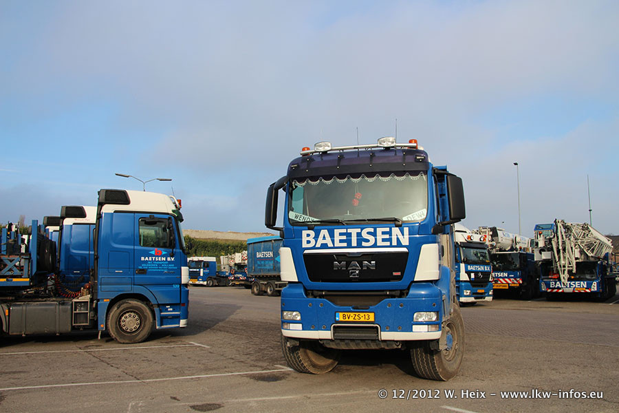 Die Firma Verstappen wurde von Baetsen übernommen, der Scania T V8 und der MAN TGX Kipper werden noch im Baetsen-Design lackiert. Die beiden anderen MAN TGS sind schon neu lackiert. Neu sind außerdem mehrere DAF XF 105, zu erkennen am "BZ"-Kennzeichen sowie ein 8-Achs Semitieflader von Broshuis.