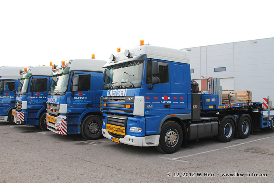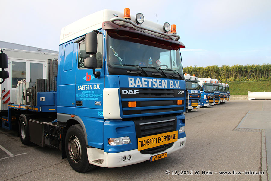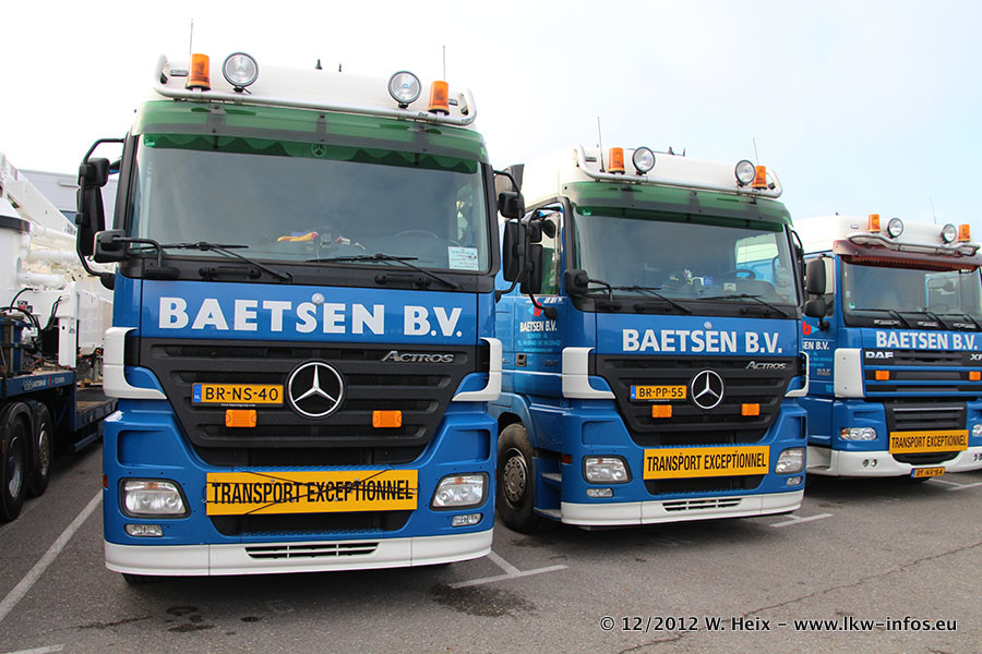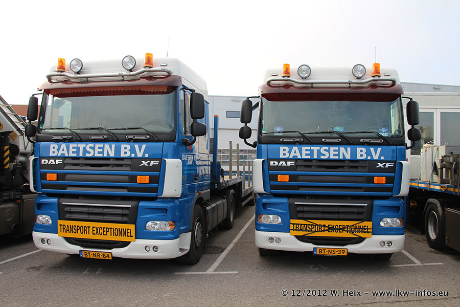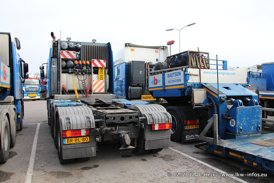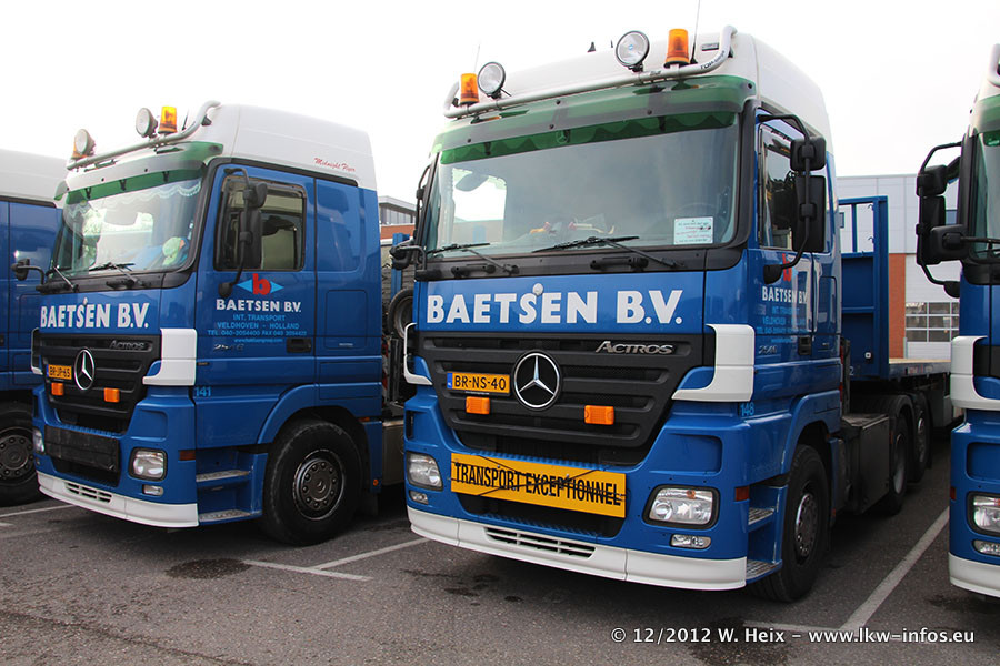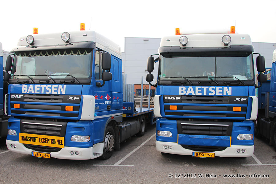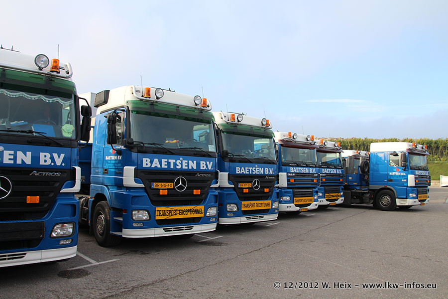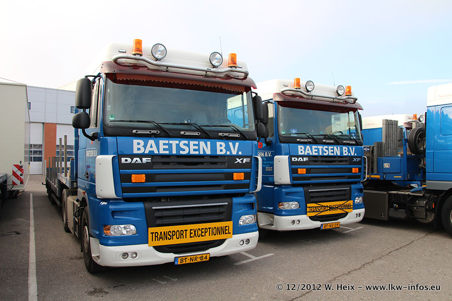 Die Firma Verstappen wurde von Baetsen übernommen, der Scania T V8 und der MAN TGX Kipper werden noch im Baetsen-Design lackiert. Die beiden anderen MAN TGS sind schon neu lackiert. Neu sind außerdem mehrere DAF XF 105, zu erkennen am "BZ"-Kennzeichen sowie ein 8-Achs Semitieflader von Broshuis.