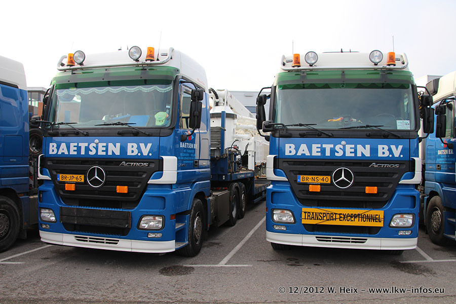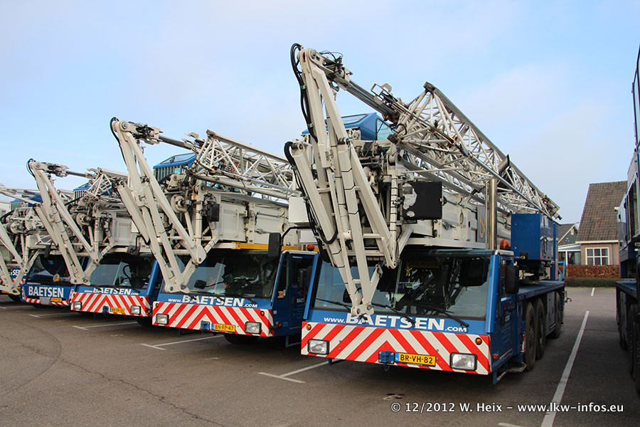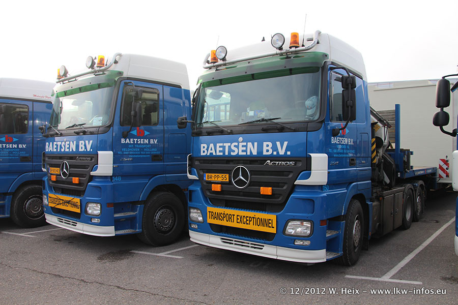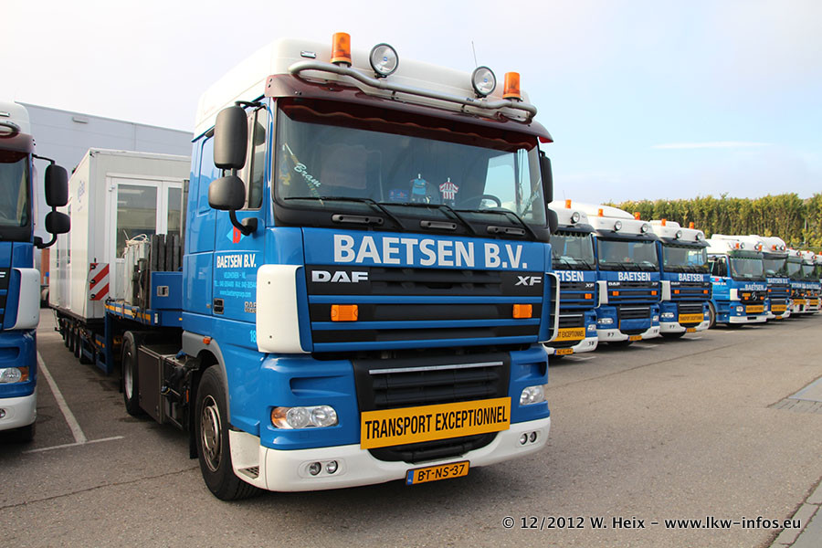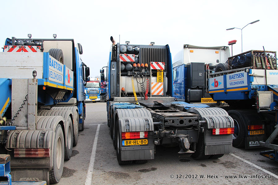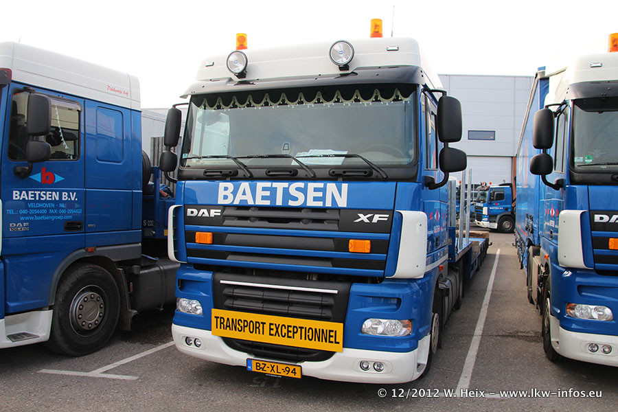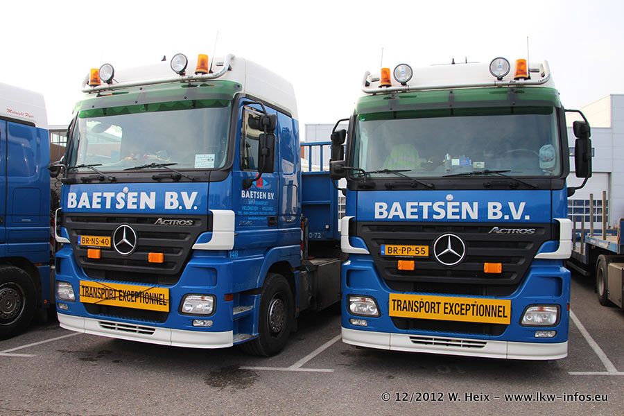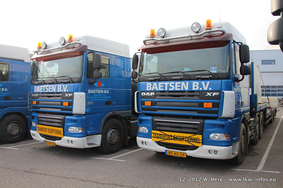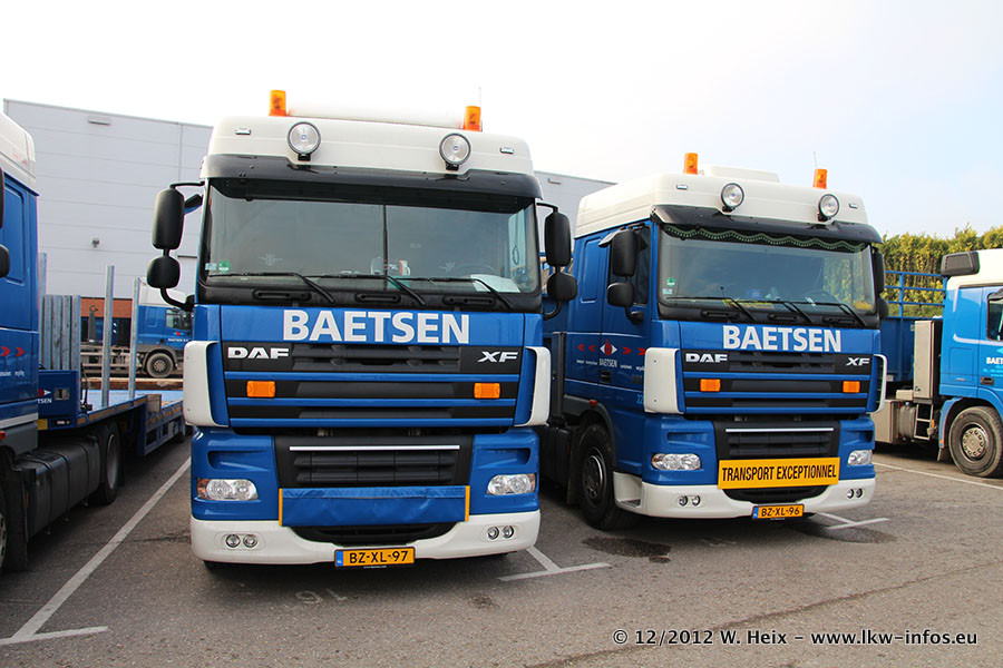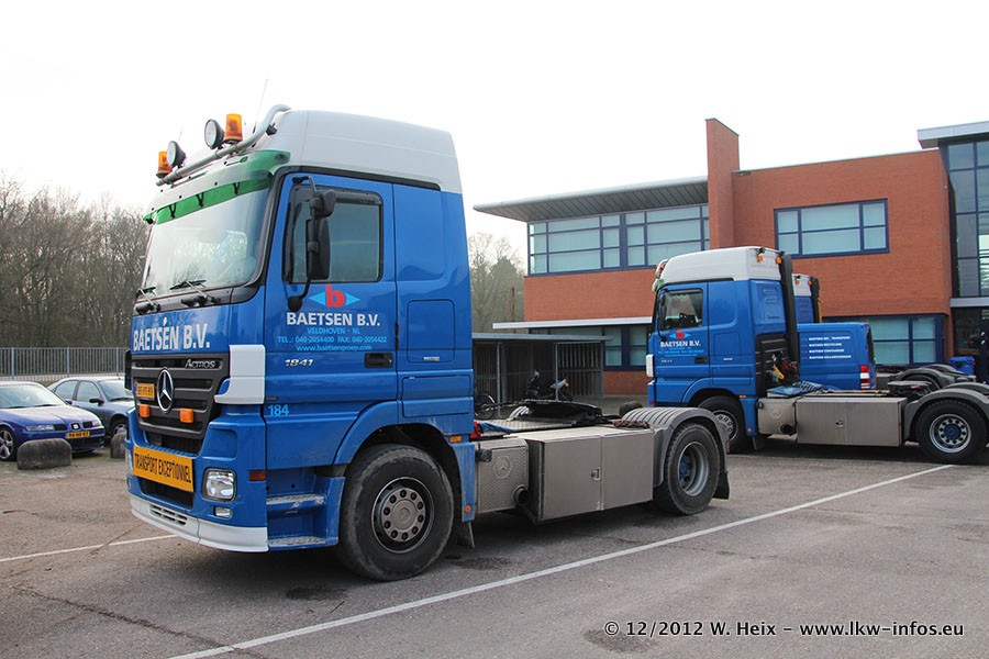 Die Firma Verstappen wurde von Baetsen übernommen, der Scania T V8 und der MAN TGX Kipper werden noch im Baetsen-Design lackiert. Die beiden anderen MAN TGS sind schon neu lackiert. Neu sind außerdem mehrere DAF XF 105, zu erkennen am "BZ"-Kennzeichen sowie ein 8-Achs Semitieflader von Broshuis.