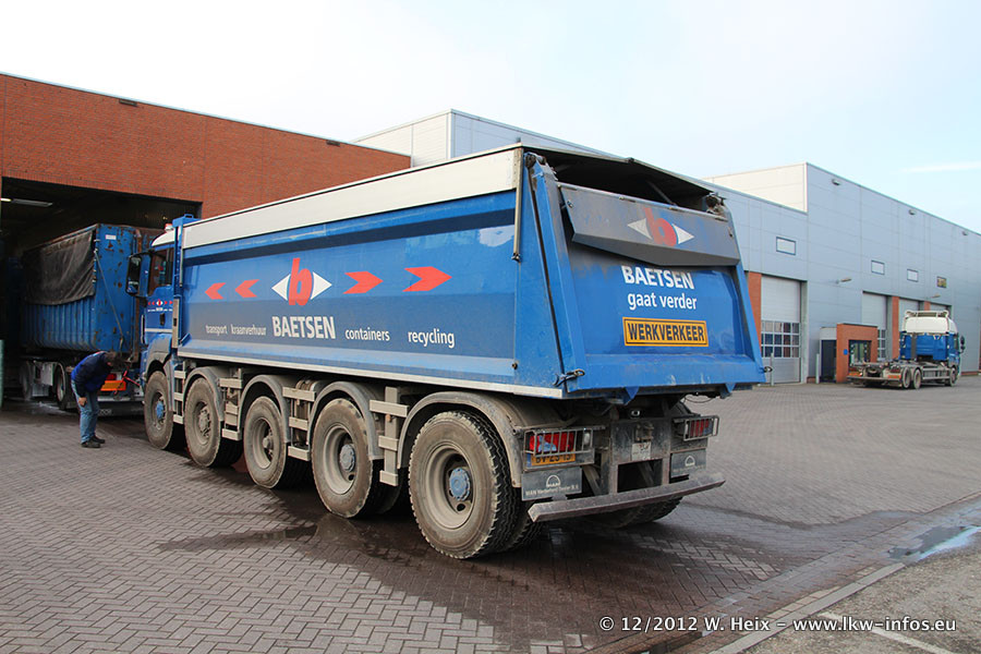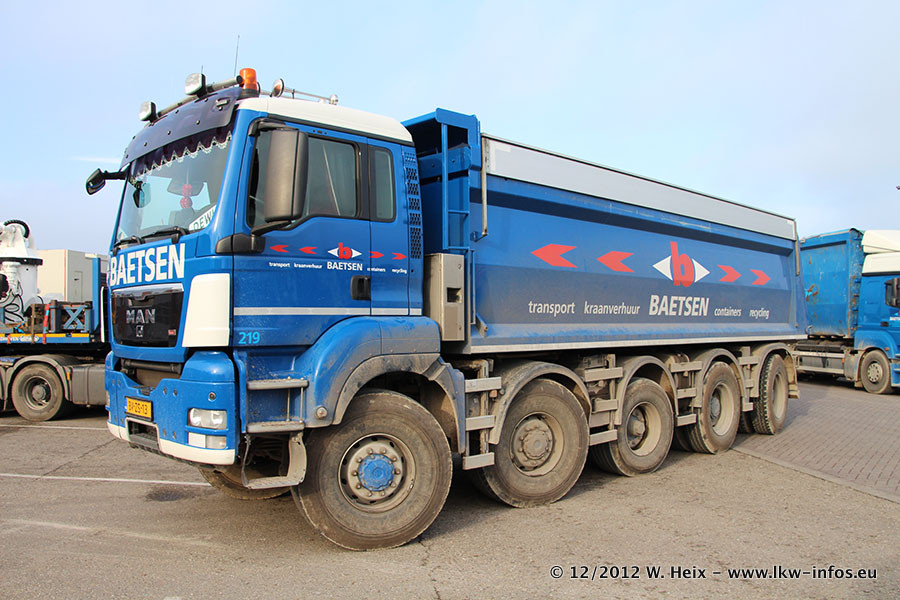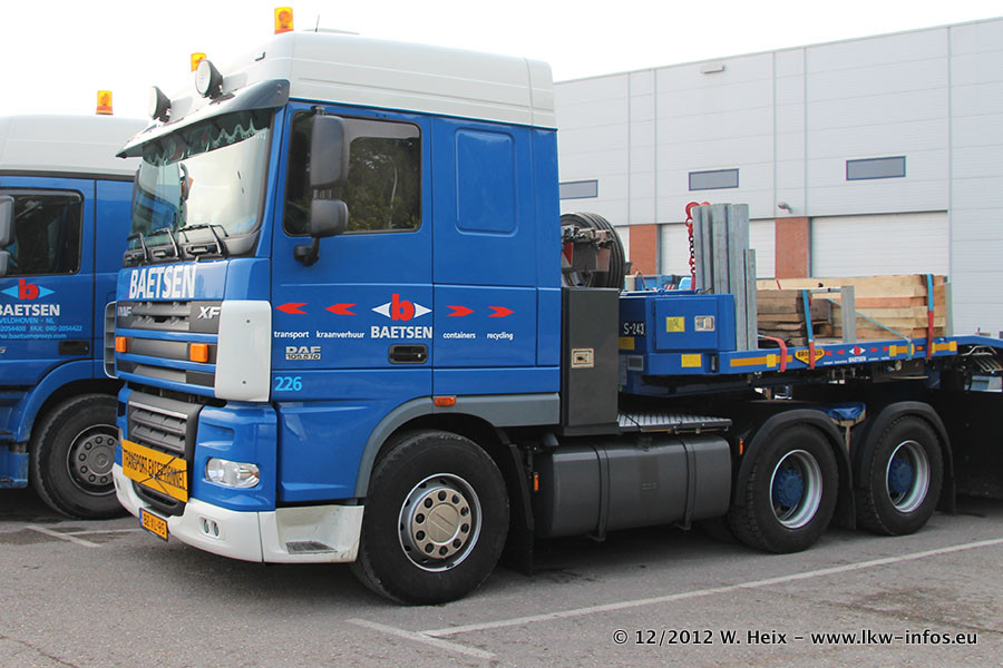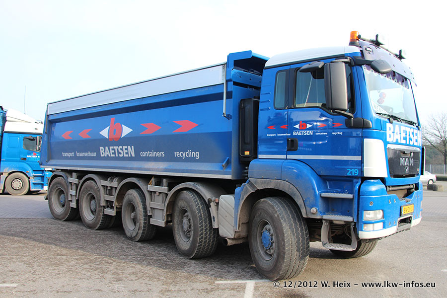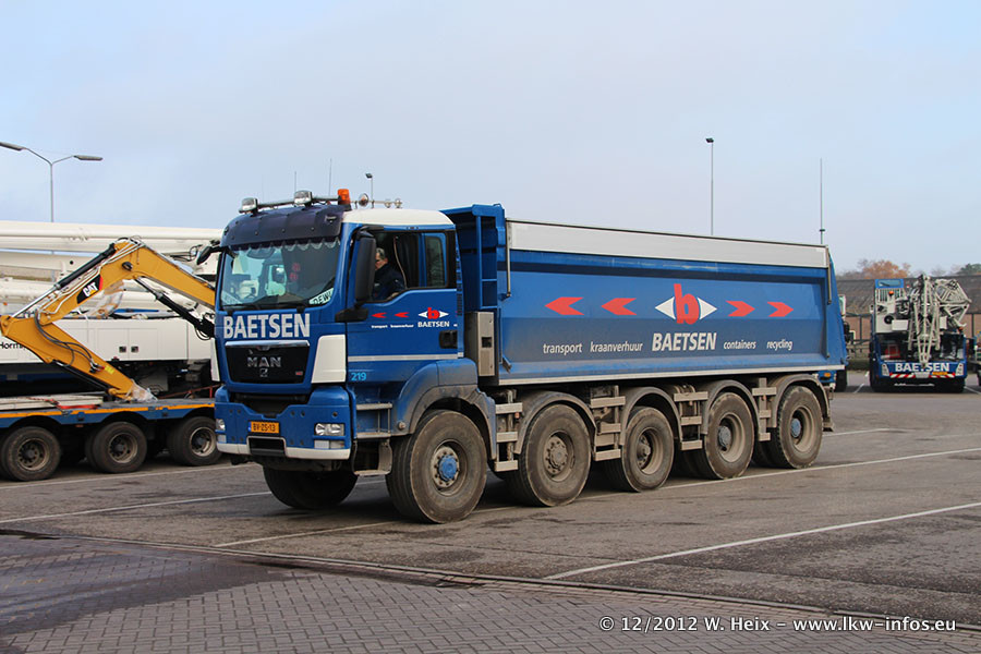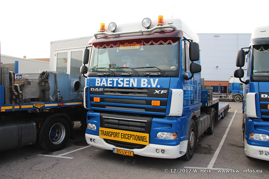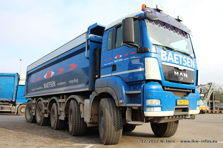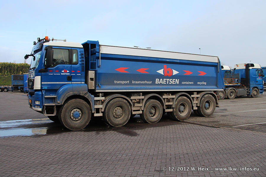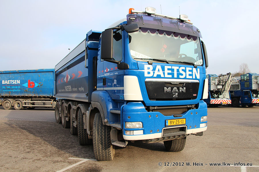Die Firma Verstappen wurde von Baetsen übernommen, der Scania T V8 und der MAN TGX Kipper werden noch im Baetsen-Design lackiert. Die beiden anderen MAN TGS sind schon neu lackiert. Neu sind außerdem mehrere DAF XF 105, zu erkennen am "BZ"-Kennzeichen sowie ein 8-Achs Semitieflader von Broshuis.