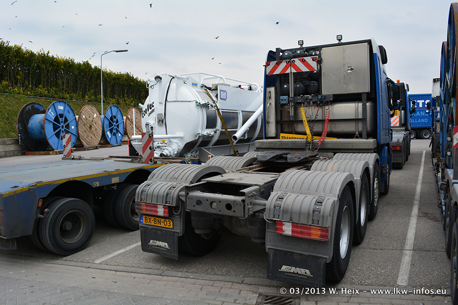 Neu im Fuhrpark sind seit meinem letzten Besuch eine DAF CF 85.460 Vierachszugmaschine mit schwerem Ladekran und ein DAF CF 85.460 Fünfachser mit Liebherr LTF Aufbaukran. Diese Bilder sind in Teil 9, da die Bilder des Besuchs auf drei Galerien aufgeteilt sind.