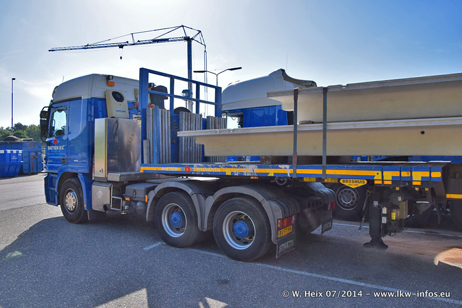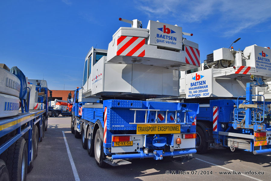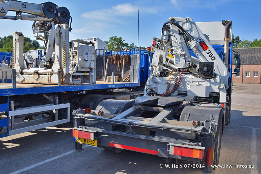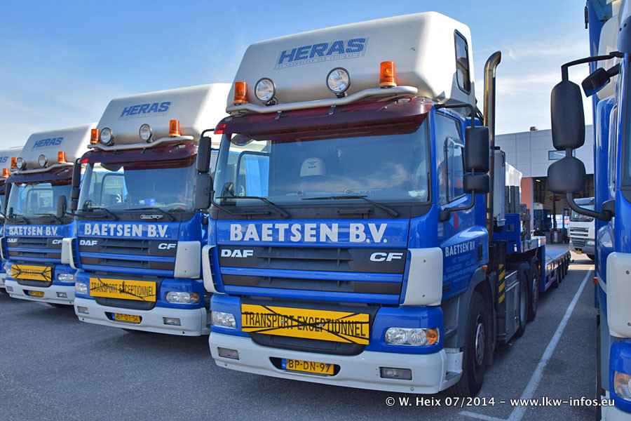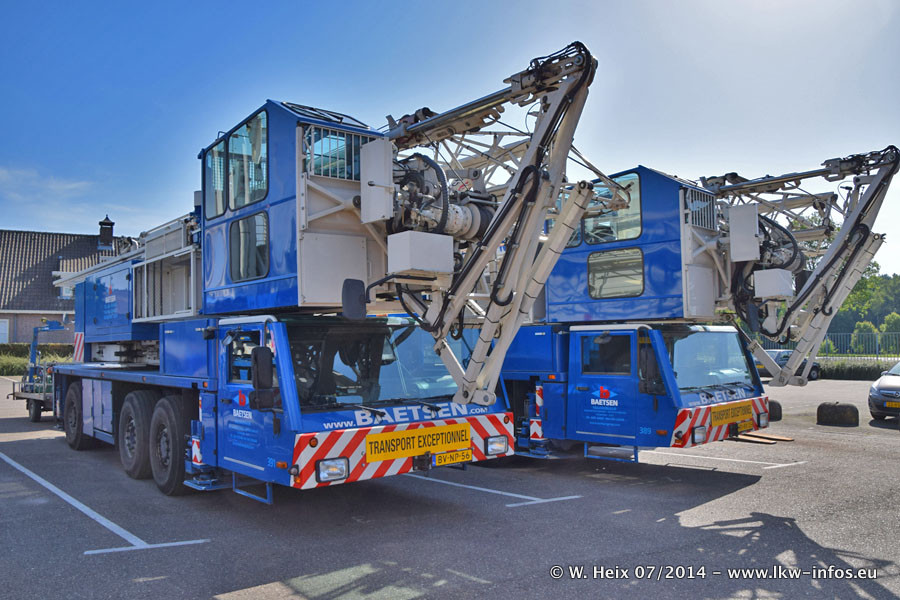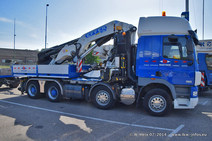 Bei Baetsen gibt es in diesem Jahr die ersten neuen LKW. Das sind zwei DAF XF Euro 6 sowie zwei Mercedes-Benz Actros 4 1843. Drei der neuen LKW konnte ich fotografieren, der zweite Actros steht in der Niederlassung Son. Wei ich bei diesem Besuch erstmals anders herum über das weitläufige Gelände gegangen bin, sind die Bilder aus dem Bereich Schwertransport und Kran nicht am Anfang der Galerie zu sehen.