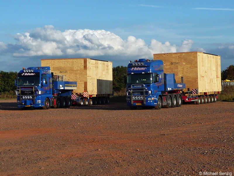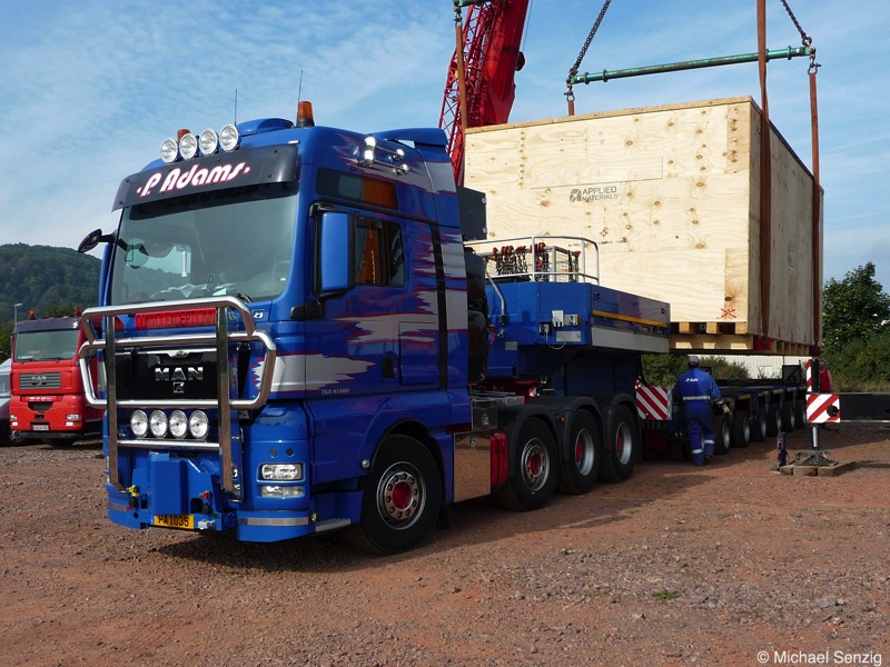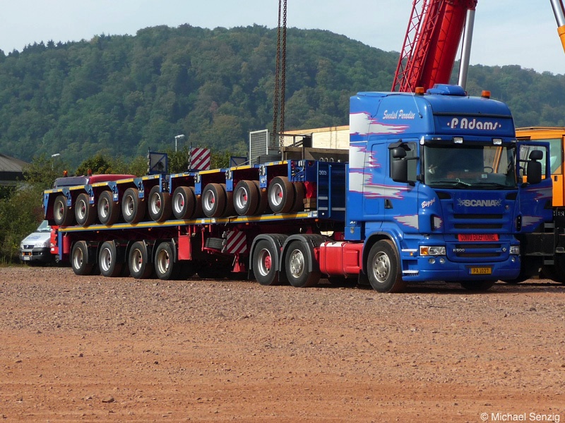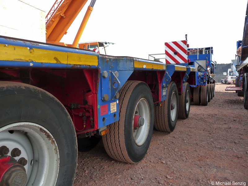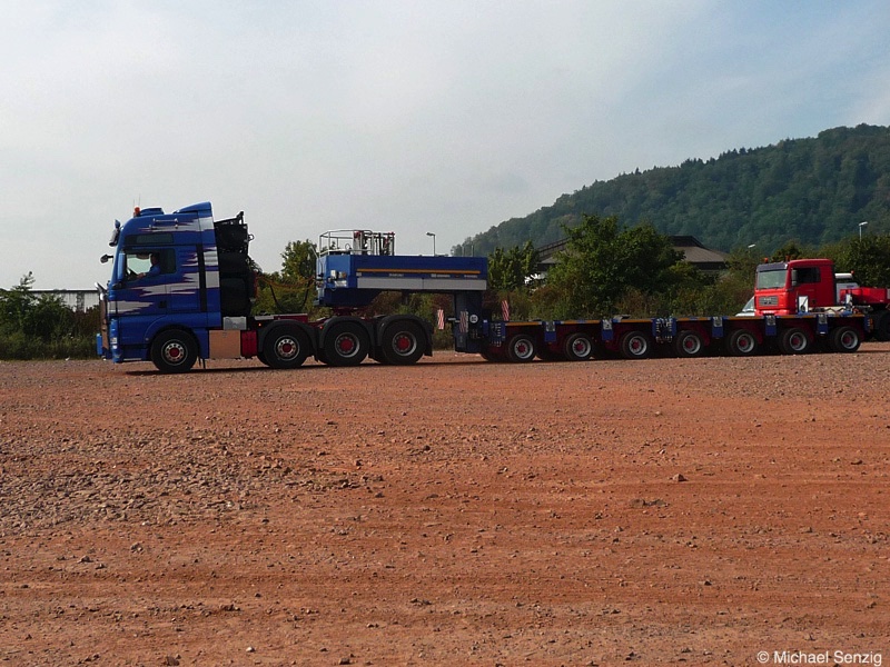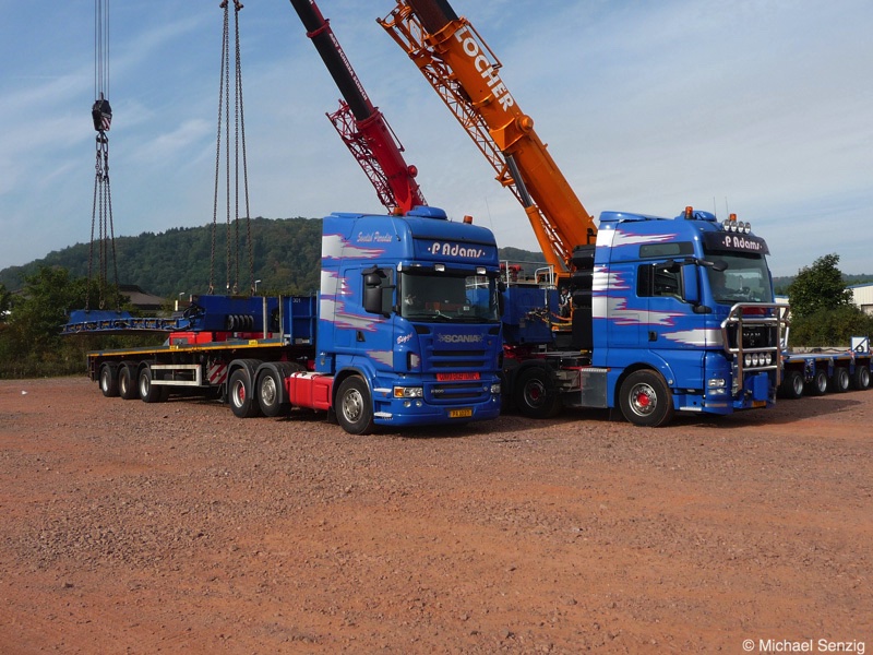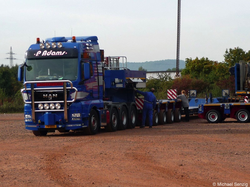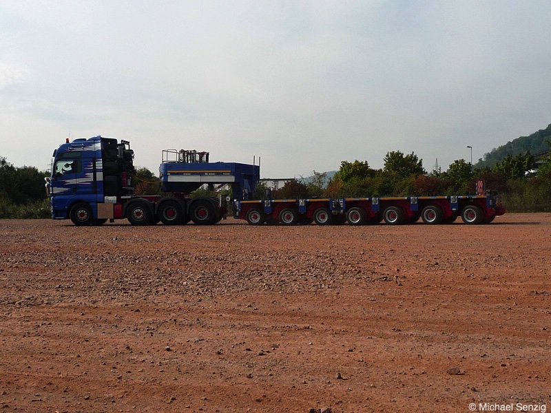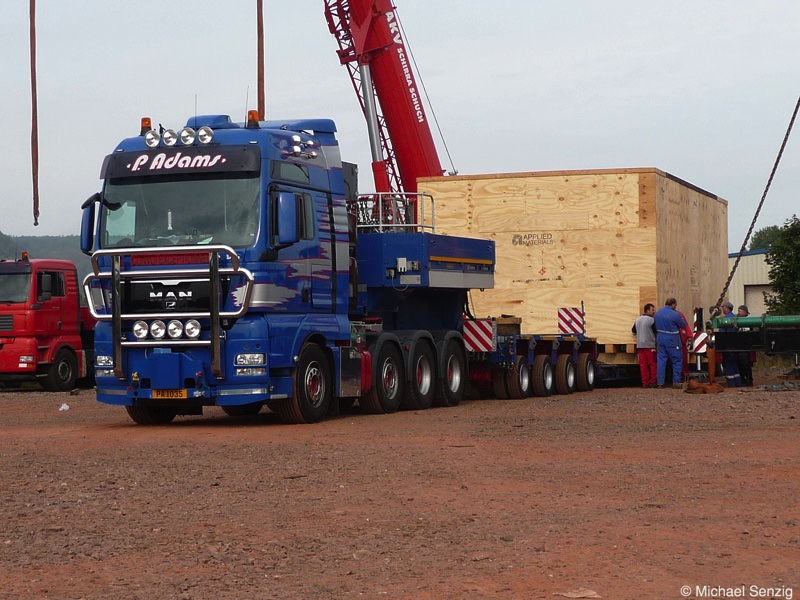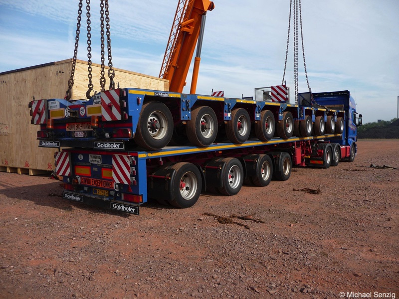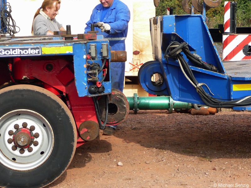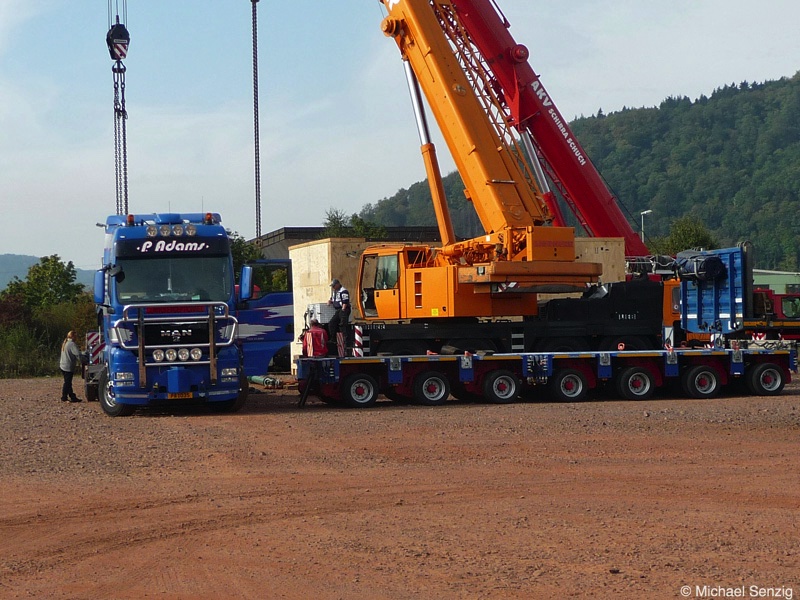 Am 24.09.2009 wurden im Dillinger Hafen zwei zwischengelagerte große Kisten auf zwei Schwertransport-Einheiten von P. Adams verladen. Michael Senzig war dabei und hat einen Teil davon fotografiert.