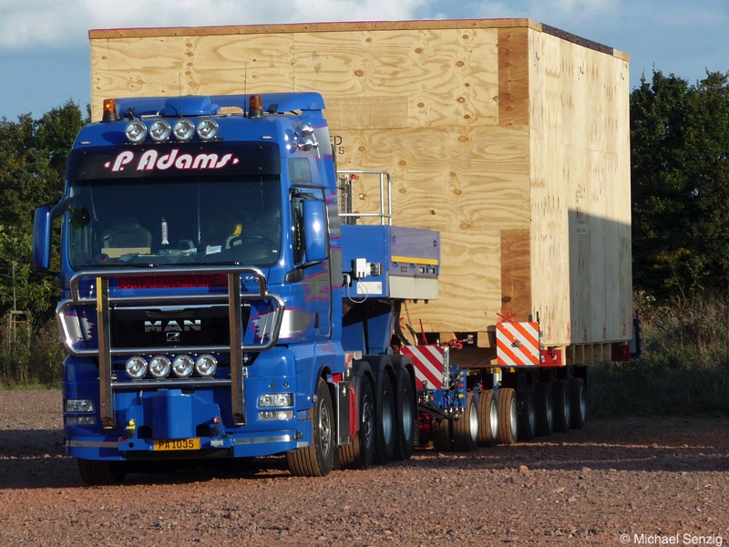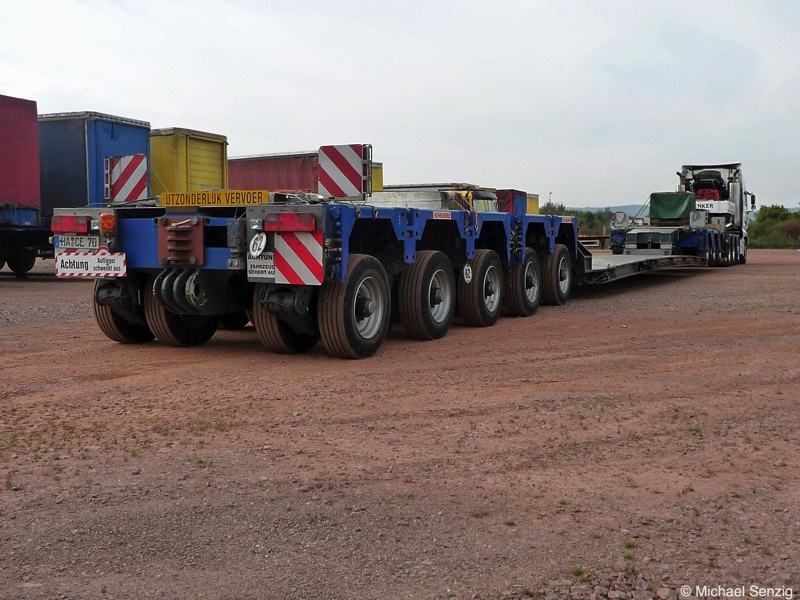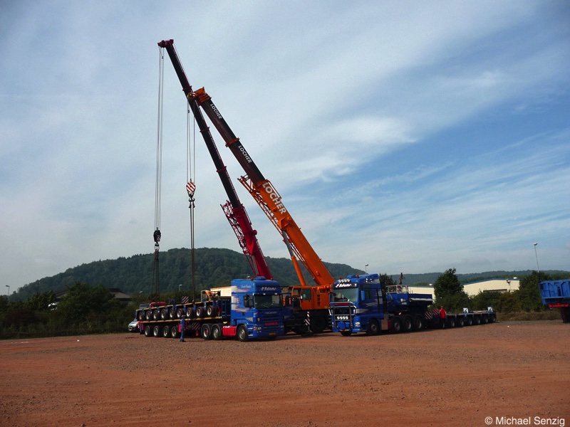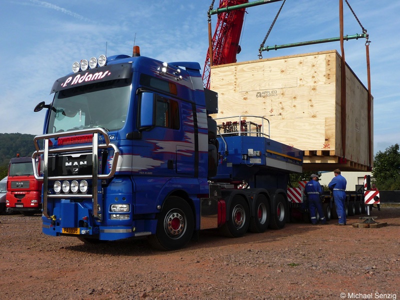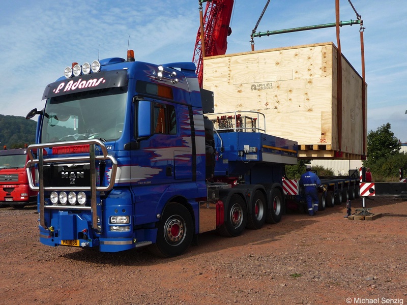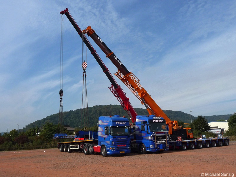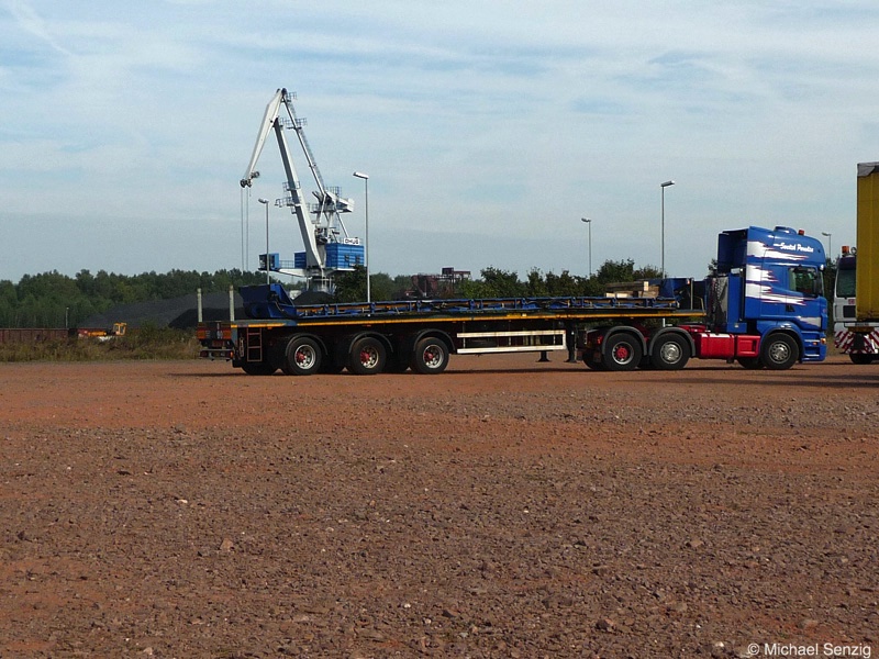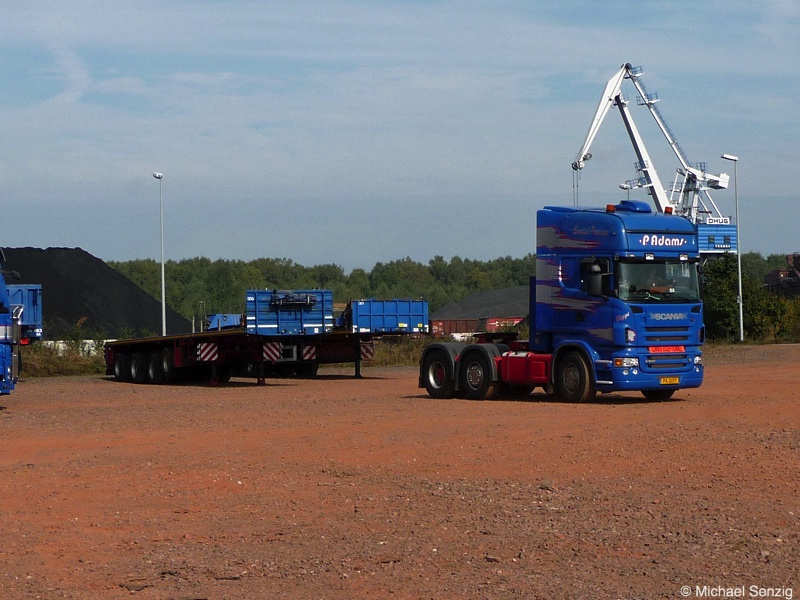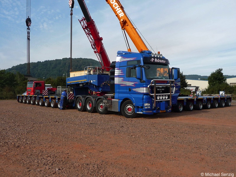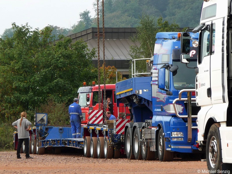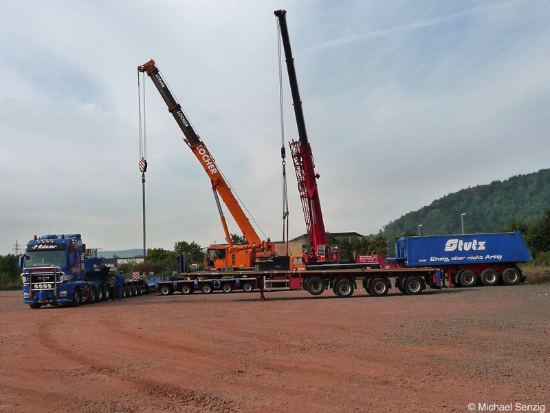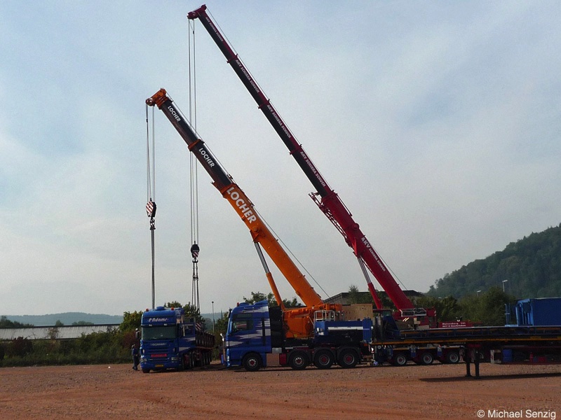 Am 24.09.2009 wurden im Dillinger Hafen zwei zwischengelagerte große Kisten auf zwei Schwertransport-Einheiten von P. Adams verladen. Michael Senzig war dabei und hat einen Teil davon fotografiert.