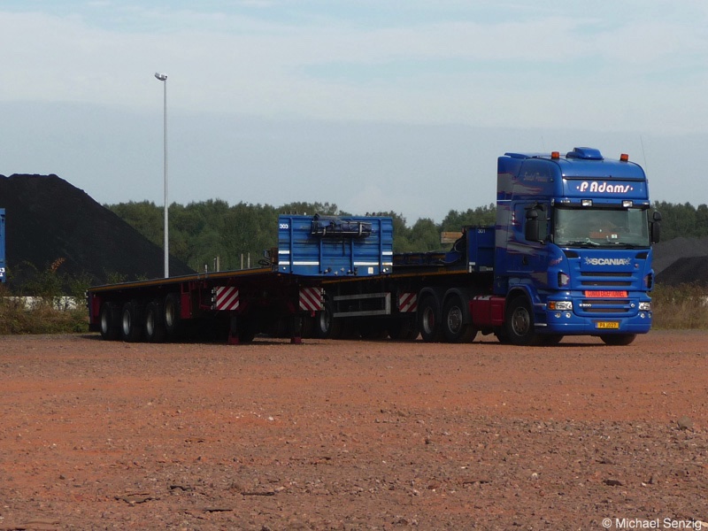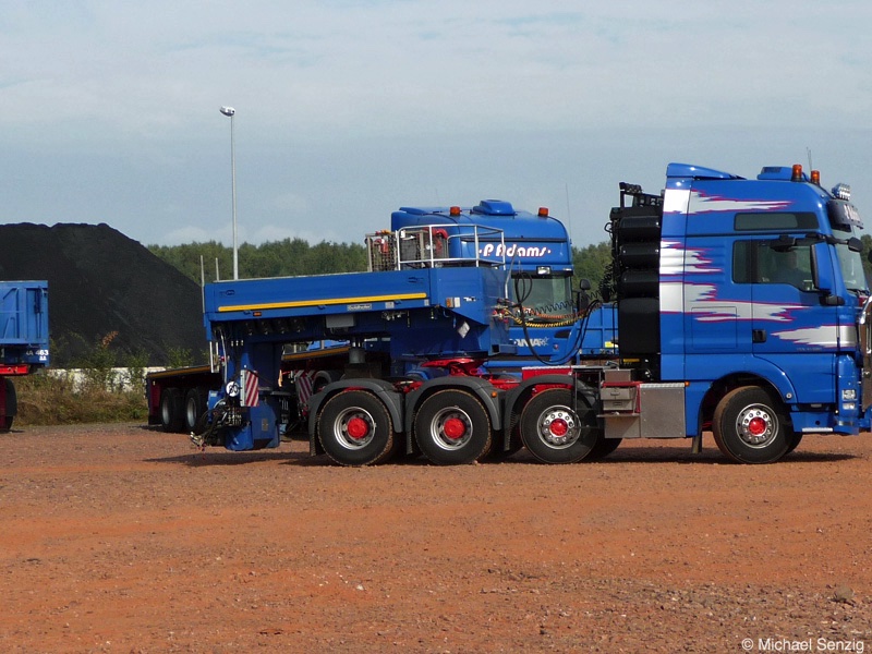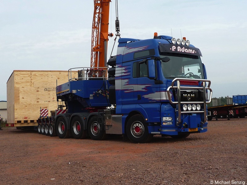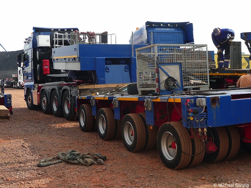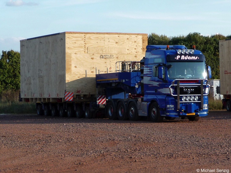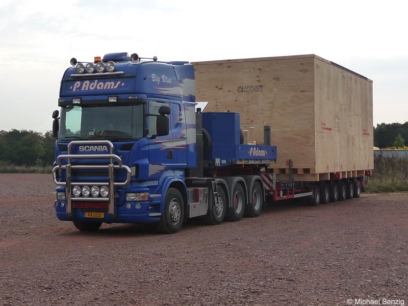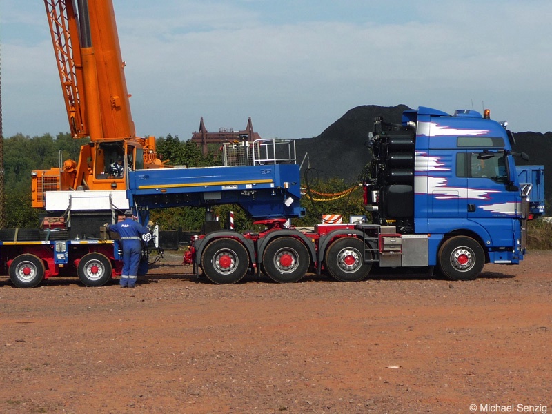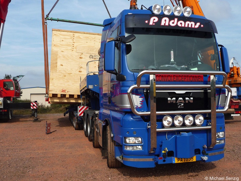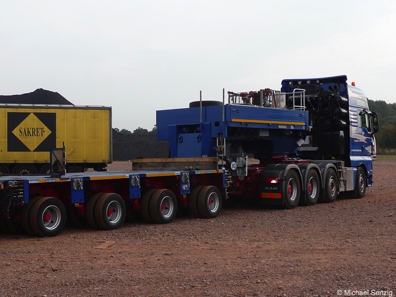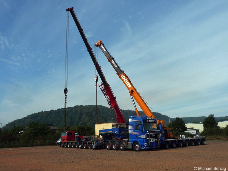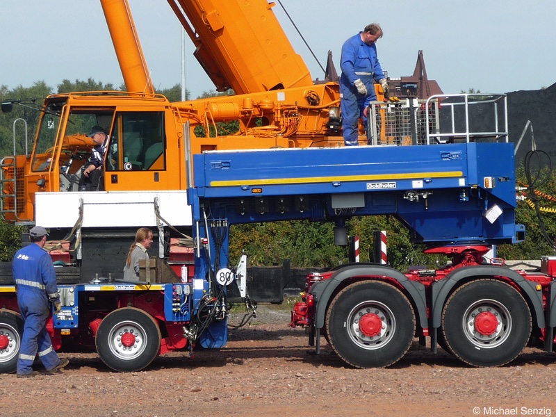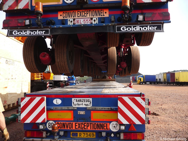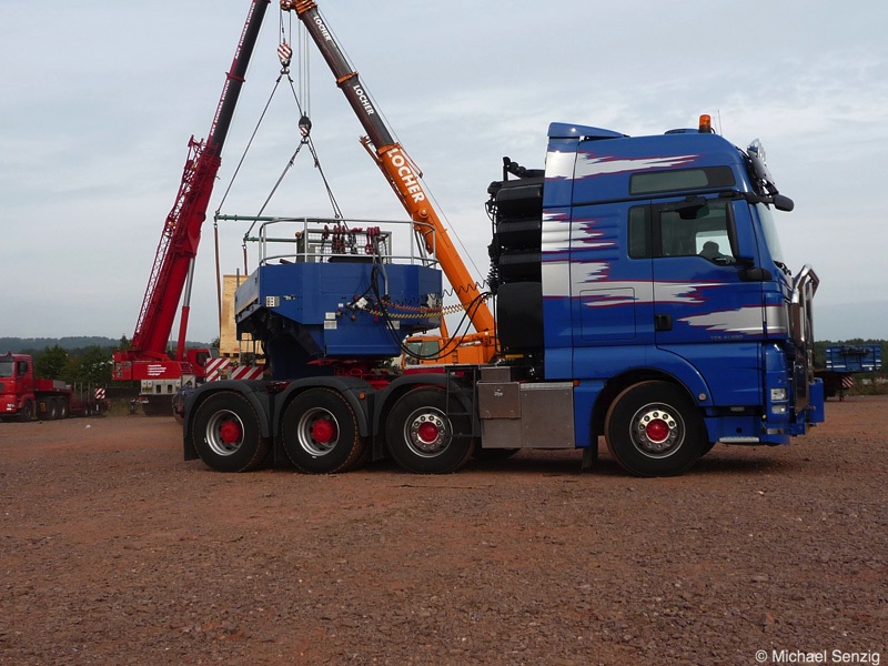 Am 24.09.2009 wurden im Dillinger Hafen zwei zwischengelagerte große Kisten auf zwei Schwertransport-Einheiten von P. Adams verladen. Michael Senzig war dabei und hat einen Teil davon fotografiert.