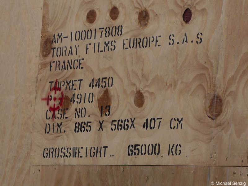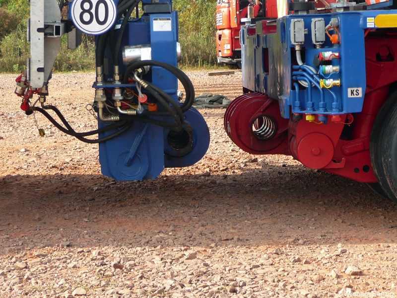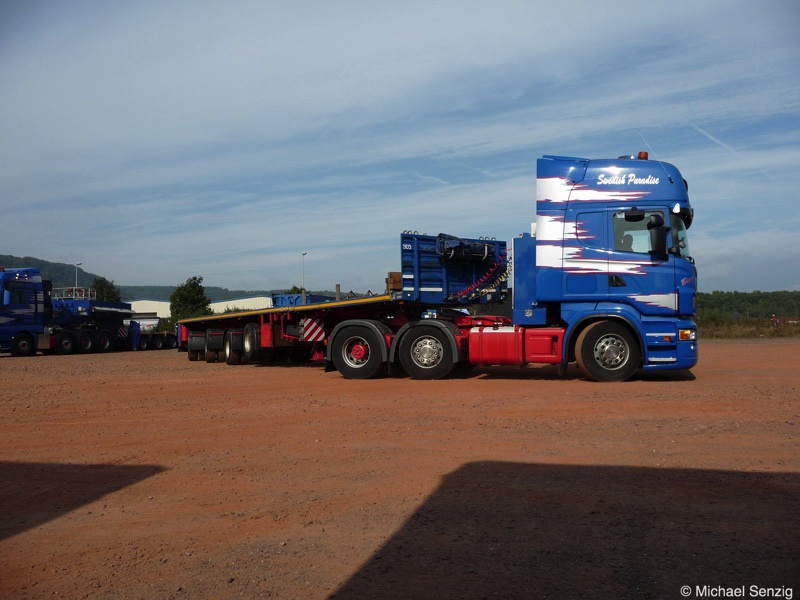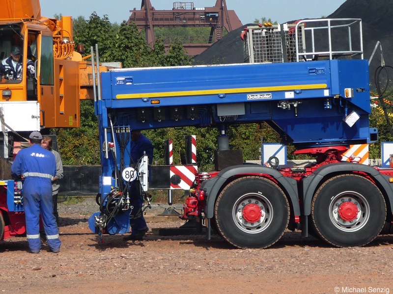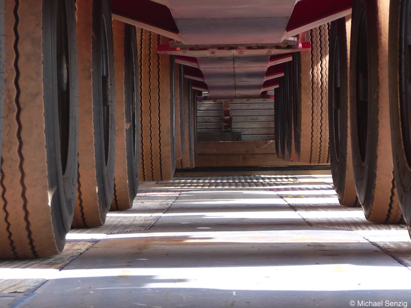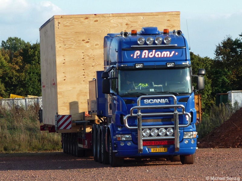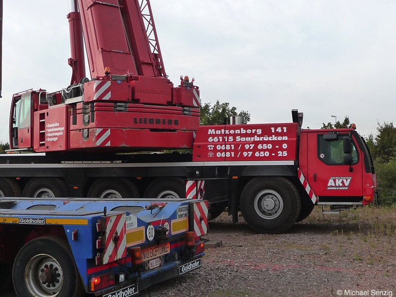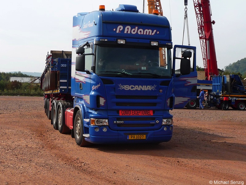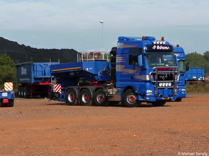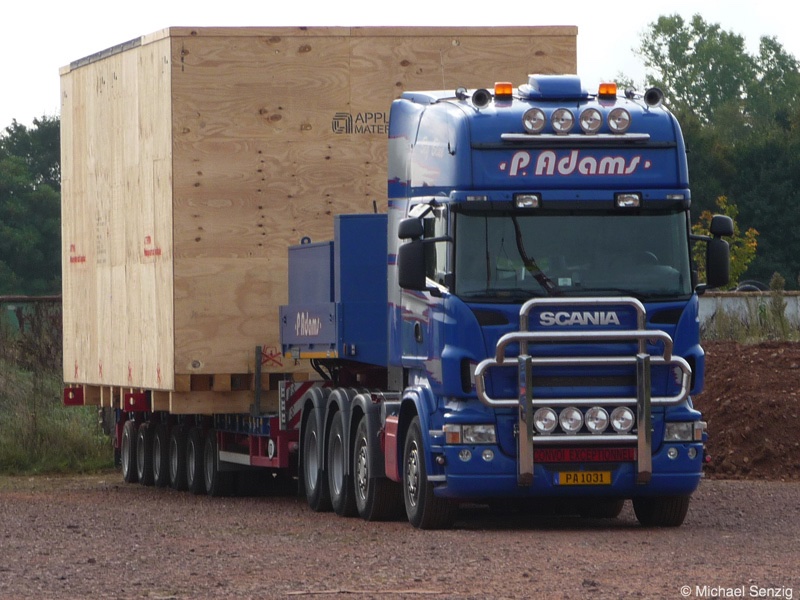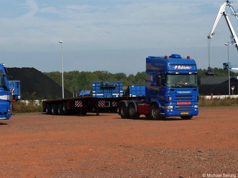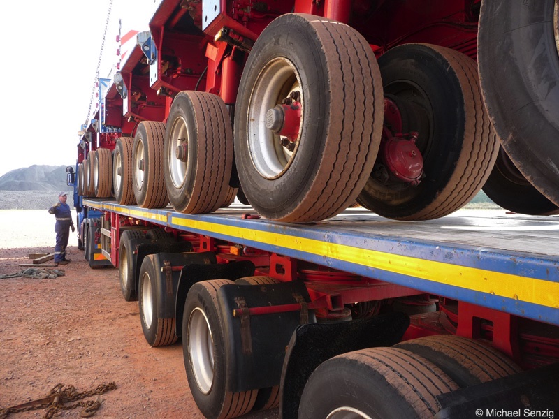 Am 24.09.2009 wurden im Dillinger Hafen zwei zwischengelagerte große Kisten auf zwei Schwertransport-Einheiten von P. Adams verladen. Michael Senzig war dabei und hat einen Teil davon fotografiert.