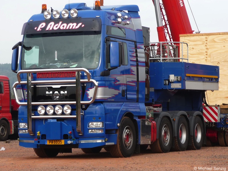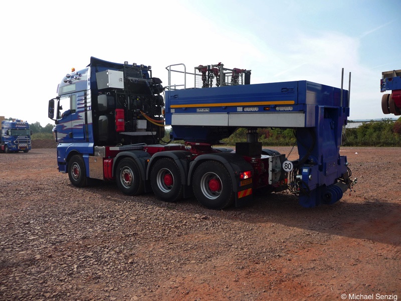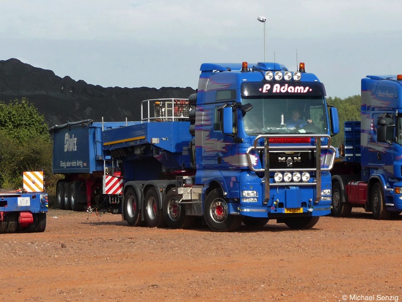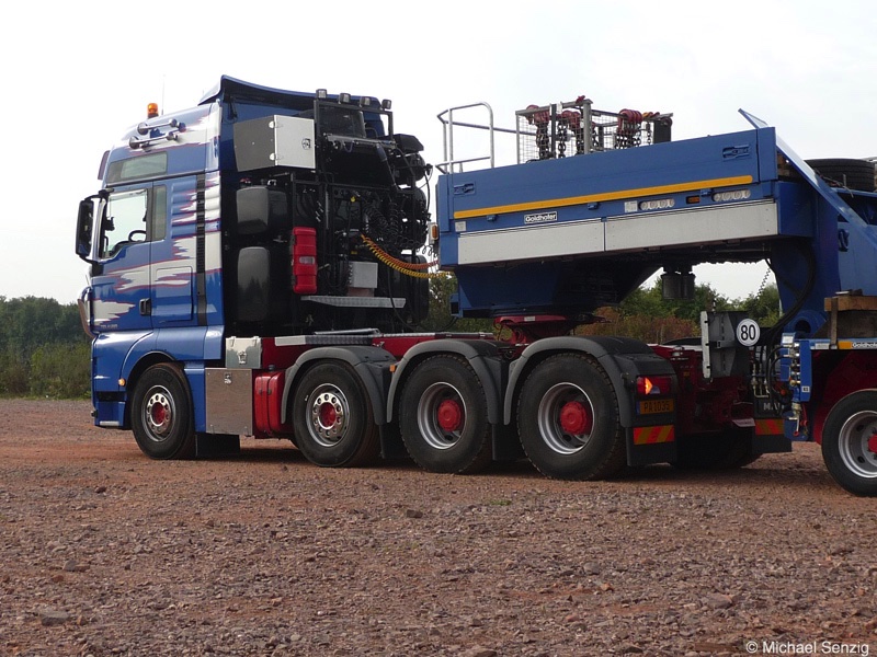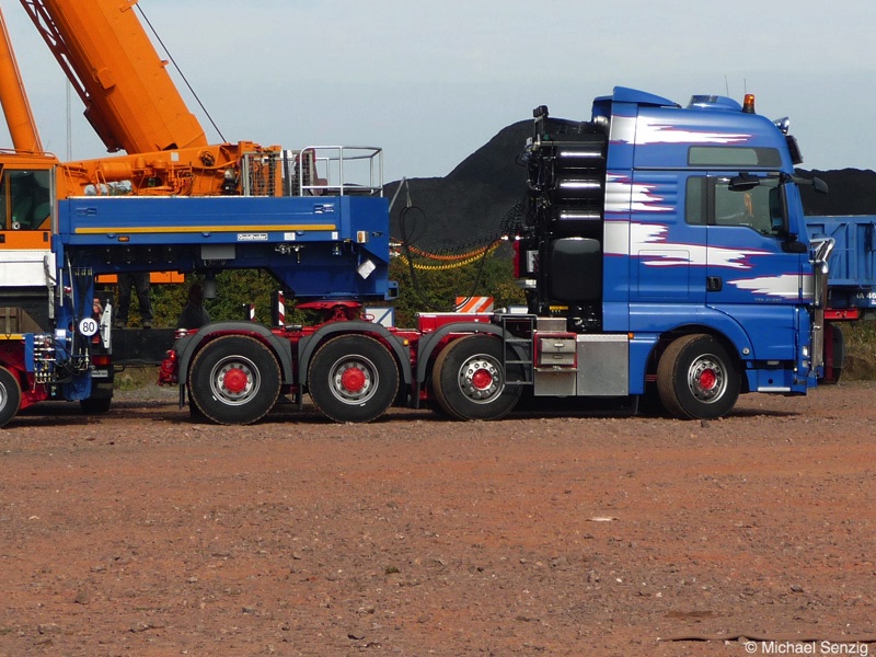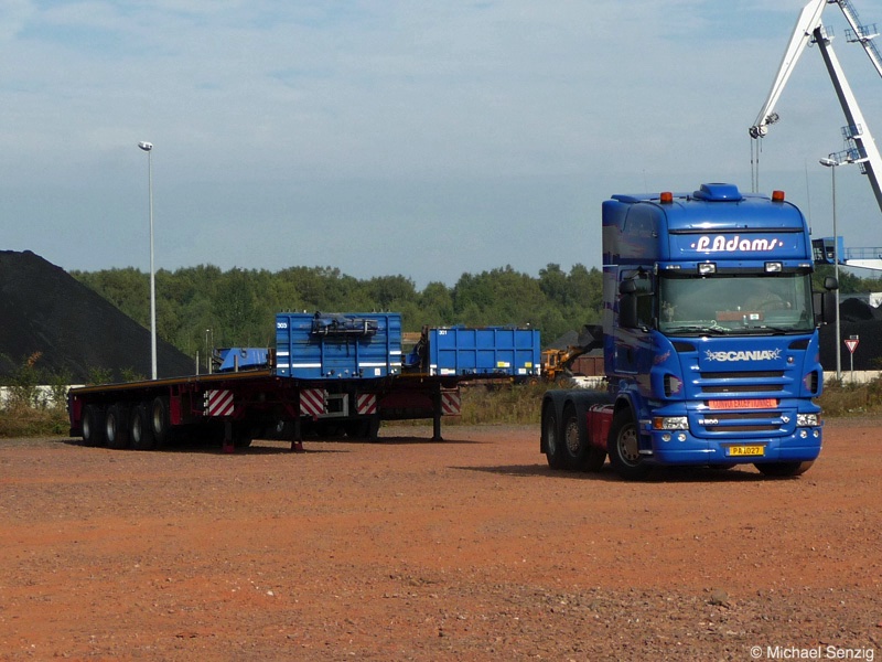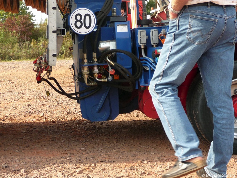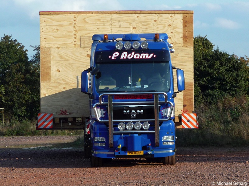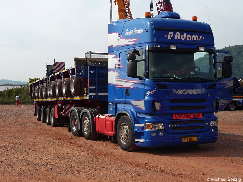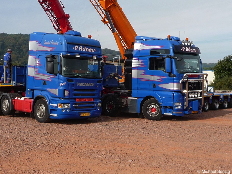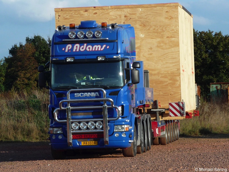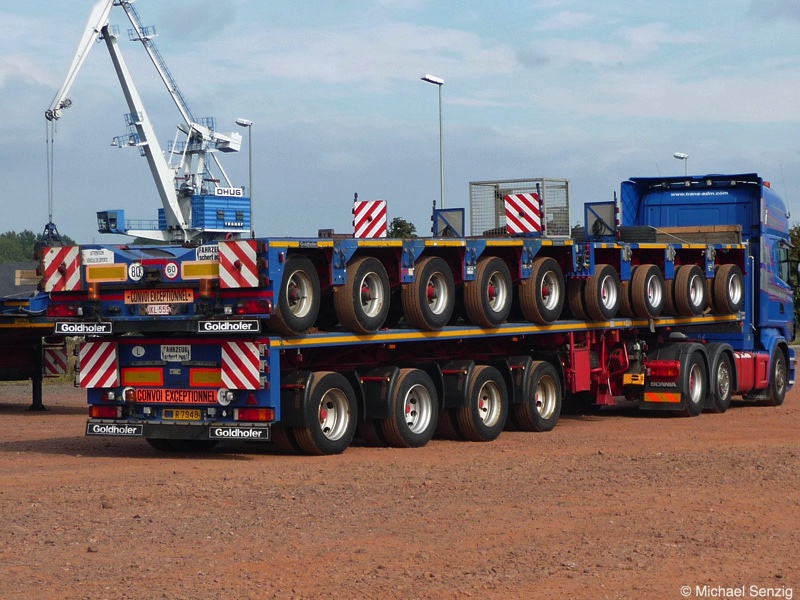 Am 24.09.2009 wurden im Dillinger Hafen zwei zwischengelagerte große Kisten auf zwei Schwertransport-Einheiten von P. Adams verladen. Michael Senzig war dabei und hat einen Teil davon fotografiert.