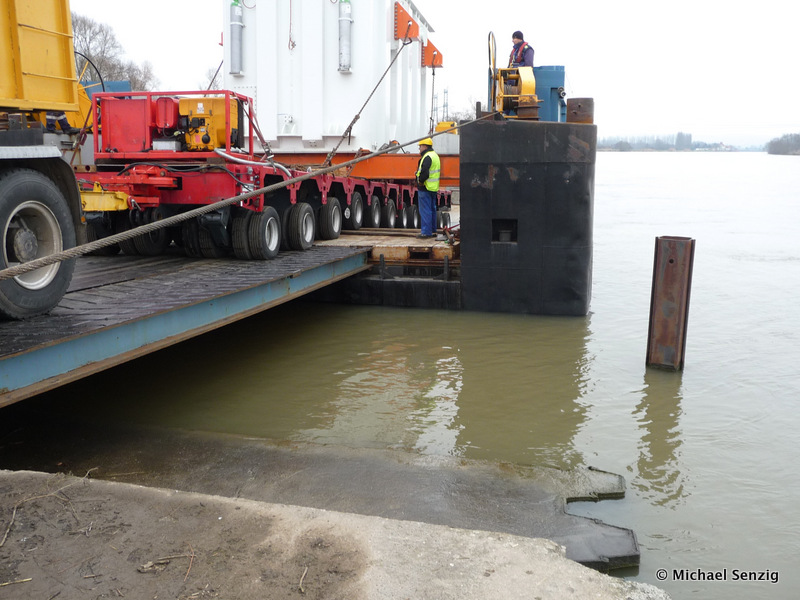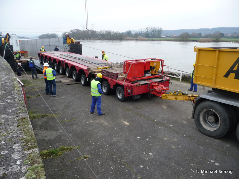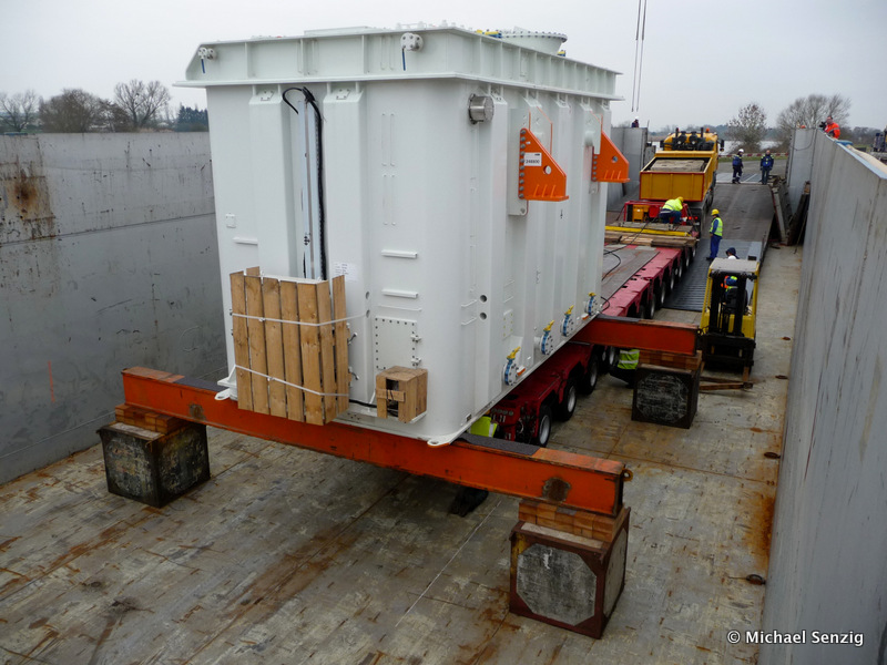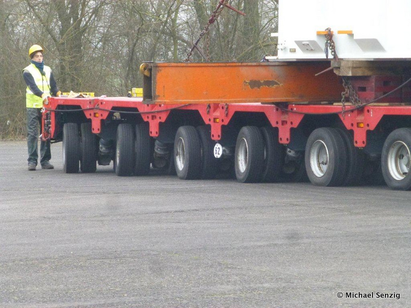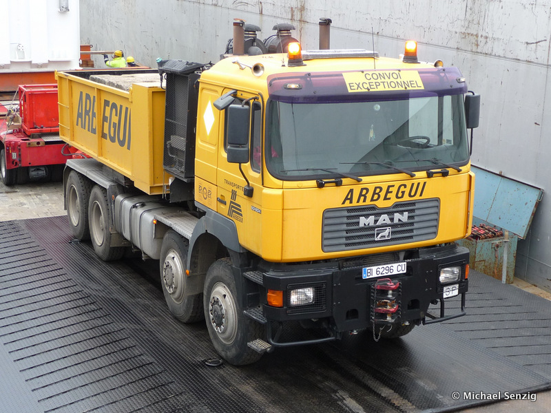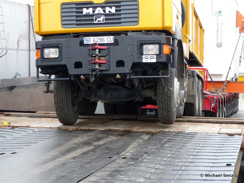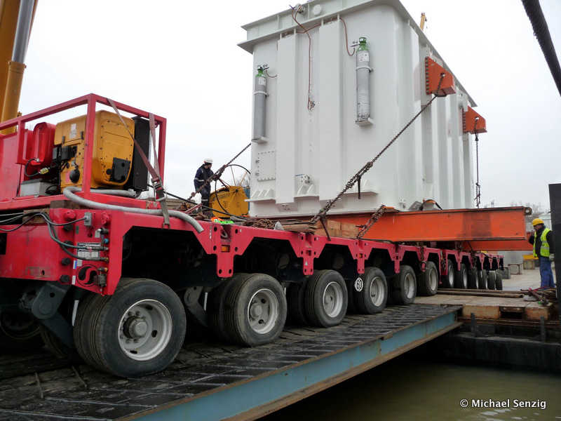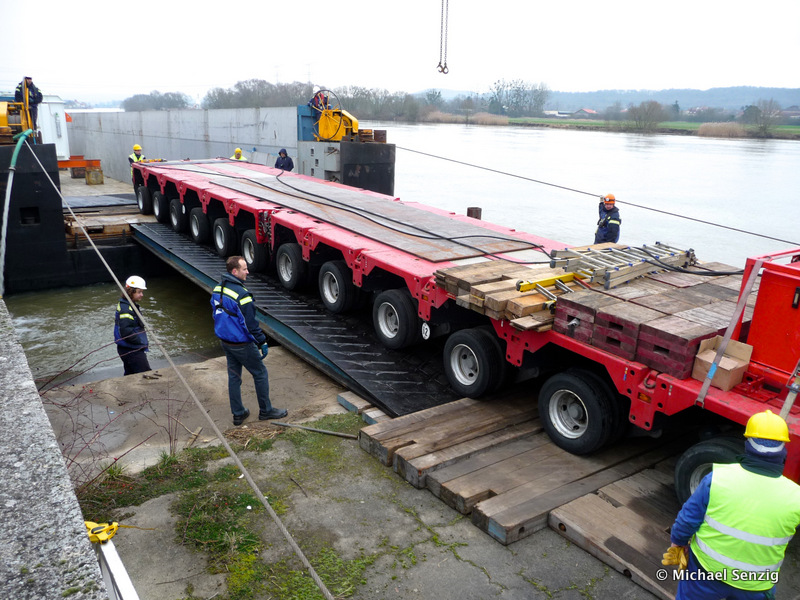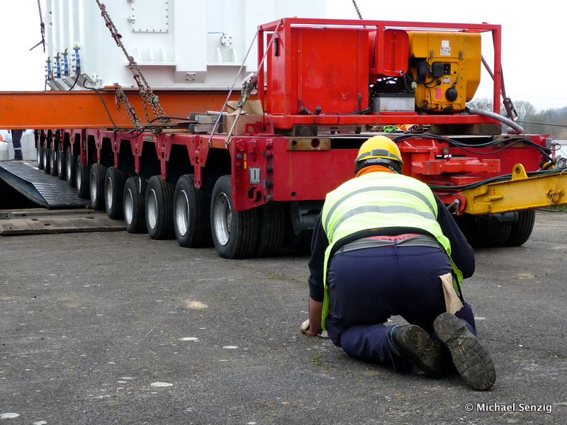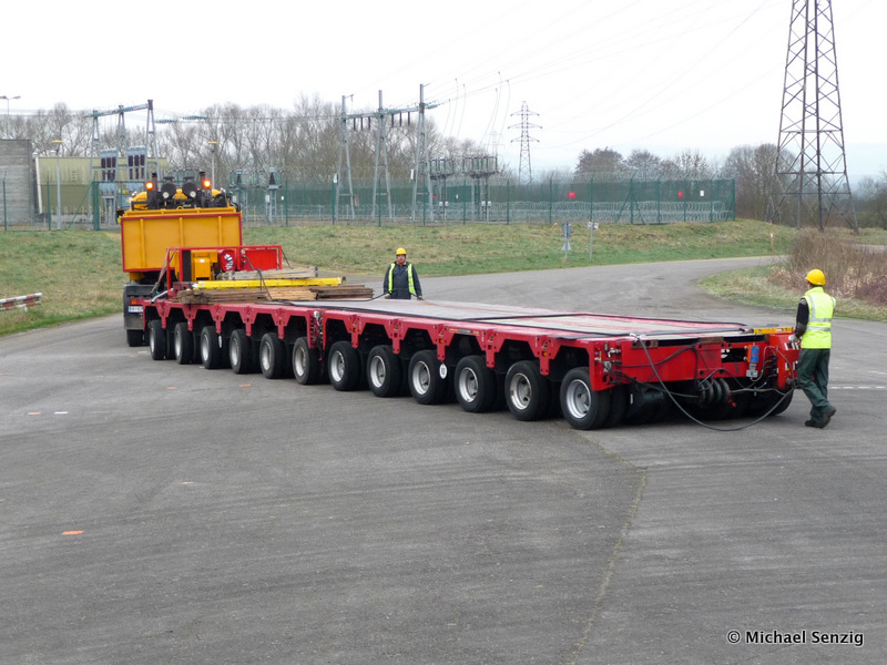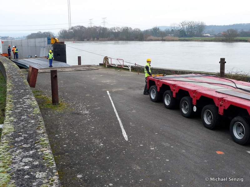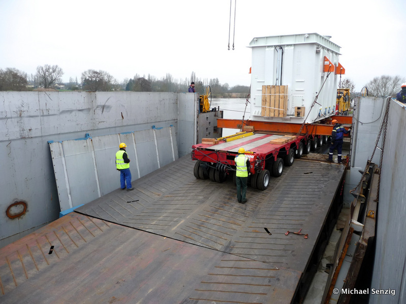 Im Februar 2016 hat der spanische Schwertransport-Spezialist ARBEGUI drei je 255 Tonnen schwere Trafos von einer RoRo-Rampe an der Mosel ins französischen Atomkraftwerk Cattnom transportiert. Die Trafos wurden bei ABB in Spanien gebaut und sind über den Seeweg in die Niederlande gelangt. Dort wurden die Trafos in ein Binnenschiff umgeladen und sind dann Mitte Februar in Dillingen angekommen. ARBEGUI hat für den Transport einen MAN F2000 Evo 50.604 8x8 und einen MAN TGA 41.660 eingesetzt. Beide Zugmaschinen sind schon älter, aber sehr interessant. Michael Senzig hat den Umschlag der Trafos an der Rampe beobachtet und fotografiert.