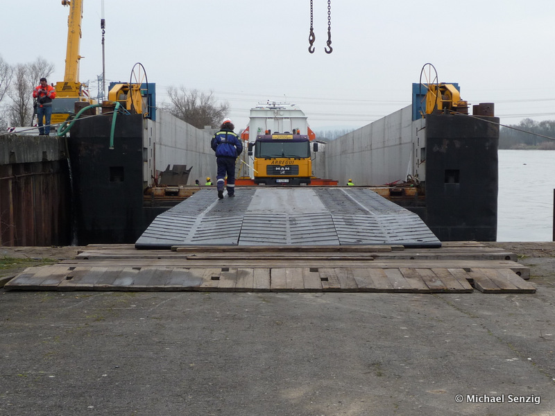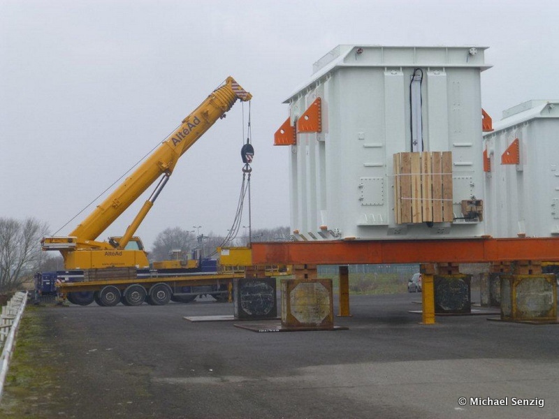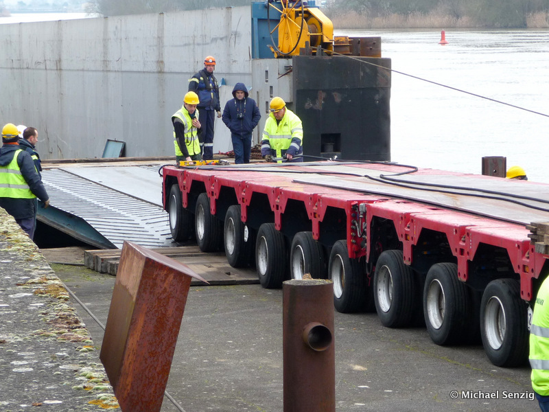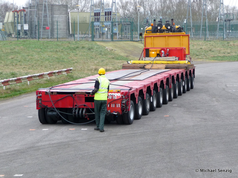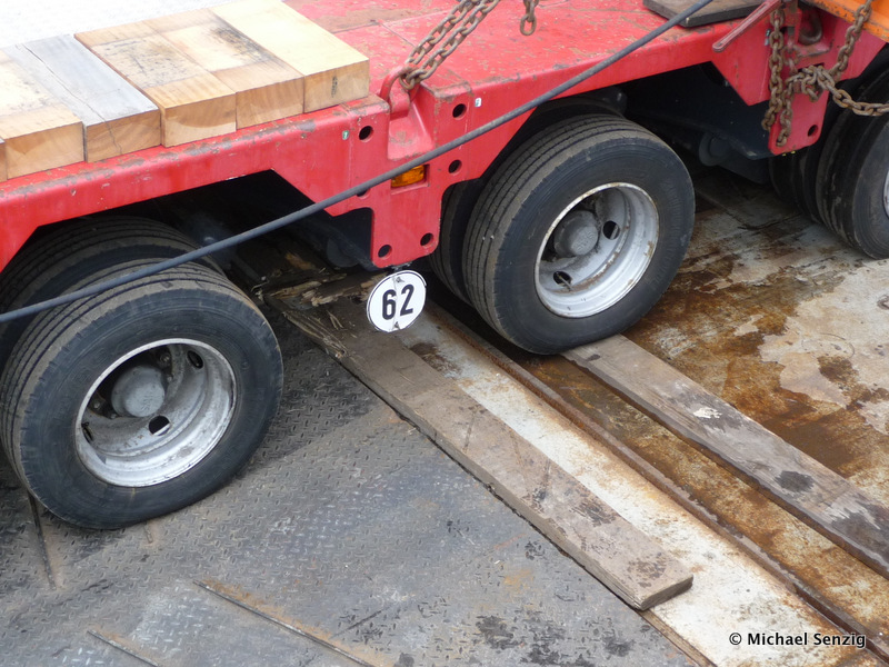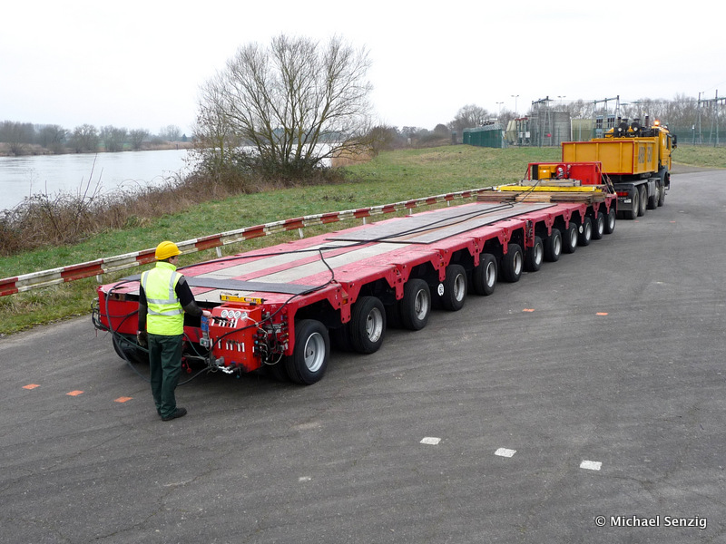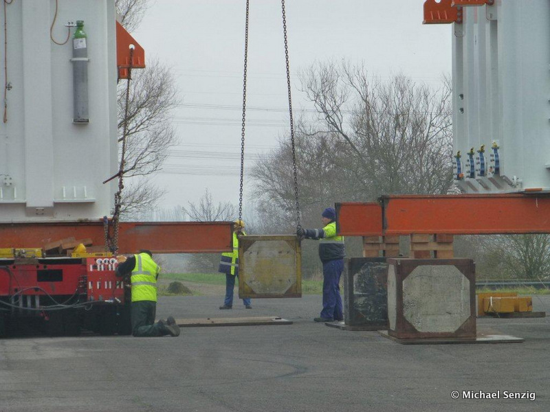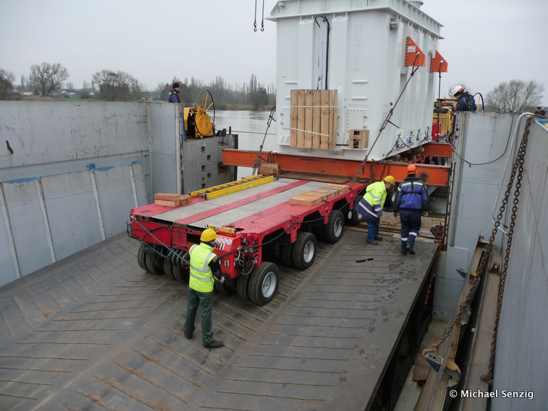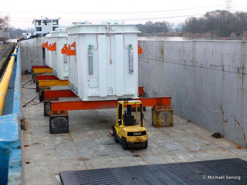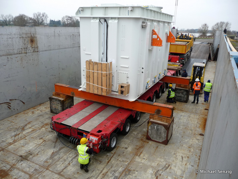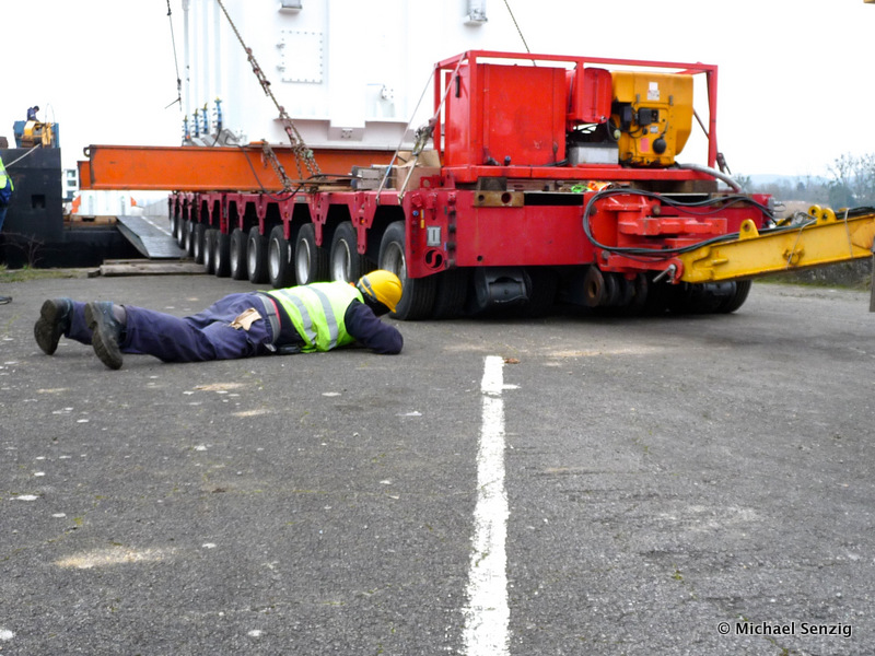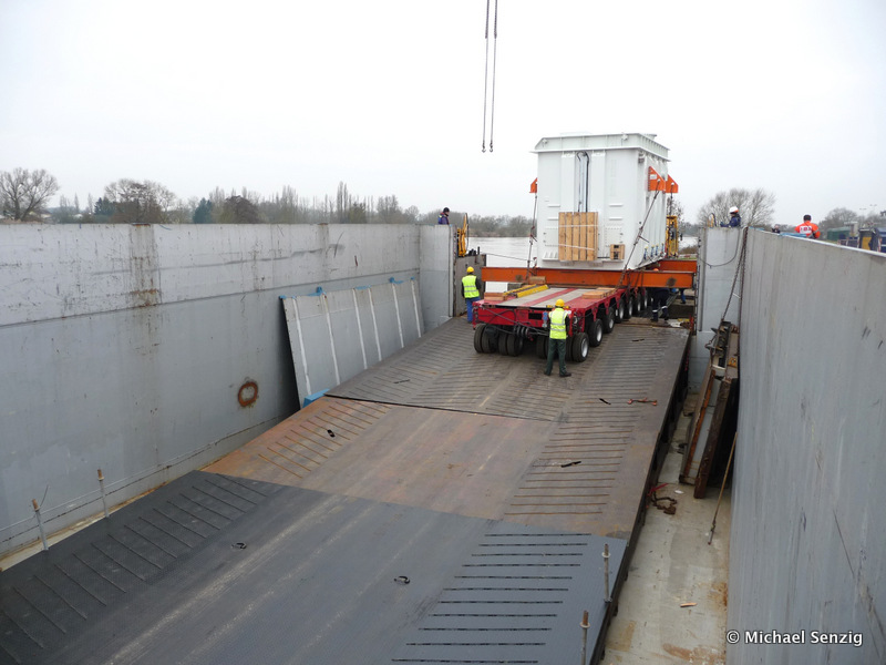 Im Februar 2016 hat der spanische Schwertransport-Spezialist ARBEGUI drei je 255 Tonnen schwere Trafos von einer RoRo-Rampe an der Mosel ins französischen Atomkraftwerk Cattnom transportiert. Die Trafos wurden bei ABB in Spanien gebaut und sind über den Seeweg in die Niederlande gelangt. Dort wurden die Trafos in ein Binnenschiff umgeladen und sind dann Mitte Februar in Dillingen angekommen. ARBEGUI hat für den Transport einen MAN F2000 Evo 50.604 8x8 und einen MAN TGA 41.660 eingesetzt. Beide Zugmaschinen sind schon älter, aber sehr interessant. Michael Senzig hat den Umschlag der Trafos an der Rampe beobachtet und fotografiert.