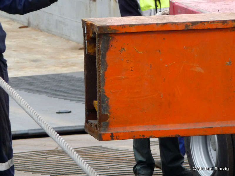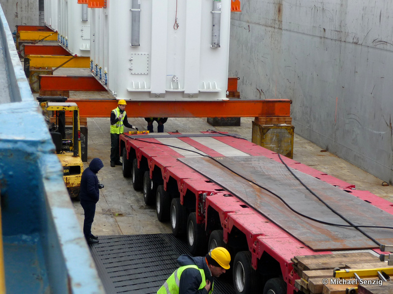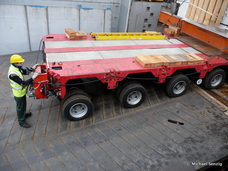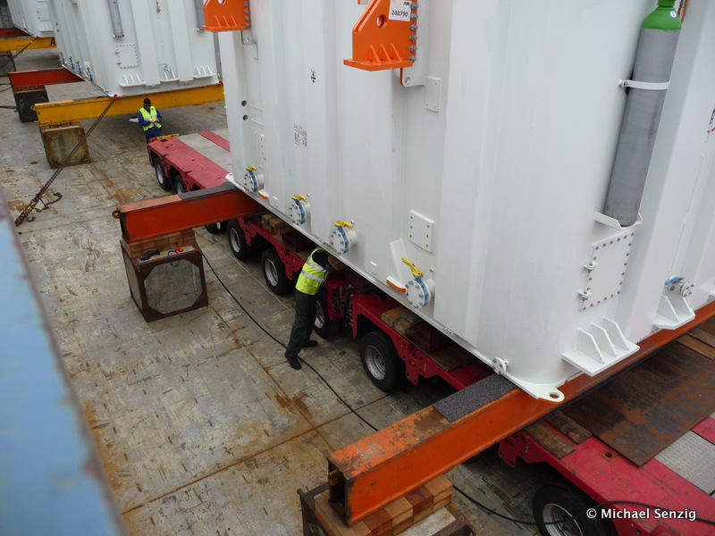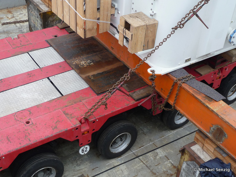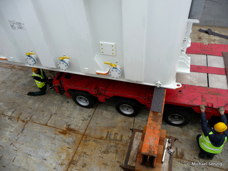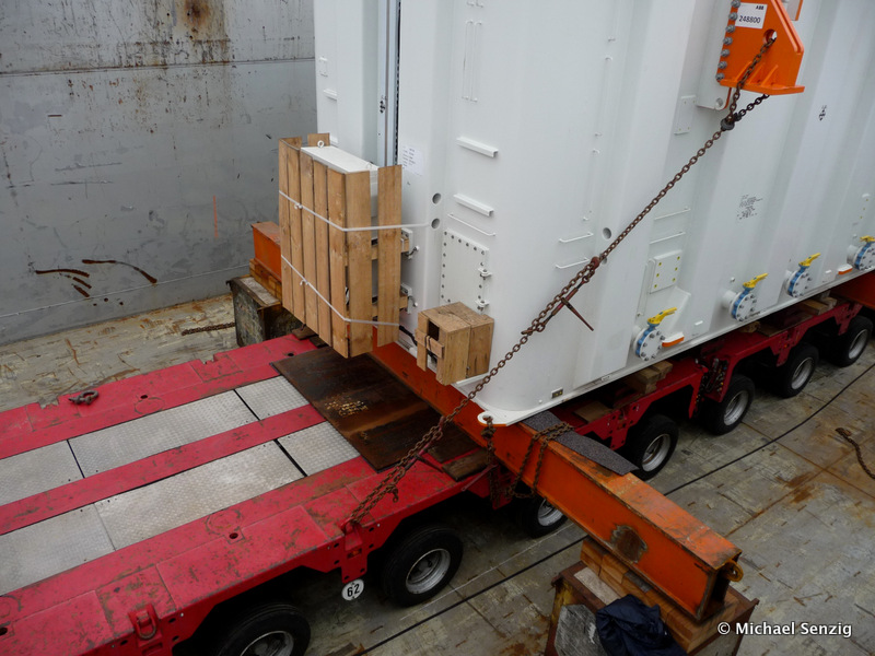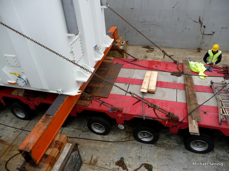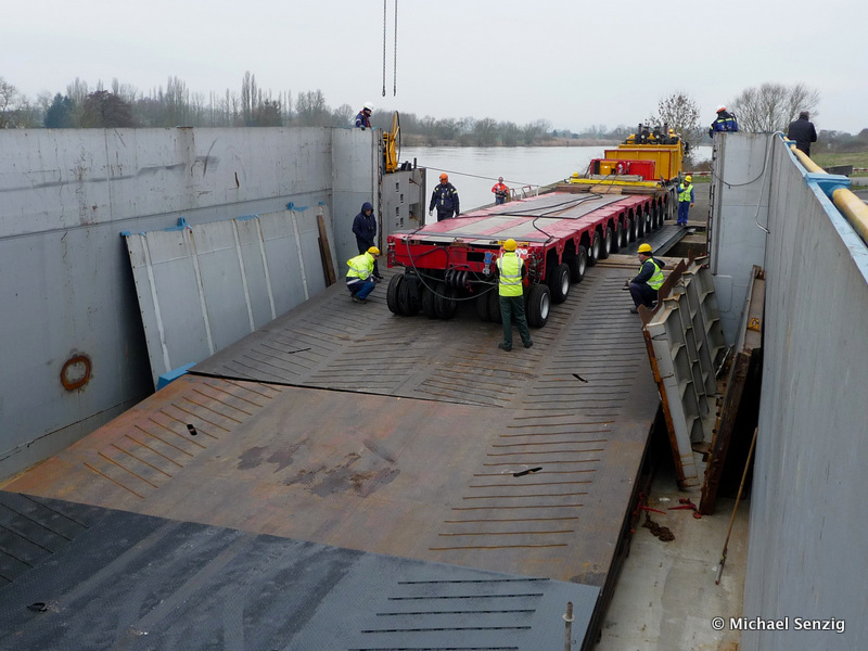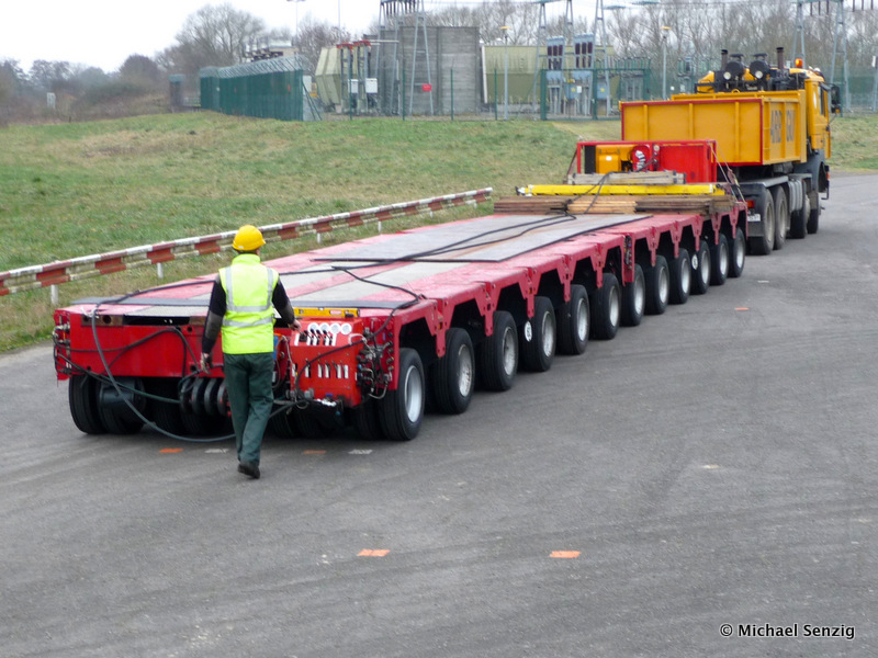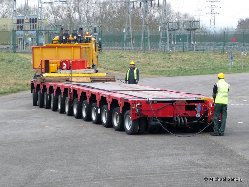 Im Februar 2016 hat der spanische Schwertransport-Spezialist ARBEGUI drei je 255 Tonnen schwere Trafos von einer RoRo-Rampe an der Mosel ins französischen Atomkraftwerk Cattnom transportiert. Die Trafos wurden bei ABB in Spanien gebaut und sind über den Seeweg in die Niederlande gelangt. Dort wurden die Trafos in ein Binnenschiff umgeladen und sind dann Mitte Februar in Dillingen angekommen. ARBEGUI hat für den Transport einen MAN F2000 Evo 50.604 8x8 und einen MAN TGA 41.660 eingesetzt. Beide Zugmaschinen sind schon älter, aber sehr interessant. Michael Senzig hat den Umschlag der Trafos an der Rampe beobachtet und fotografiert.