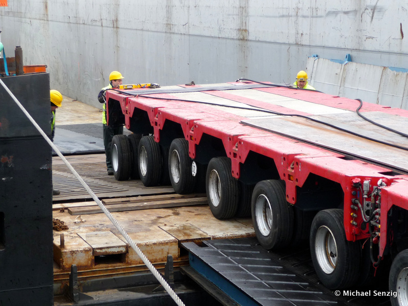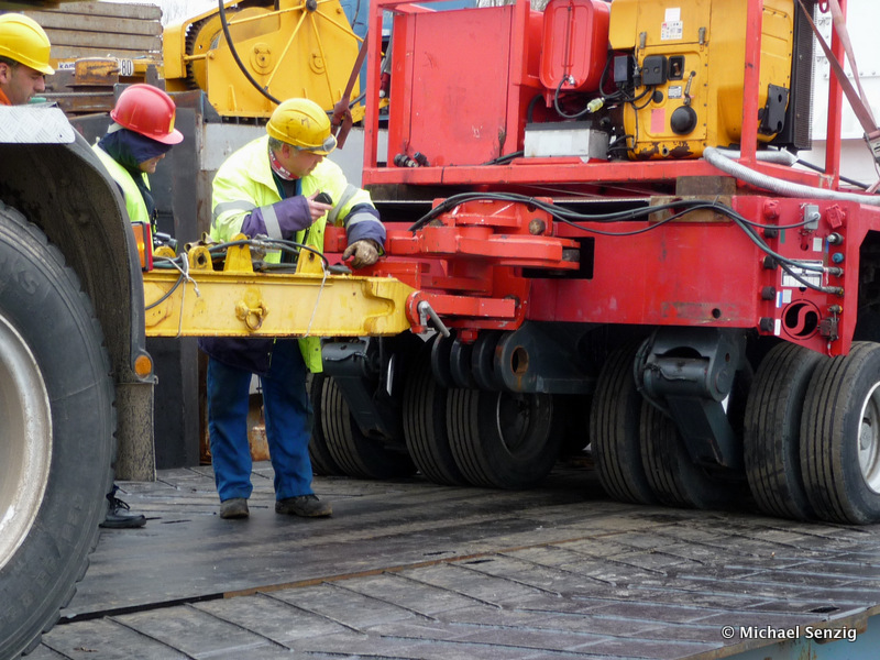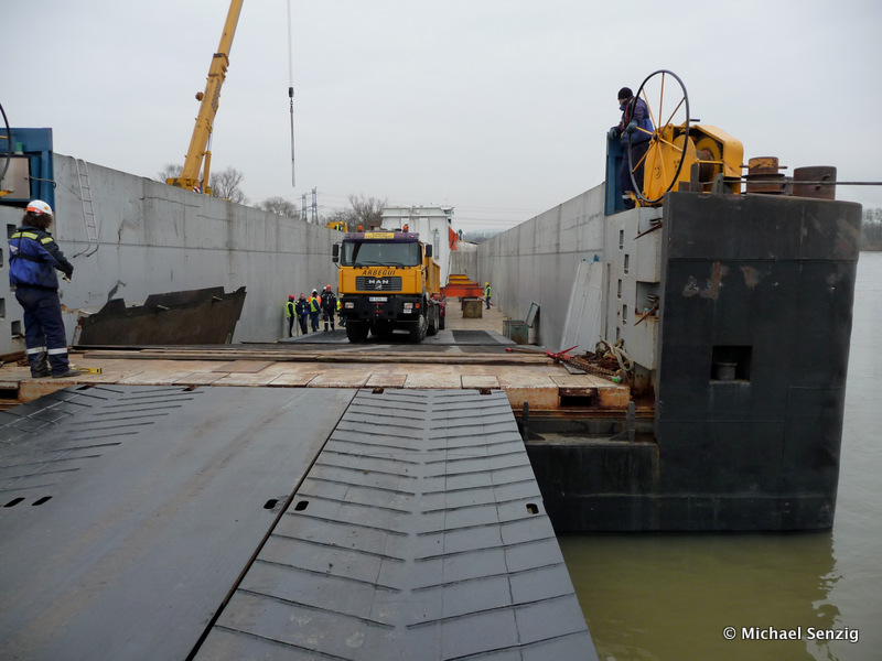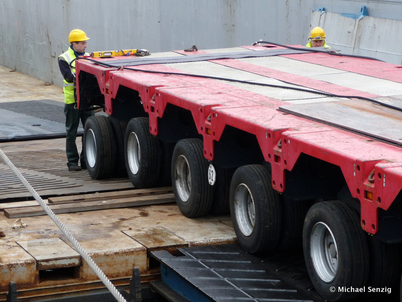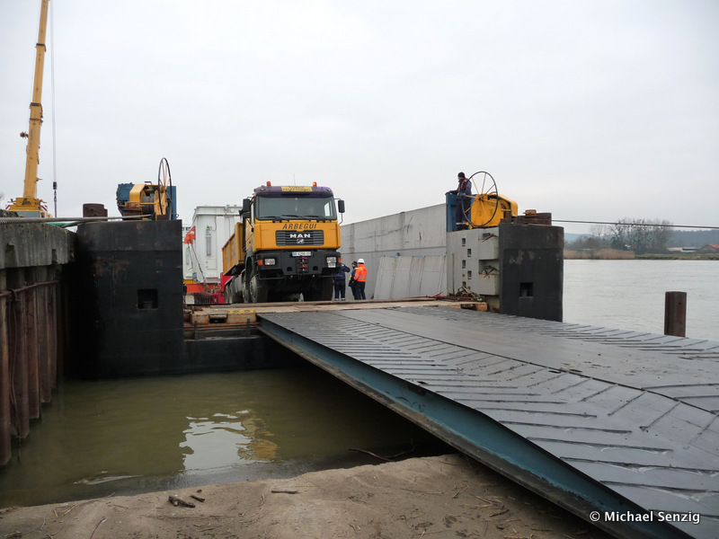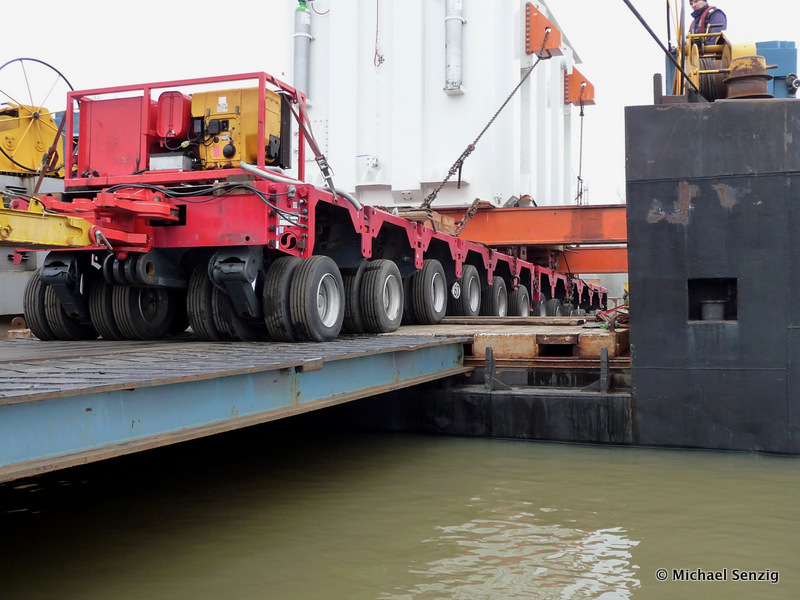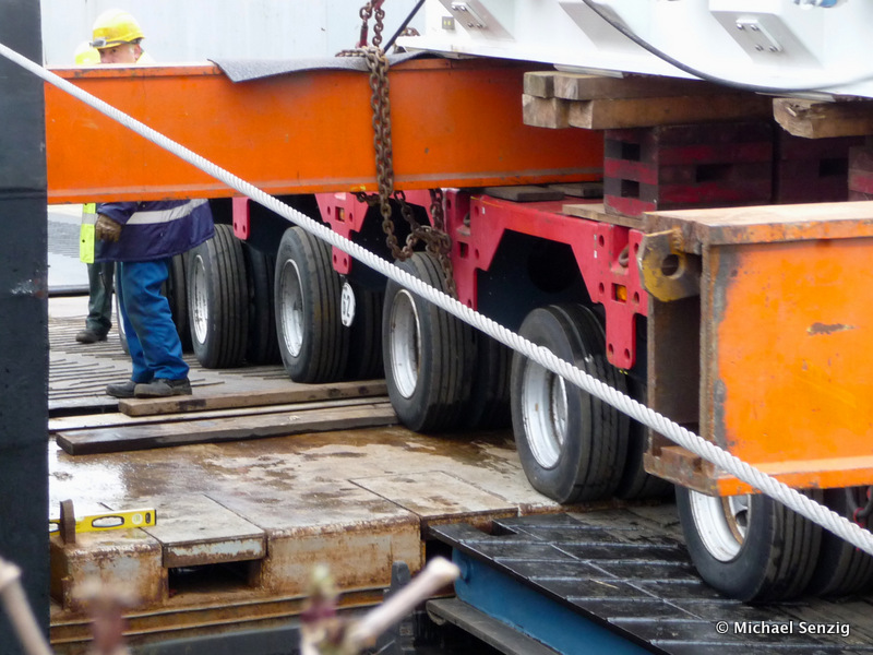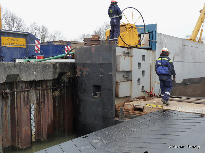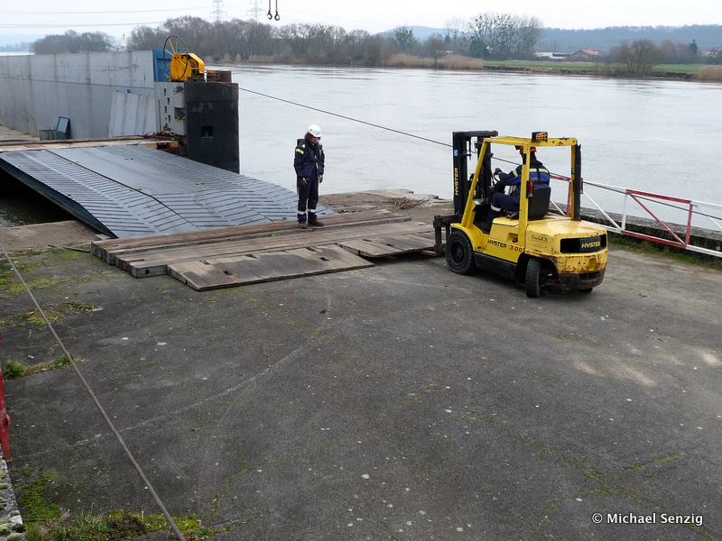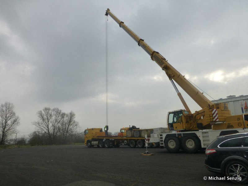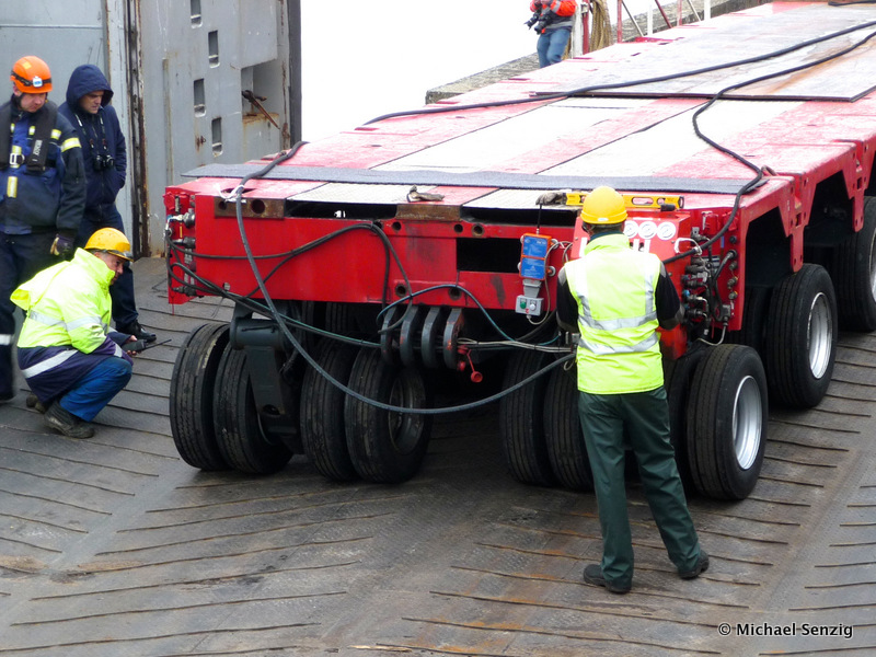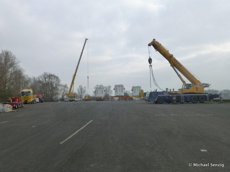 Im Februar 2016 hat der spanische Schwertransport-Spezialist ARBEGUI drei je 255 Tonnen schwere Trafos von einer RoRo-Rampe an der Mosel ins französischen Atomkraftwerk Cattnom transportiert. Die Trafos wurden bei ABB in Spanien gebaut und sind über den Seeweg in die Niederlande gelangt. Dort wurden die Trafos in ein Binnenschiff umgeladen und sind dann Mitte Februar in Dillingen angekommen. ARBEGUI hat für den Transport einen MAN F2000 Evo 50.604 8x8 und einen MAN TGA 41.660 eingesetzt. Beide Zugmaschinen sind schon älter, aber sehr interessant. Michael Senzig hat den Umschlag der Trafos an der Rampe beobachtet und fotografiert.