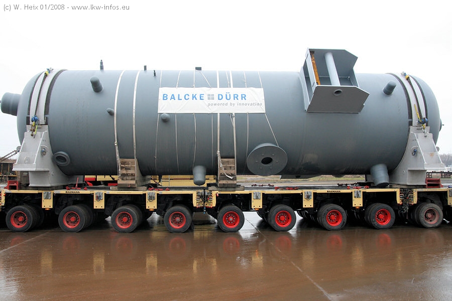 Im Dezember 2007 hatte die Neubeckumer Firma Backe-Dürr den dritten und letzten Wärmetauuscher für das Neurather Braunkohlekraftwerk auf die Reise geschickt. Der Transport und der anschließende Hub in ein Binnenschiff in Münster-Hiltrup am 18.01.2008 verliefen problemlos.