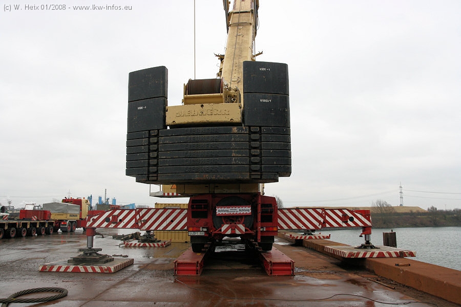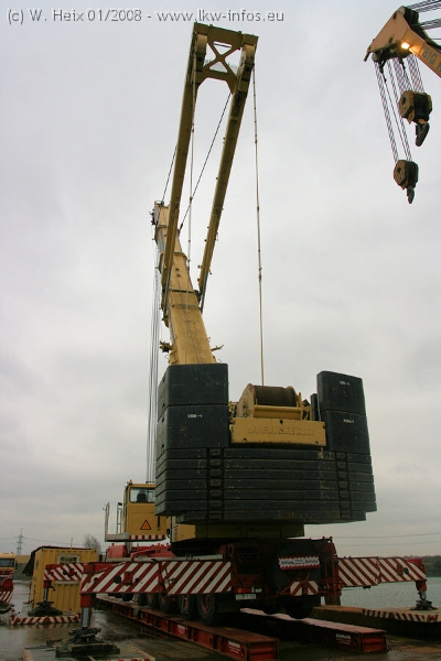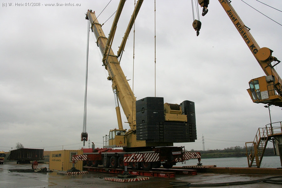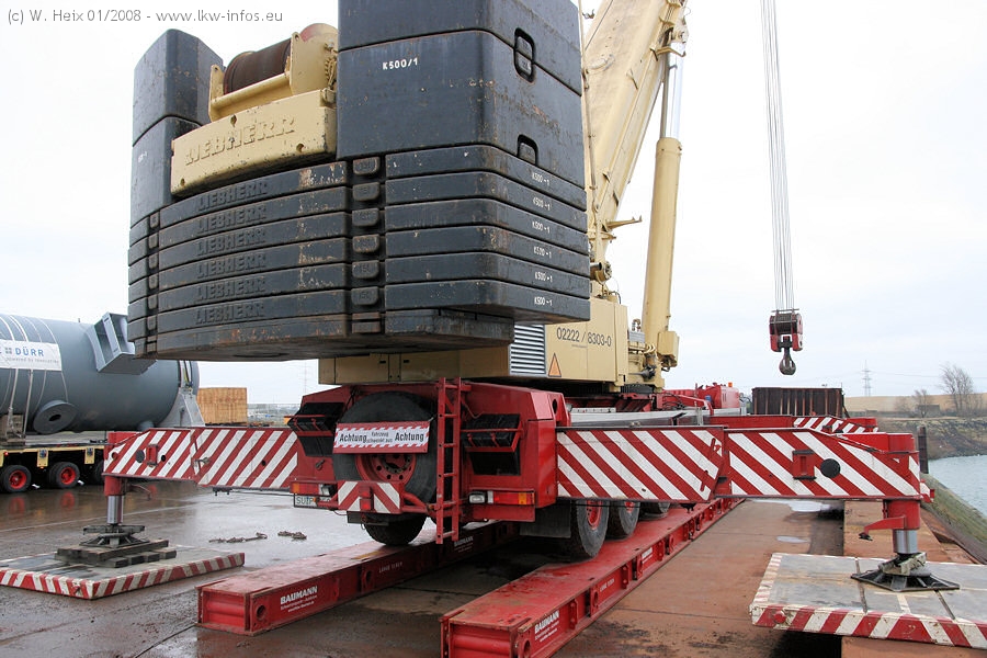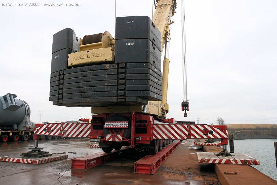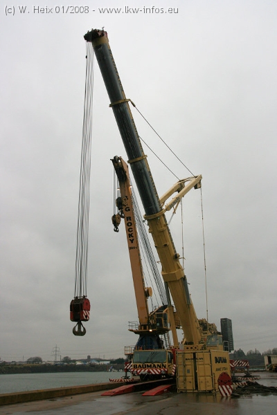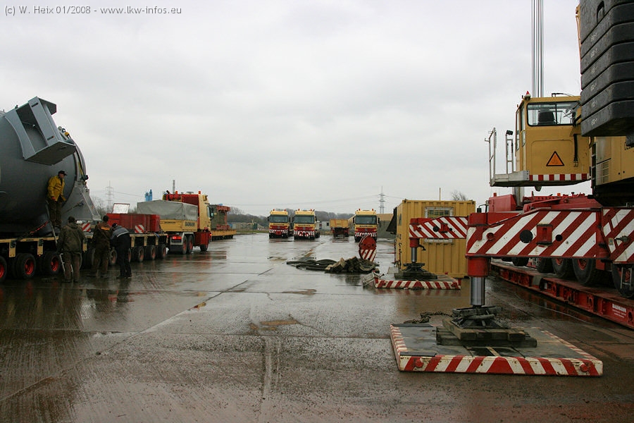 Baumann: Tandemhub eines 230 t schweren Wärmetauschers mit dem "Big Rocky" im Krefelder Hafen am 21.01.2008