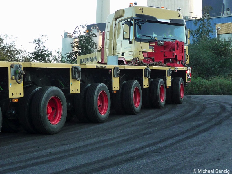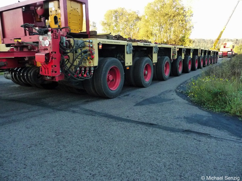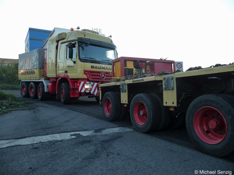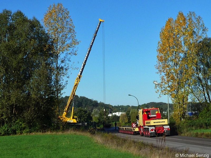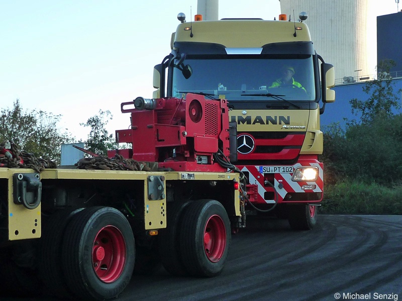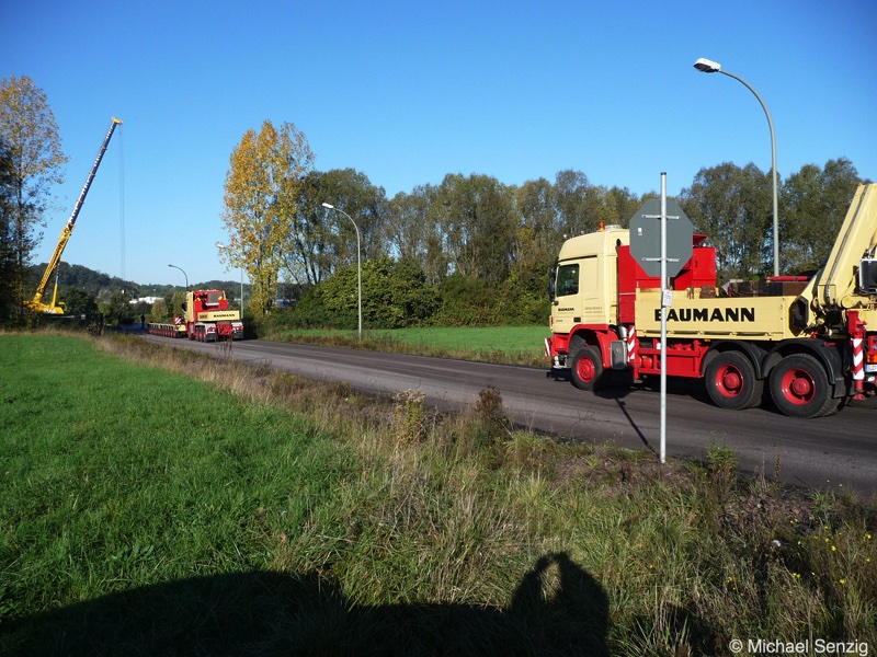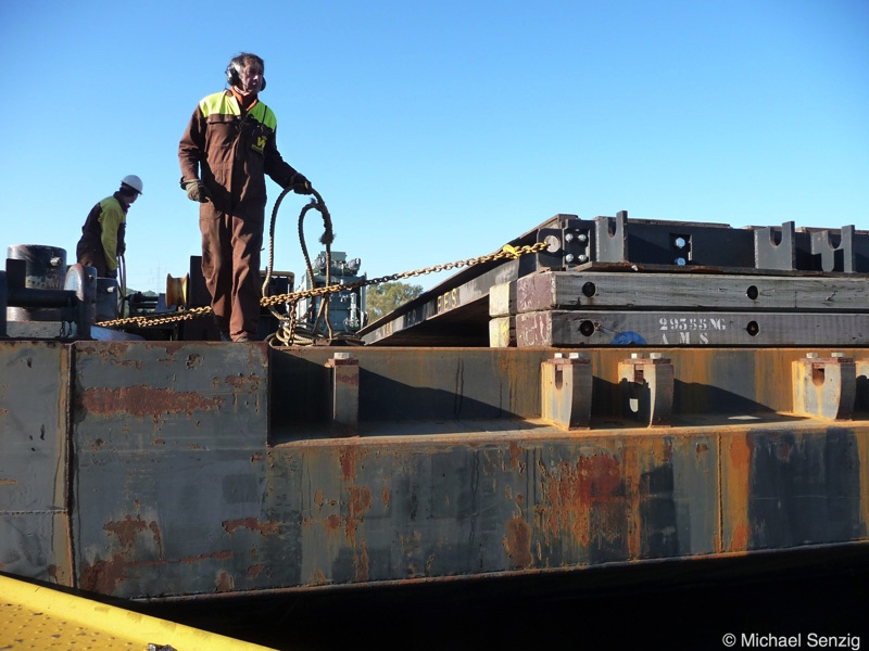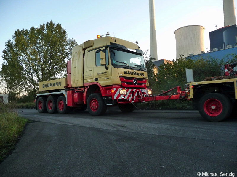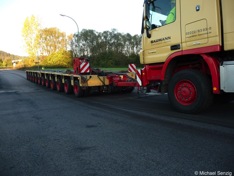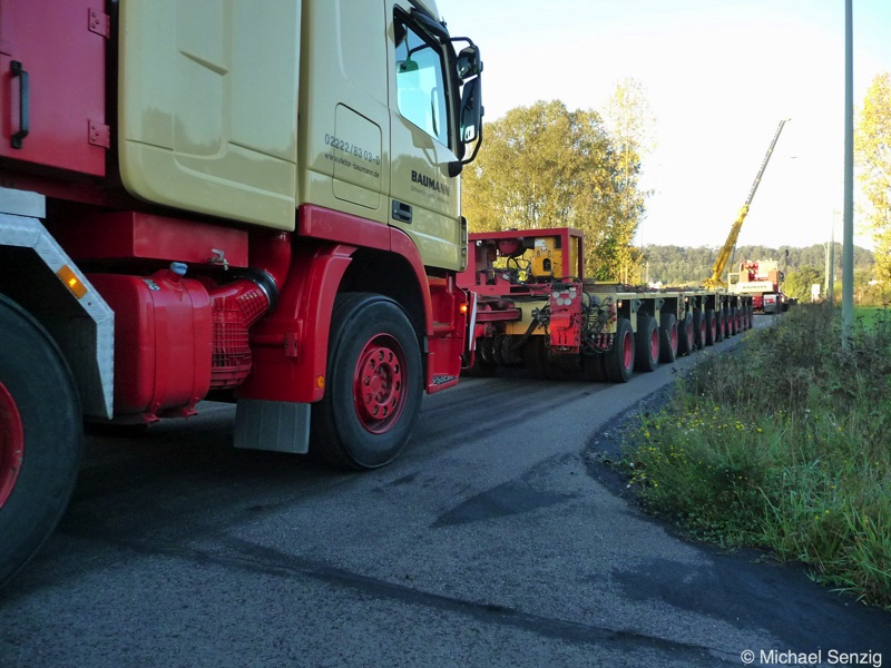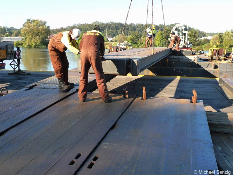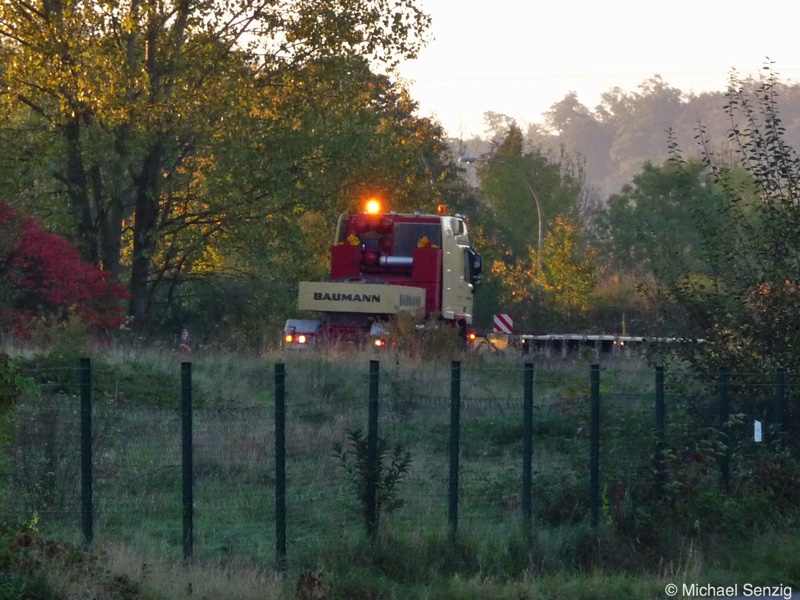Am 15.10.2010 wurden im Saarland auf dem Gelände der Firma VSE zwei Trafos per Ponton-Schifff "angeliefert". Auf dem Ponton der Firma van der Wees aus dem niederländischen Dordrecht standen beide Trafos auf "Elefantenfüßen". Deswegen war für die Verladung kein Kran nötig. Es konnte einfach unter die Ladung gefahren werden. Michael Senzig hat einen Teil der Aktion beobachtet und fotografiert.