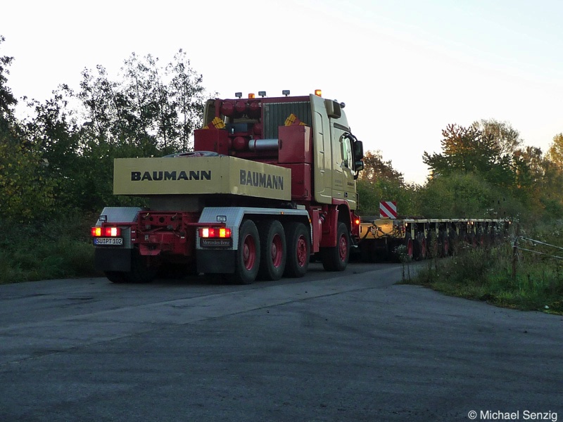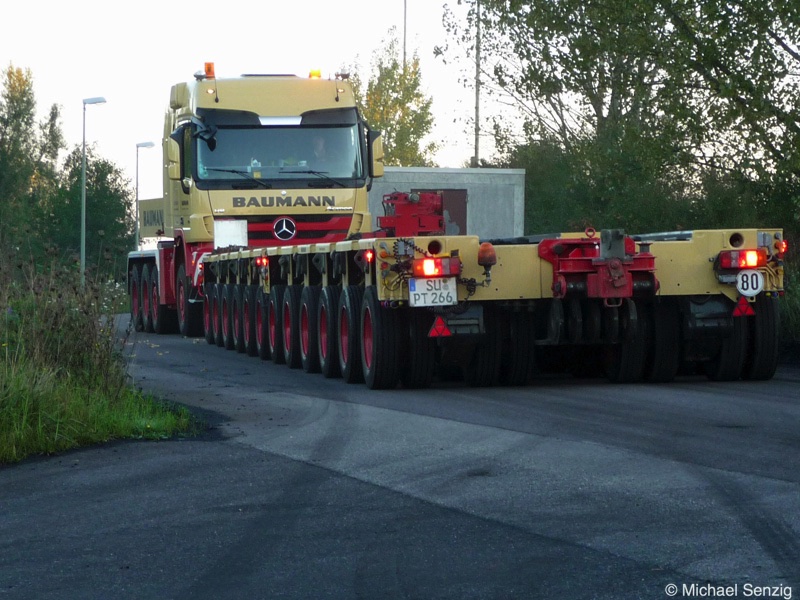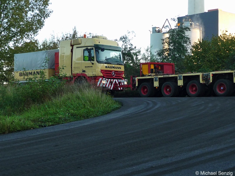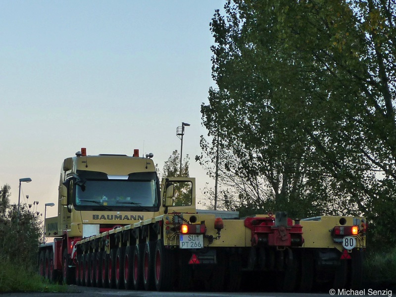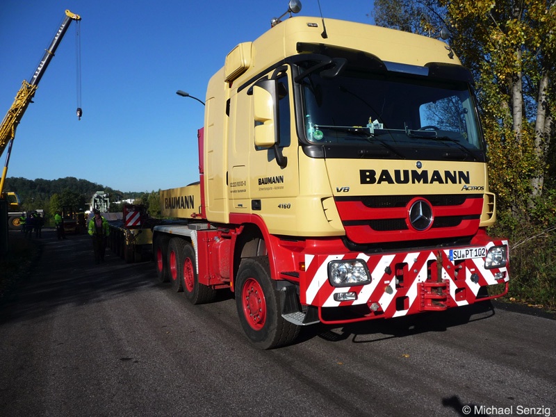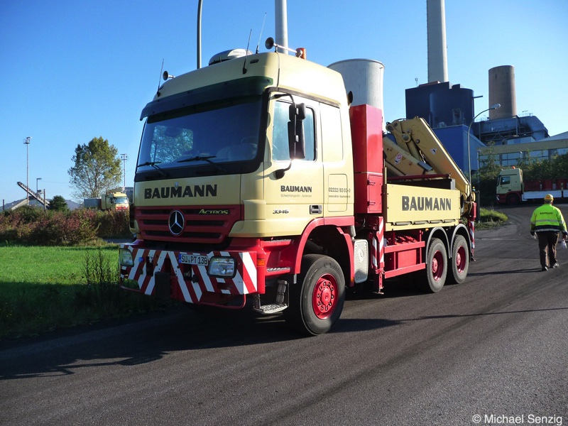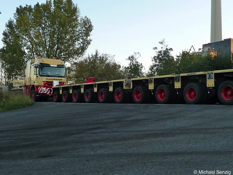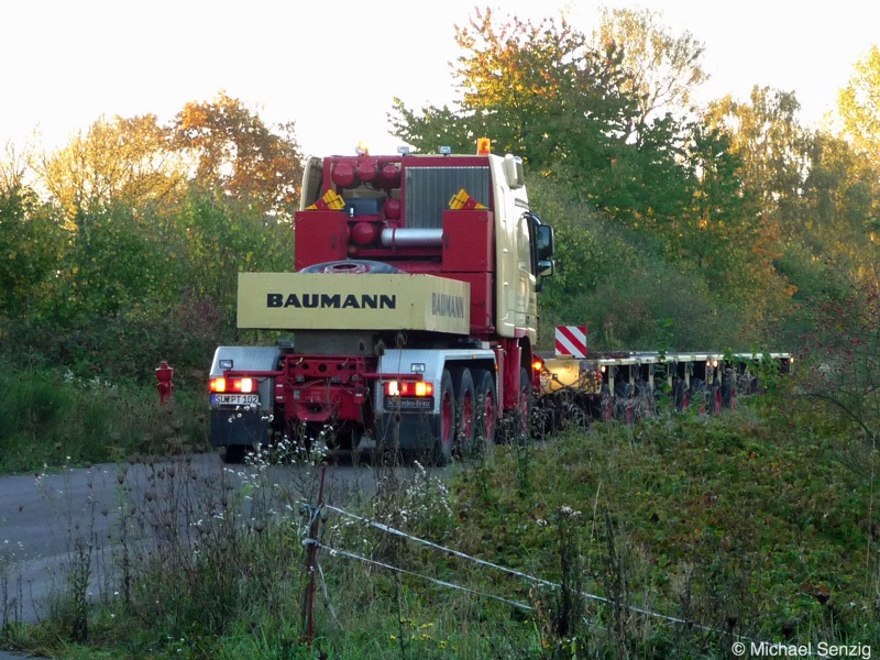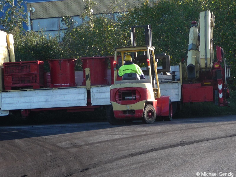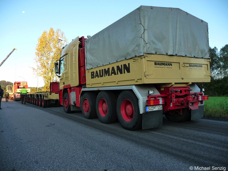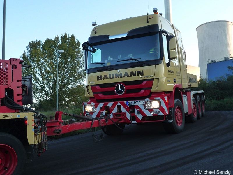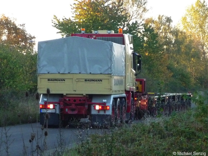 Am 15.10.2010 wurden im Saarland auf dem Gelände der Firma VSE zwei Trafos per Ponton-Schifff "angeliefert". Auf dem Ponton der Firma van der Wees aus dem niederländischen Dordrecht standen beide Trafos auf "Elefantenfüßen". Deswegen war für die Verladung kein Kran nötig. Es konnte einfach unter die Ladung gefahren werden. Michael Senzig hat einen Teil der Aktion beobachtet und fotografiert.