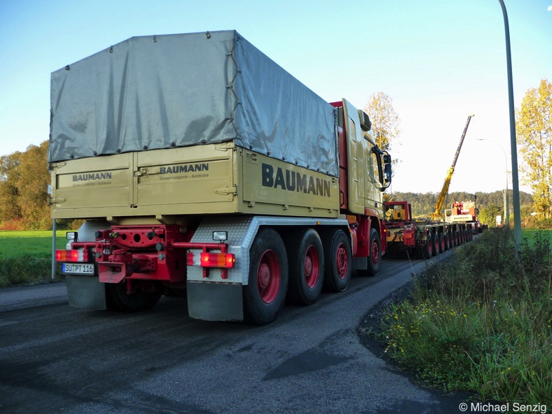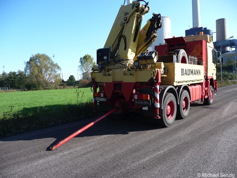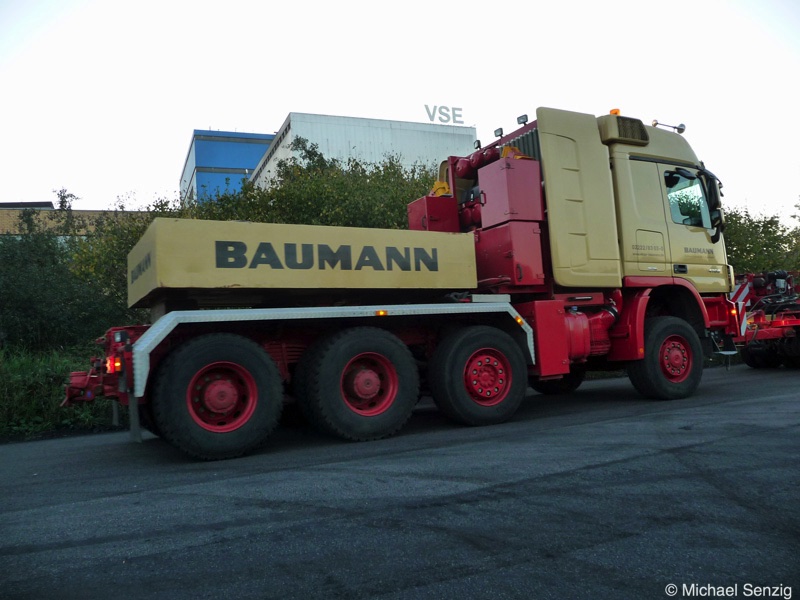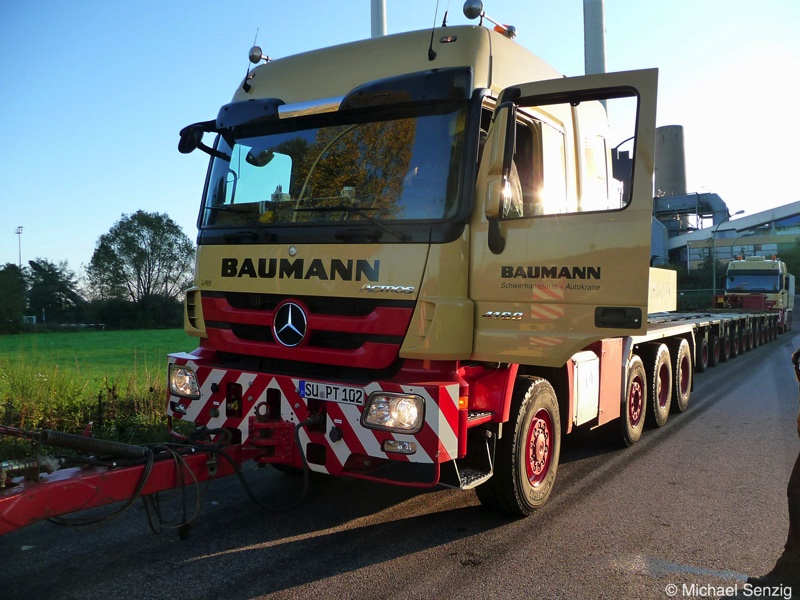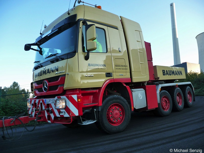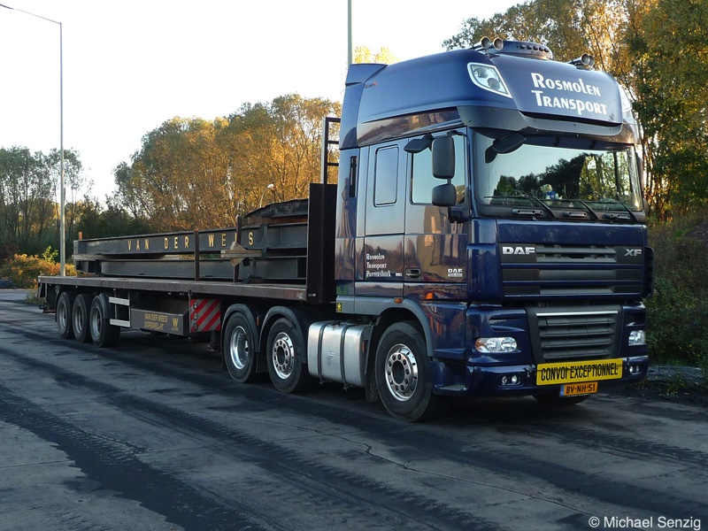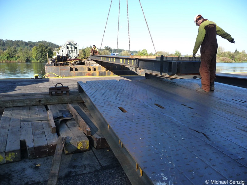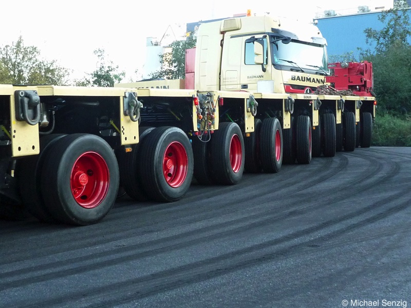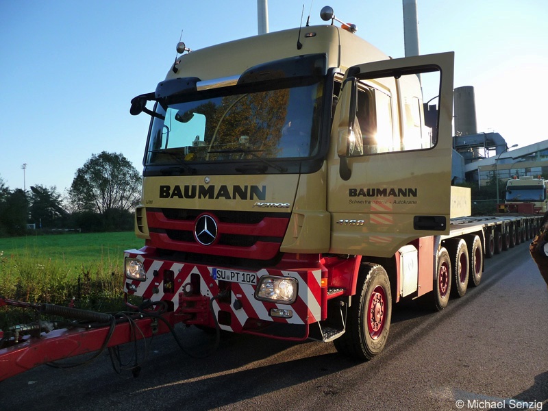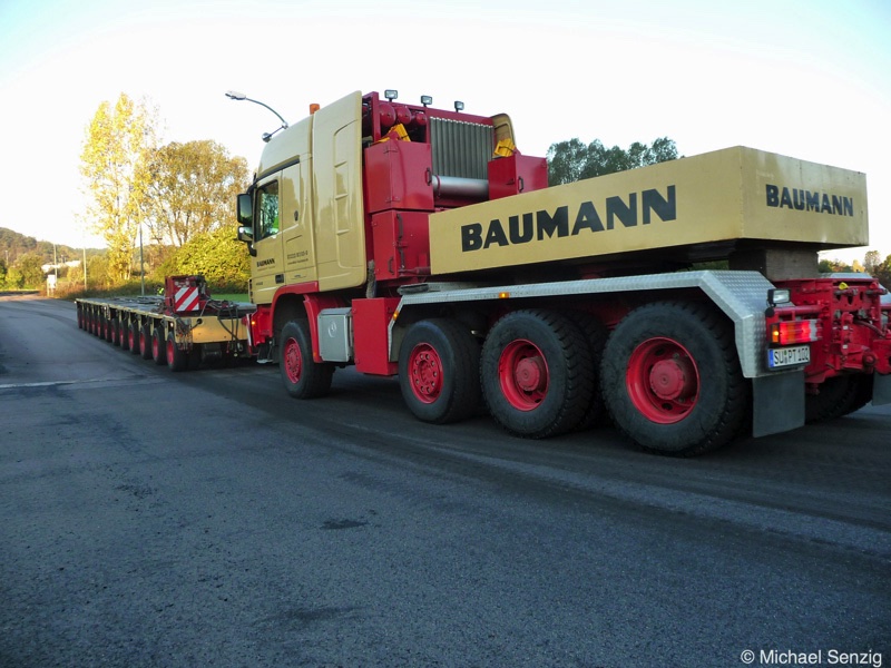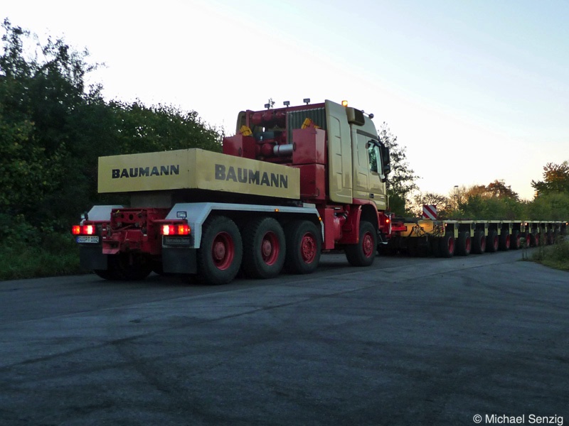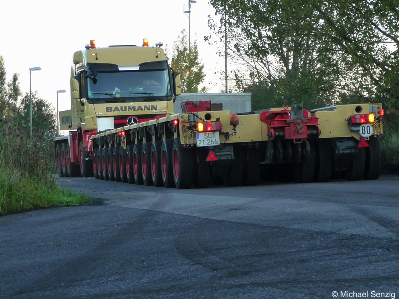Am 15.10.2010 wurden im Saarland auf dem Gelände der Firma VSE zwei Trafos per Ponton-Schifff "angeliefert". Auf dem Ponton der Firma van der Wees aus dem niederländischen Dordrecht standen beide Trafos auf "Elefantenfüßen". Deswegen war für die Verladung kein Kran nötig. Es konnte einfach unter die Ladung gefahren werden. Michael Senzig hat einen Teil der Aktion beobachtet und fotografiert.