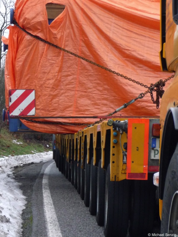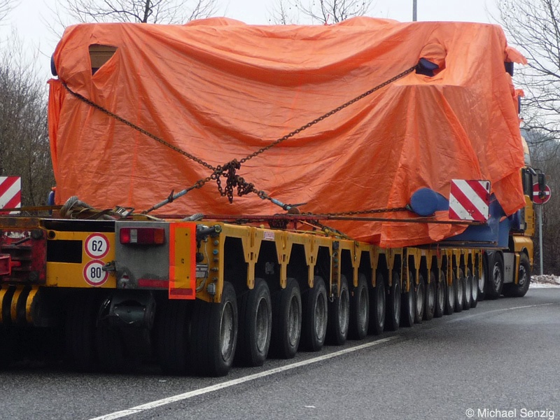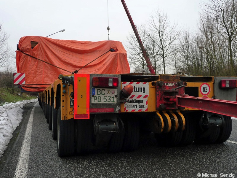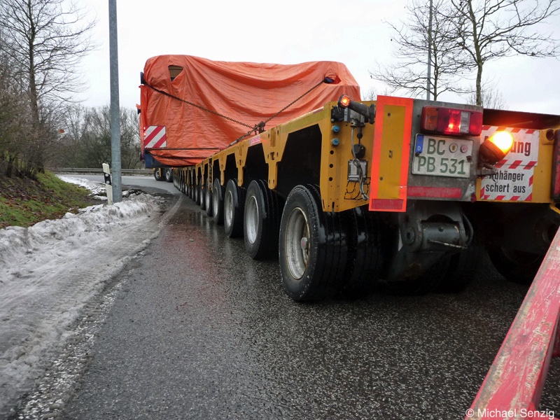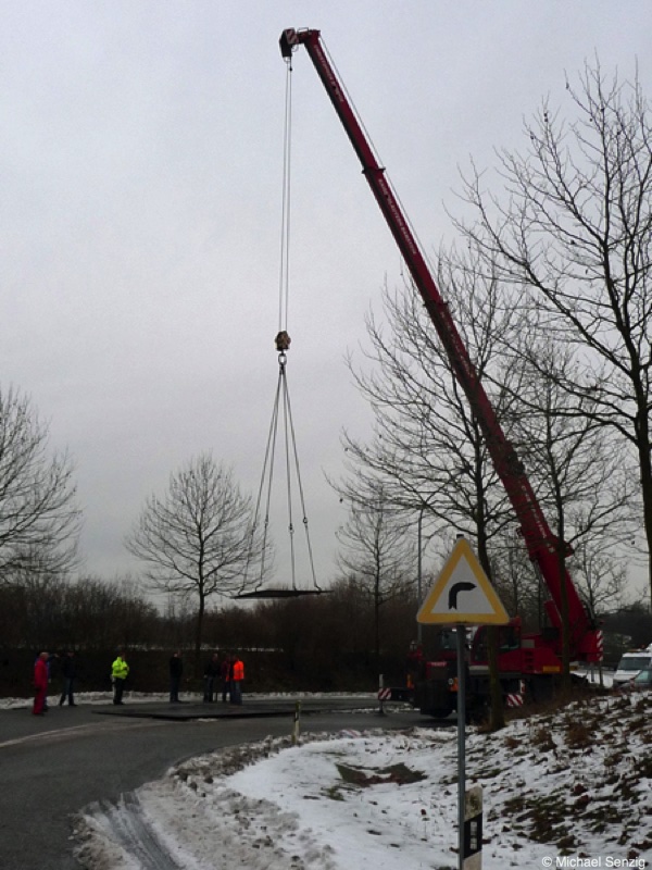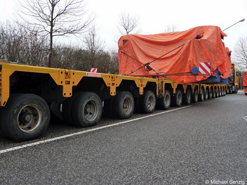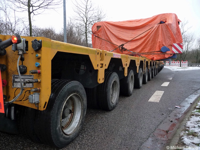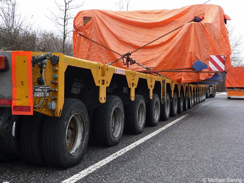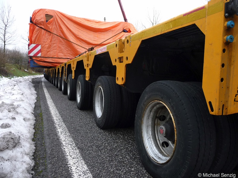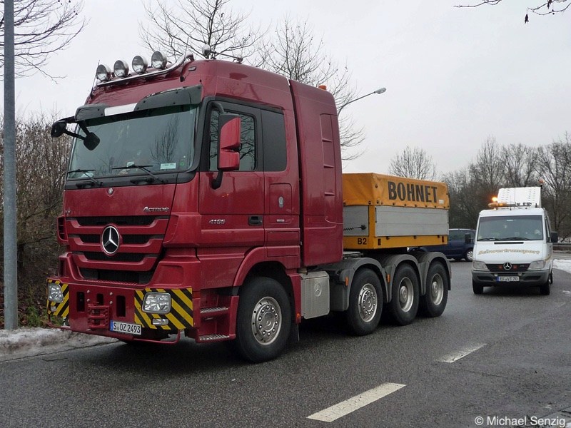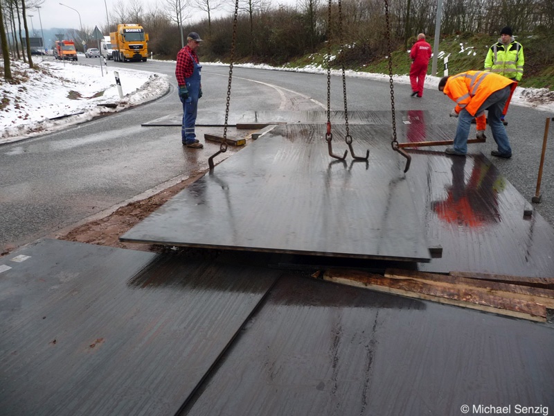 Am 23.12.2010 war Bohnet im saarländischen Saarlouis unterwegs. An einer engen Kreuzung musste eine Verkehrsinsel mit Stahlplatten ausgelegt werdem, damit der Schwertransport das Nadelöhr passieren konnte. Michael Senzig hat das beobachtet und die Fotos gemacht.