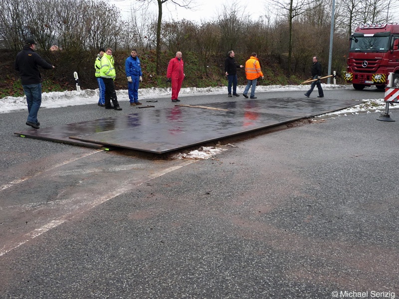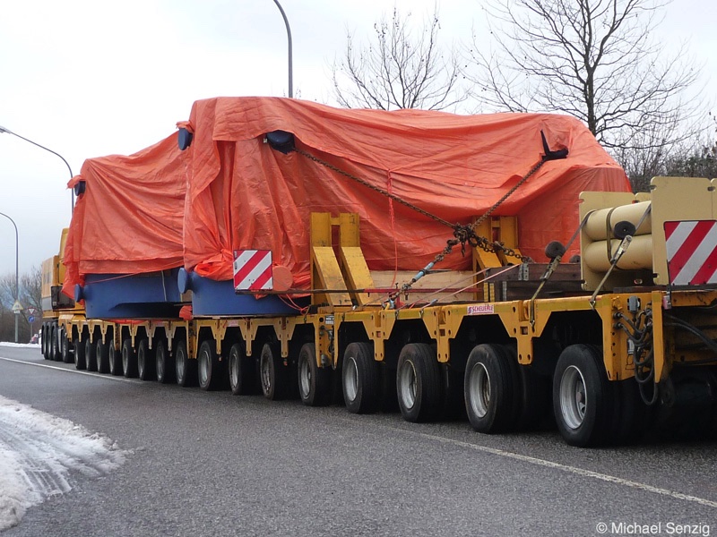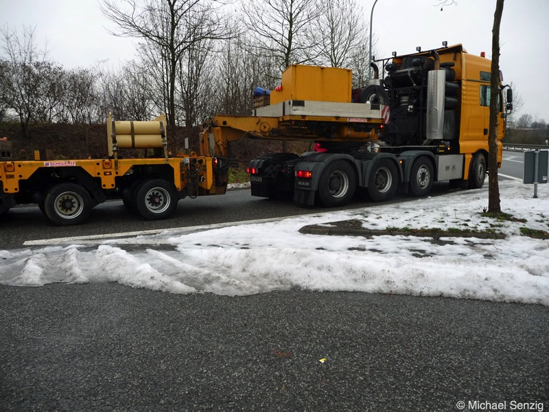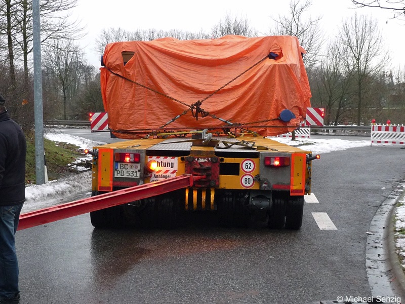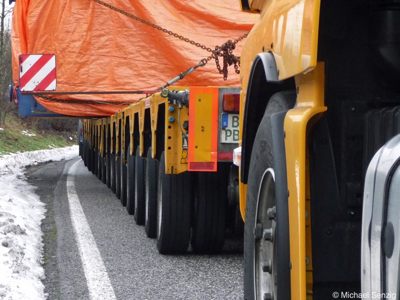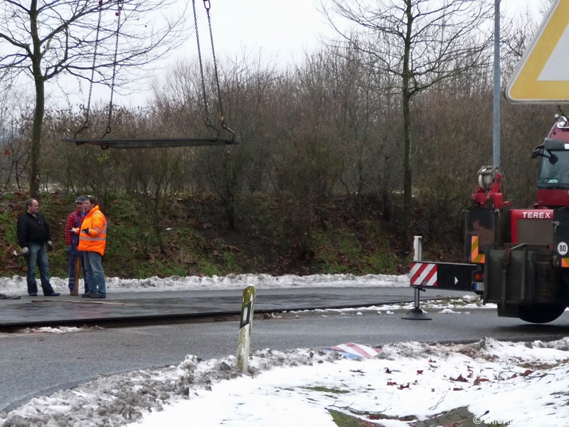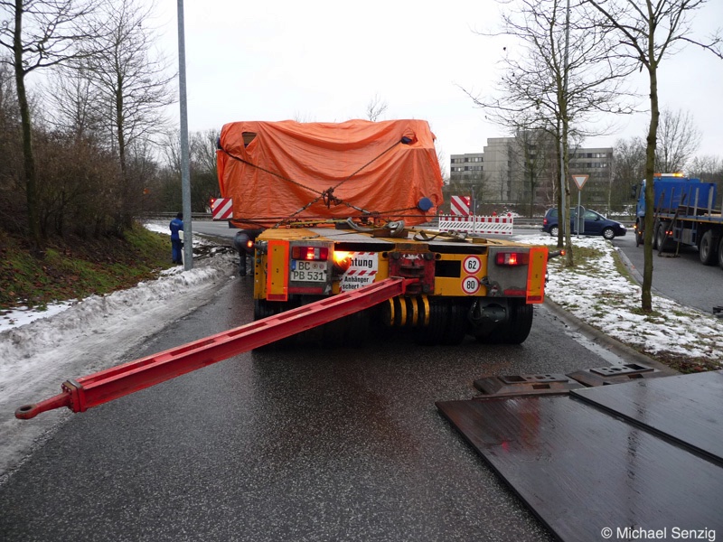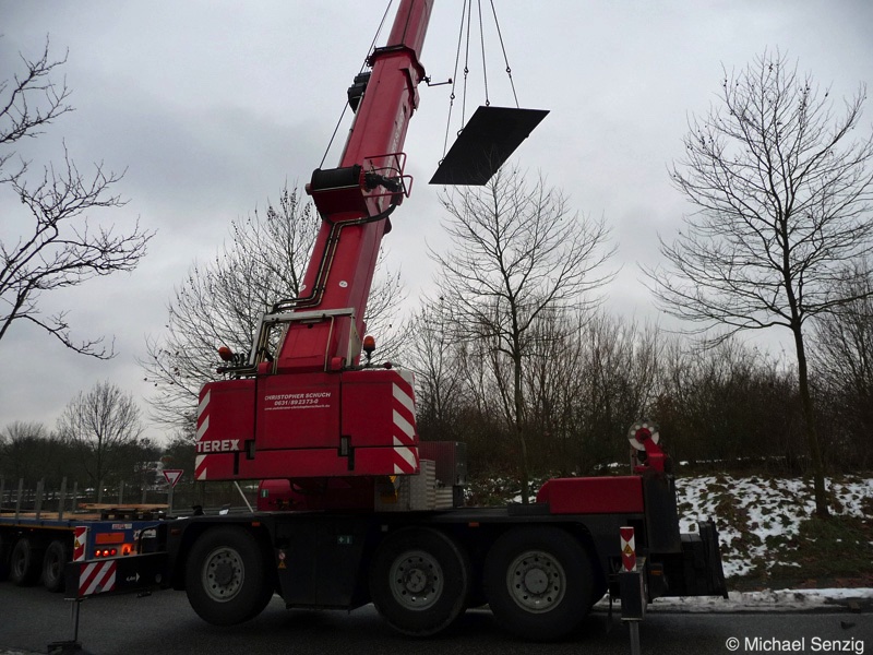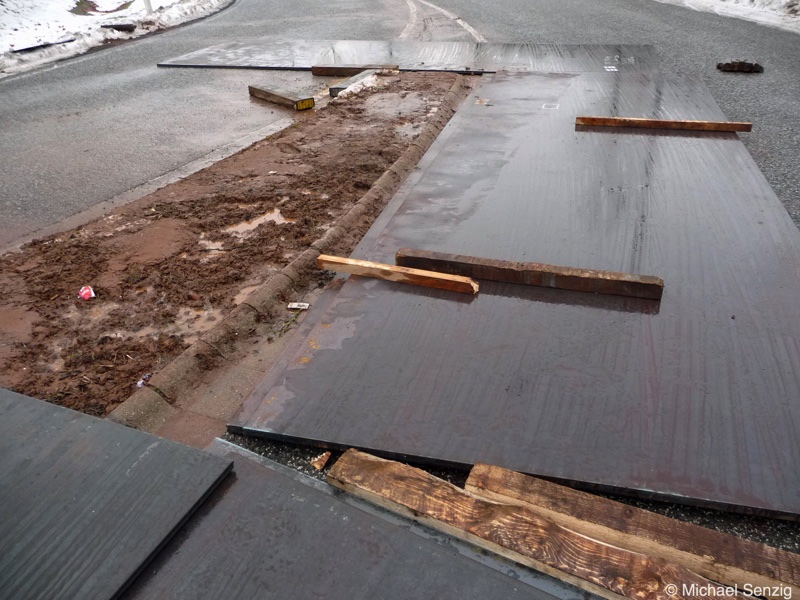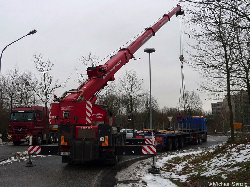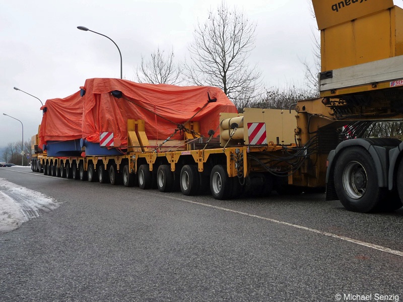 Am 23.12.2010 war Bohnet im saarländischen Saarlouis unterwegs. An einer engen Kreuzung musste eine Verkehrsinsel mit Stahlplatten ausgelegt werdem, damit der Schwertransport das Nadelöhr passieren konnte. Michael Senzig hat das beobachtet und die Fotos gemacht.