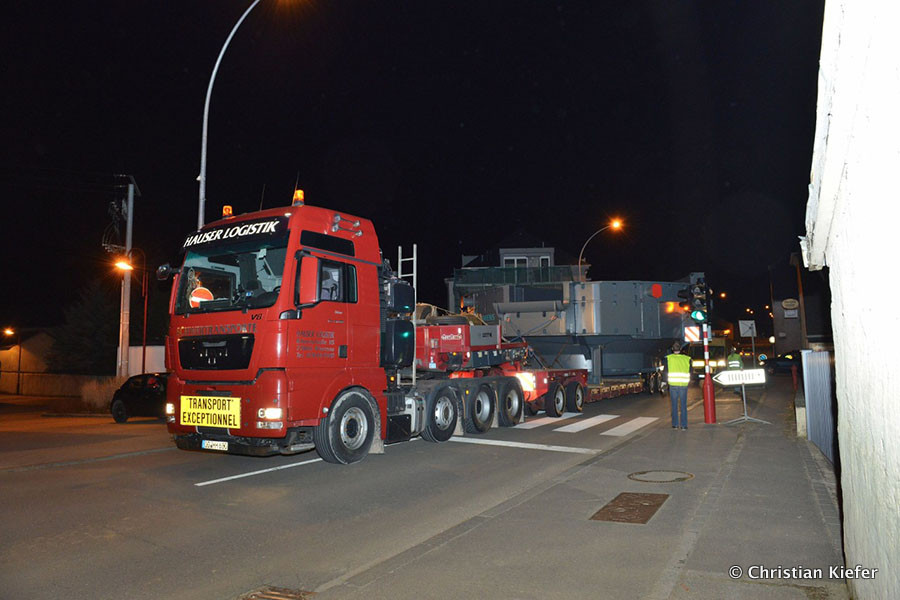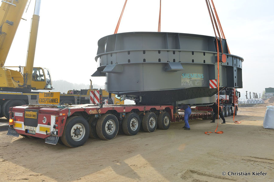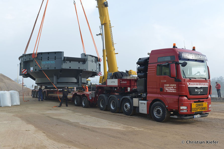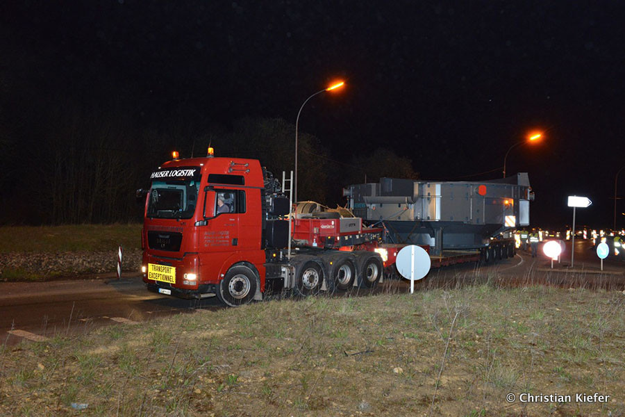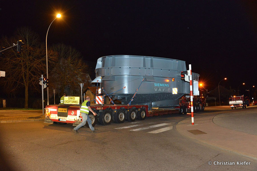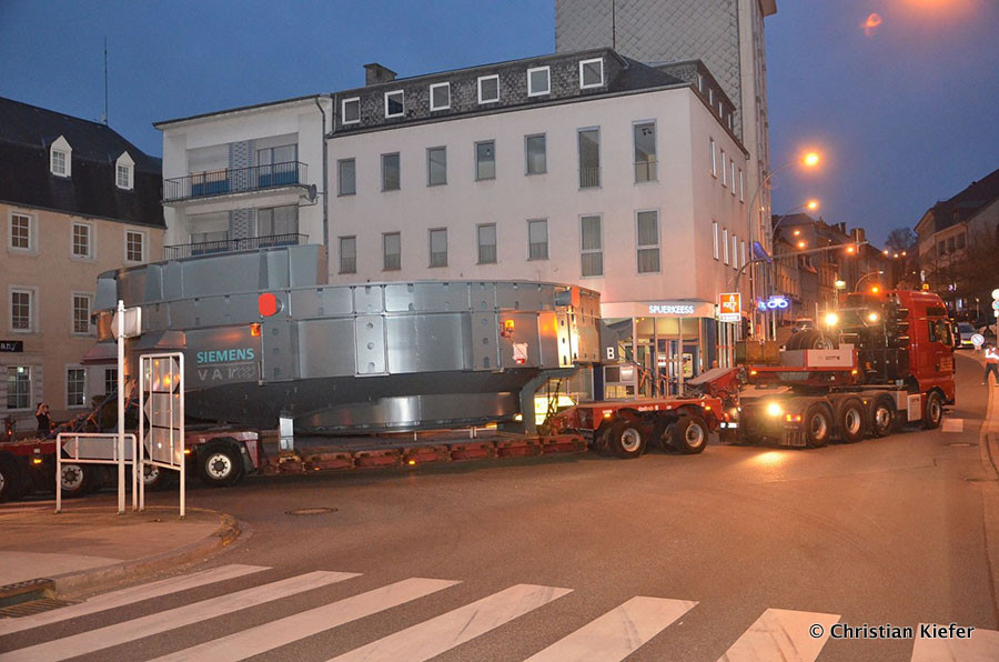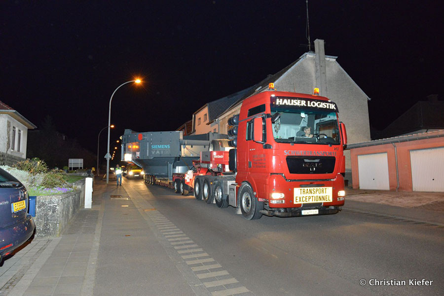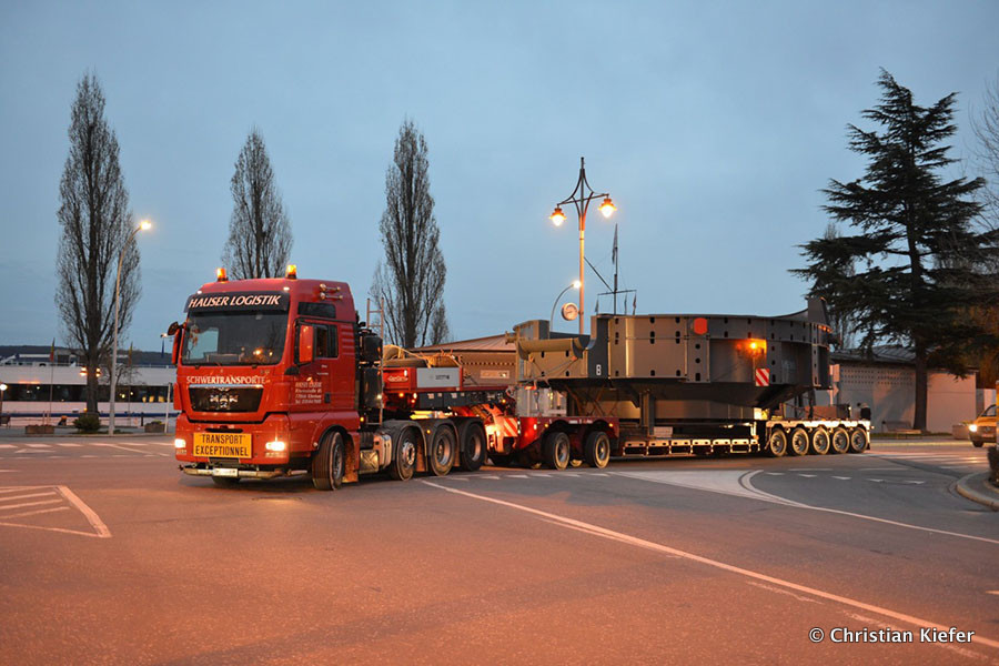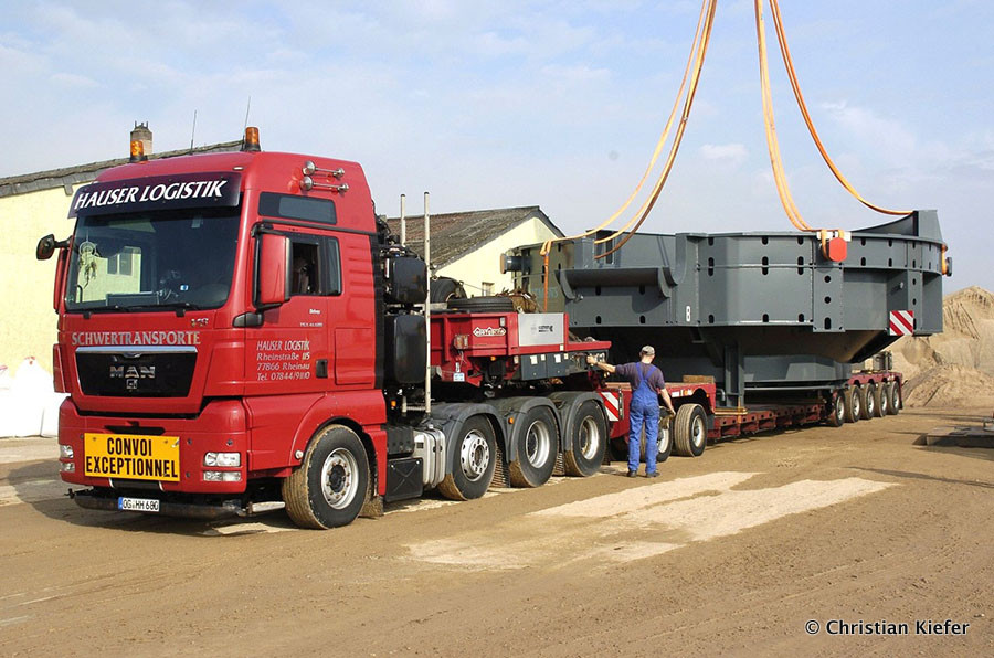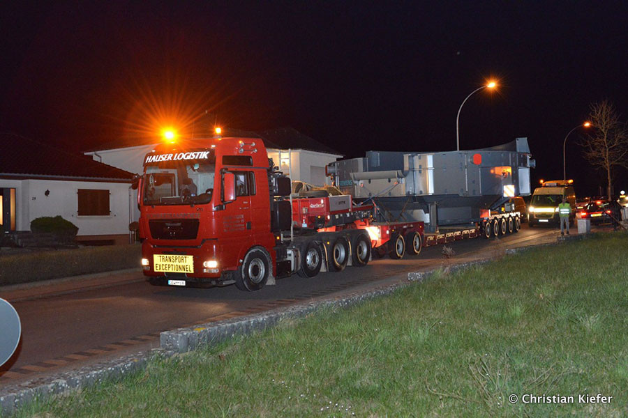Am 17.04.2013 hat die Firma Hauser Logistik im Saarland ein schweres Hochofenteil transportiert. Die Bilder sind von Christian Kiefer, der Verladung und Transport beobachtet/begleitet hat.