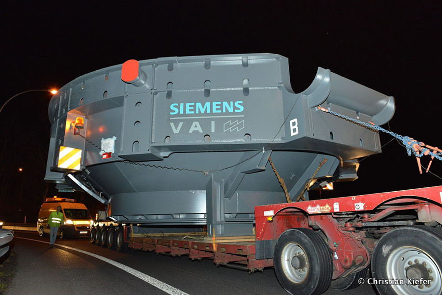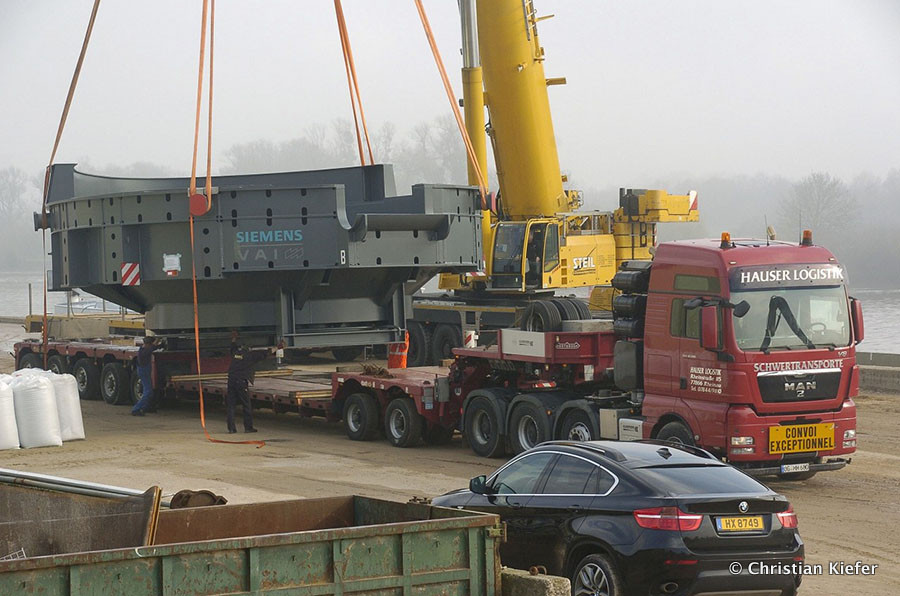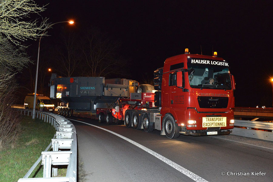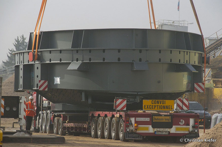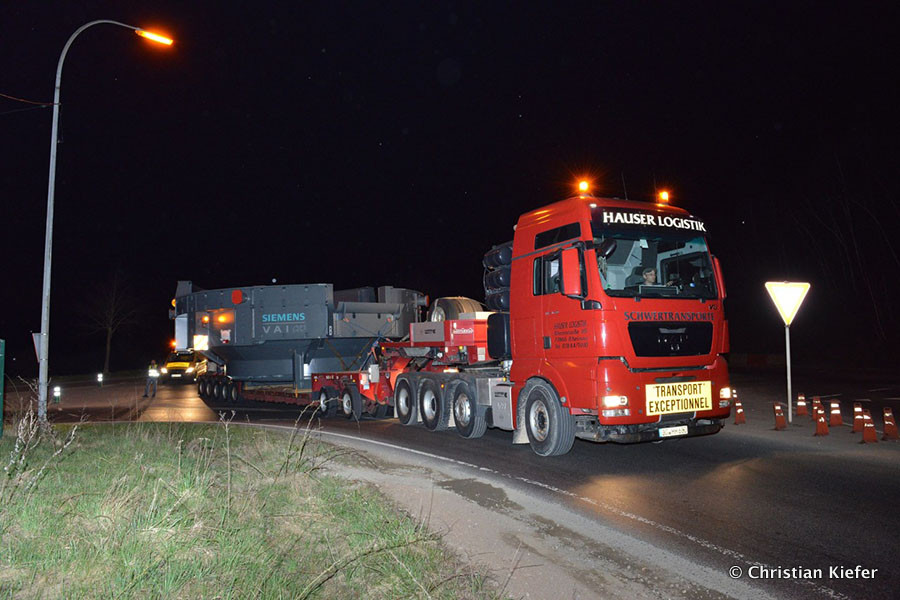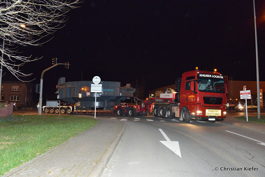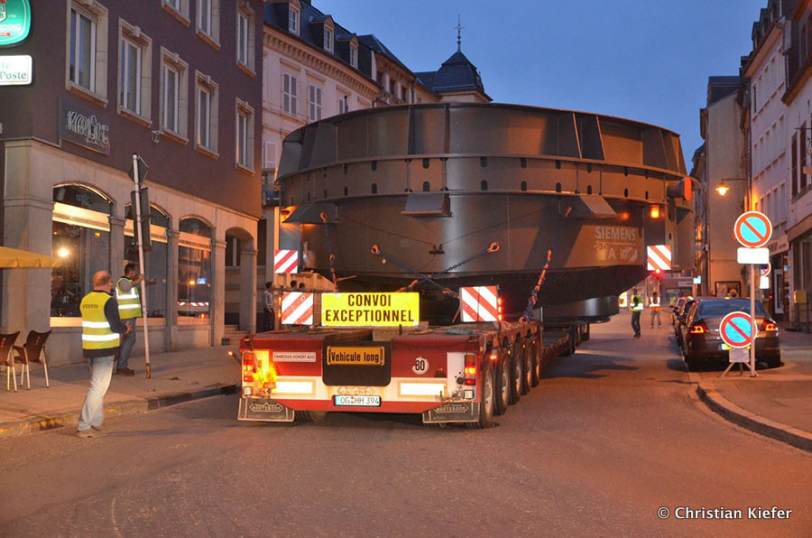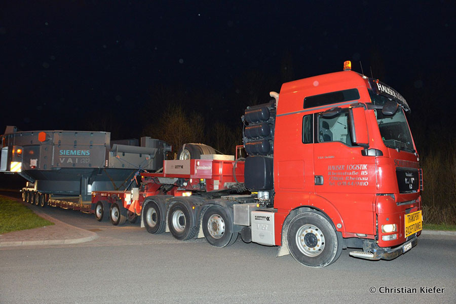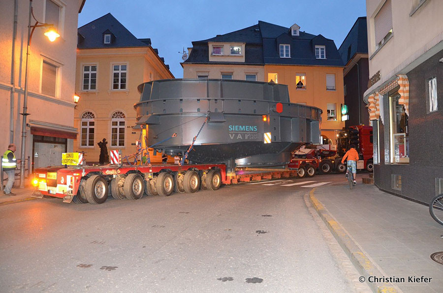 Am 17.04.2013 hat die Firma Hauser Logistik im Saarland ein schweres Hochofenteil transportiert. Die Bilder sind von Christian Kiefer, der Verladung und Transport beobachtet/begleitet hat.