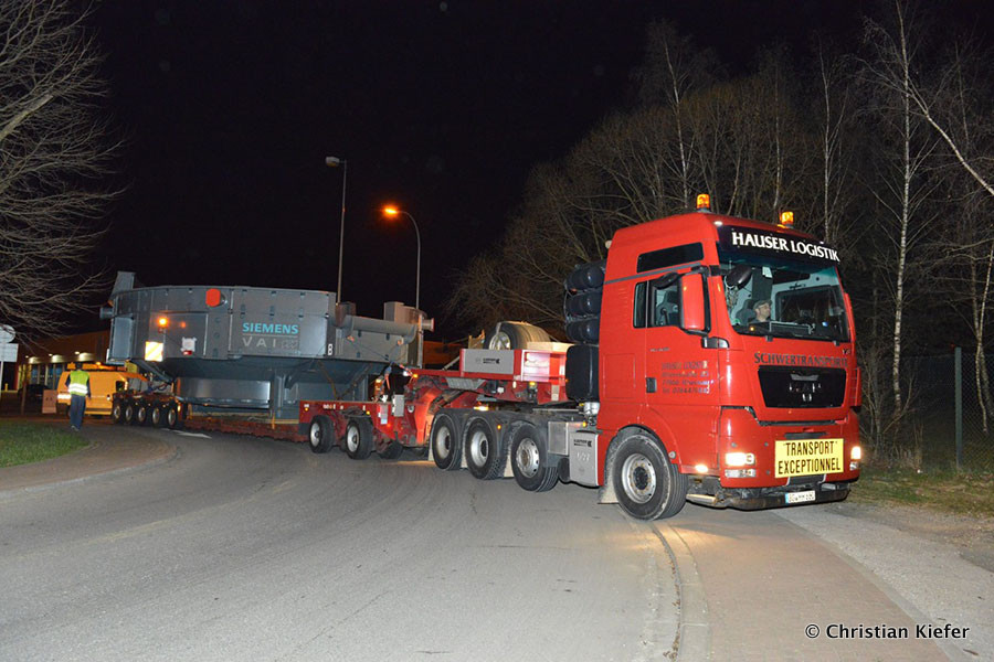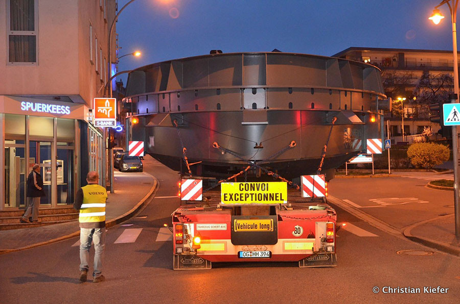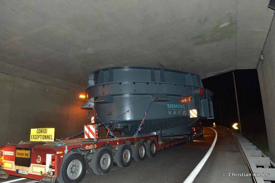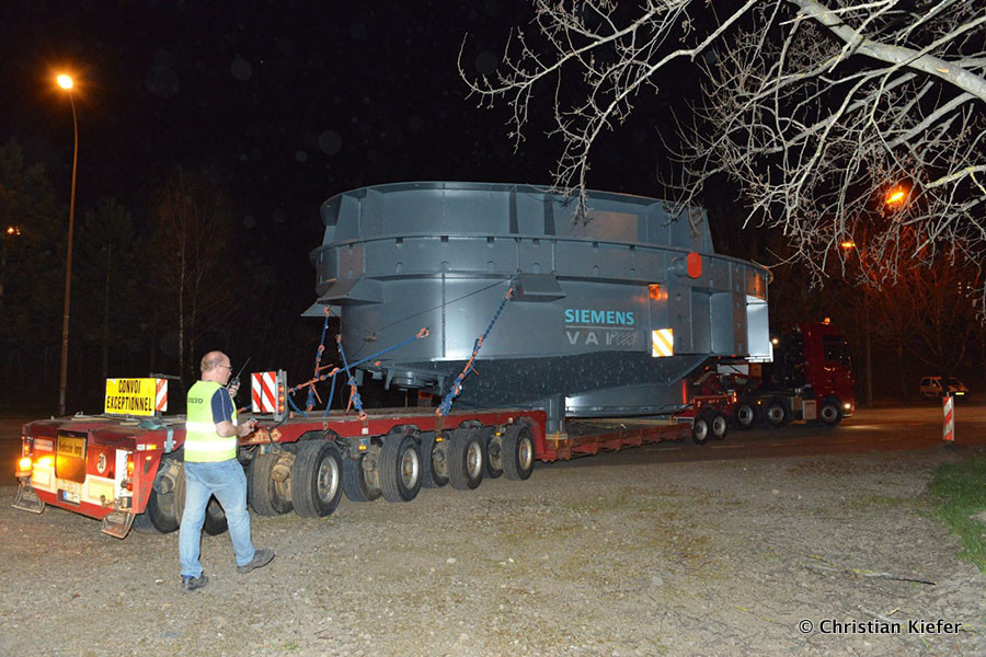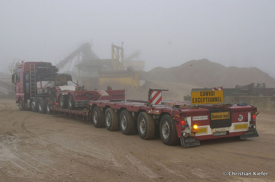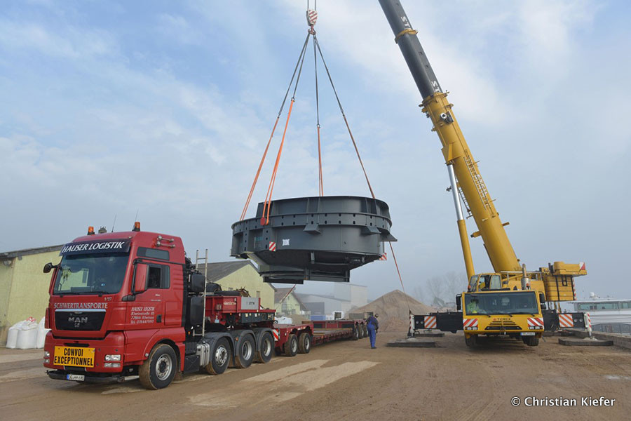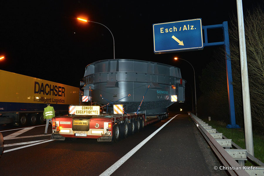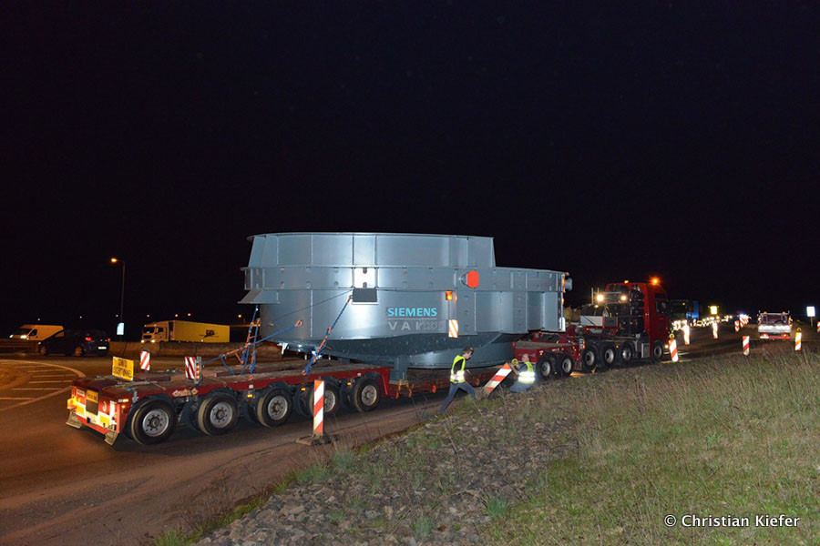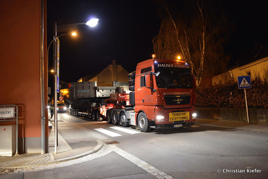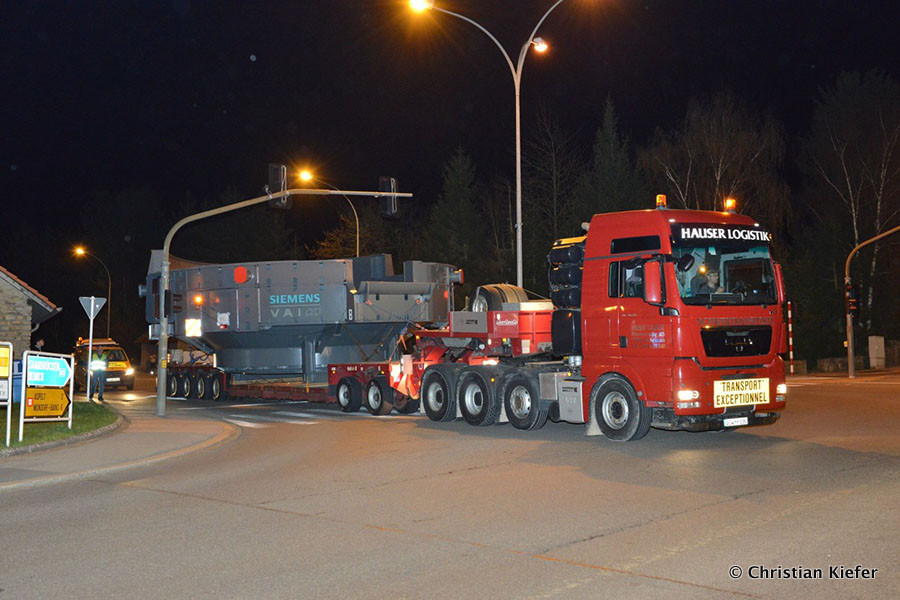 Am 17.04.2013 hat die Firma Hauser Logistik im Saarland ein schweres Hochofenteil transportiert. Die Bilder sind von Christian Kiefer, der Verladung und Transport beobachtet/begleitet hat.