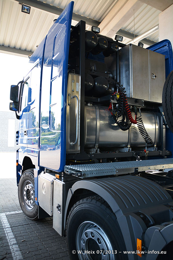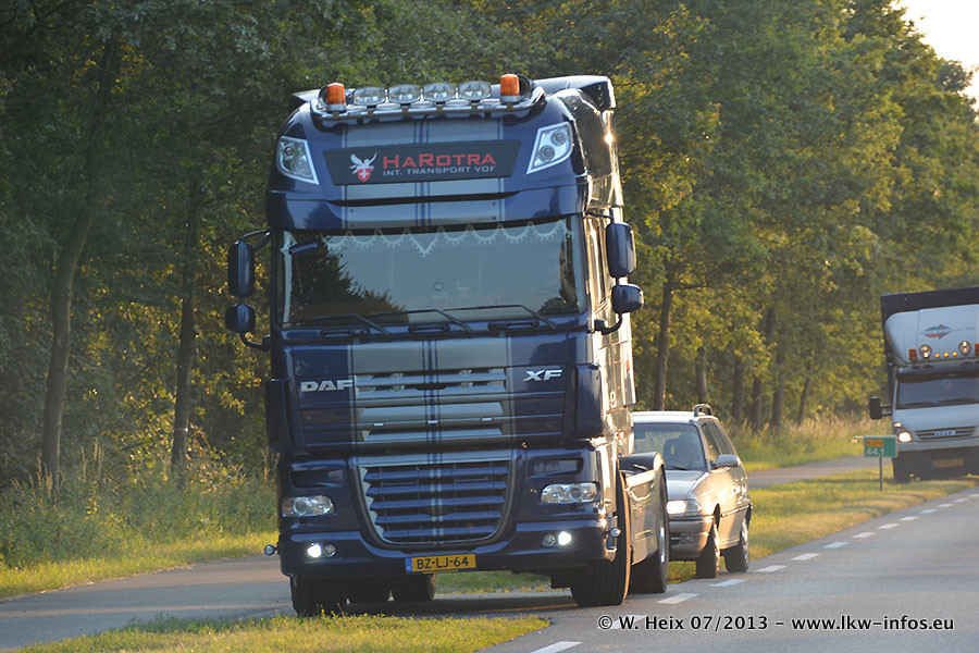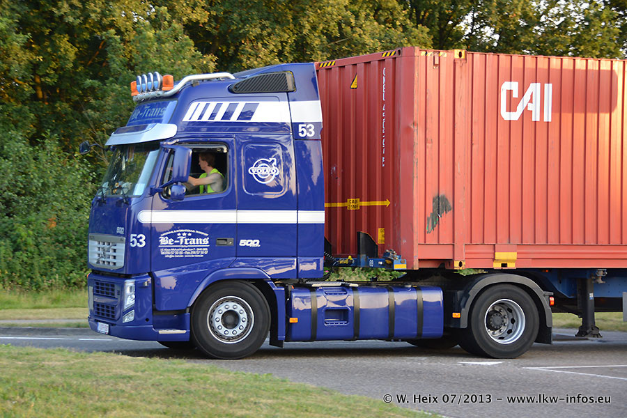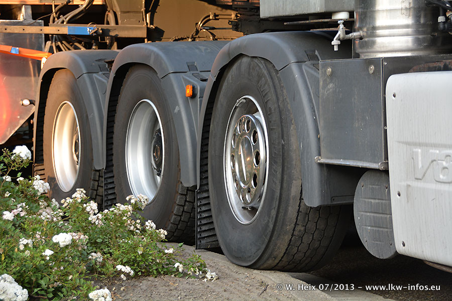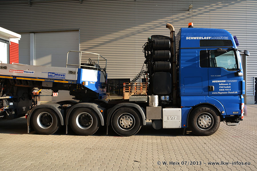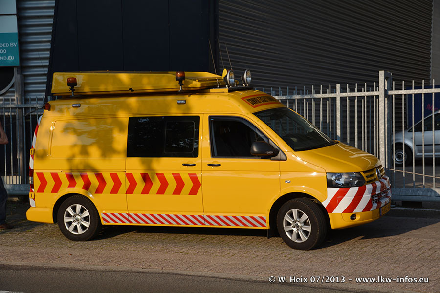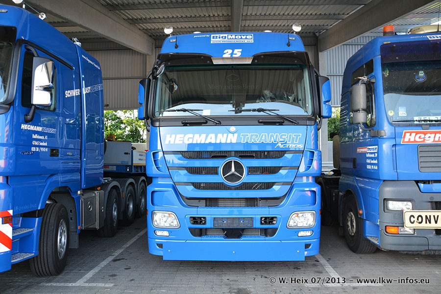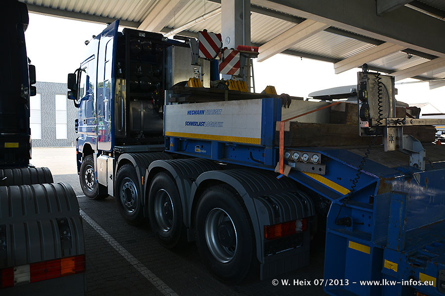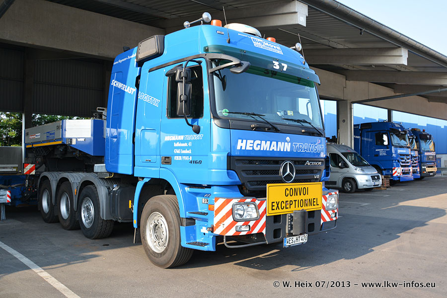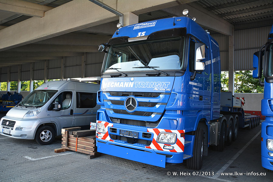 Am 15.07.2013 hatte die Firma Hegmann Transit aus Sonsbeck den Auftrag, ein 6,10 m breites und 13,0 m langes voll eingerichtetes Hausboot vom Hersteller im niederländischen Wanssum (zwischen Venlo und Nijmegen gelegen) zum Freizeitpark "Xantener Nordsee" im niederrheinischen Xanten-Wardt zu transportieren. Der Transport startet gegen 20:00 Uhr und führte zunächst mit zwei und später vier niederländischen Begleitern durch den Ort Wanssum und dann ca. 10 km über Nationalstraße bis zur A73. Diese Etappe war auch das interessanteste Stück mit einigen engen Verkehrsinseln und zwei Kreisverkehren, die einmal rechts und einmal links im Gegenverkehr durchfahren wurden. Dann ging es über die Autobahnen A73 und A77 bis zum Grenzübergang Goch Autobahn auf der A57. Dort blieb der Transport für eine gute Stunde stehen bis die deutsche Polizeibegleitung vor Ort war. Die Fahrt führte dann über die A57 bis zur Anschlussstelle Alpen. Dort wechselte dann die Polizeibegleitung und die Fahrt ging weiter über die B58 bis Alpen und dann über die B57 vorbei an Xanten bis zum Ortsteil Wardt.