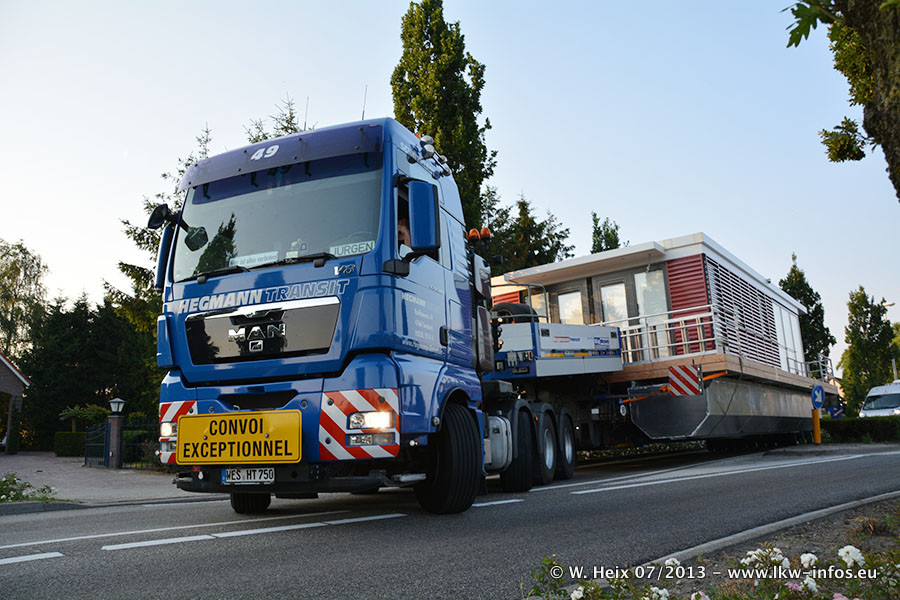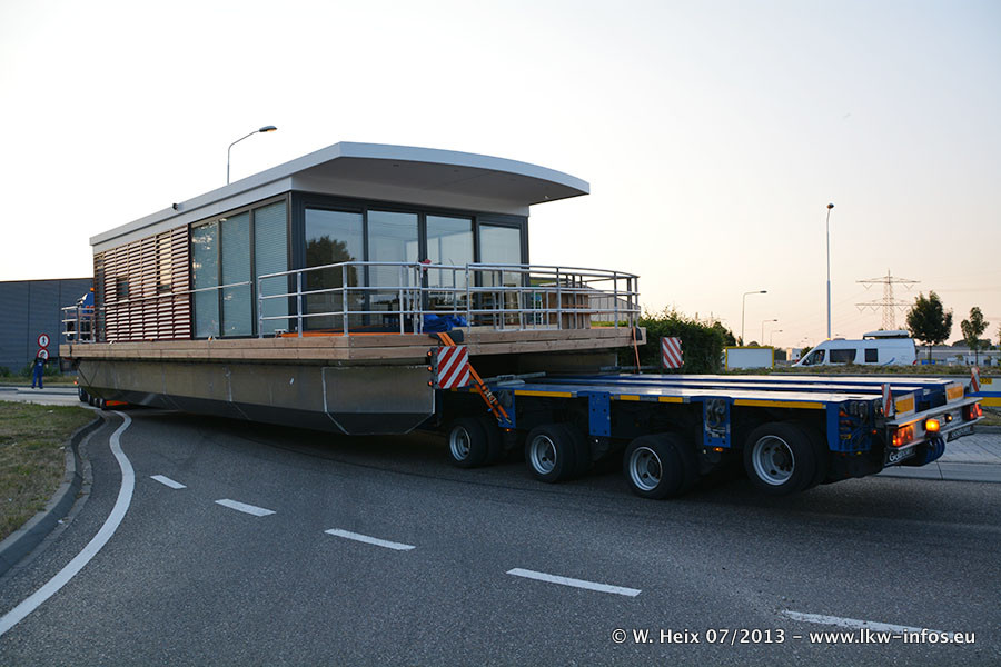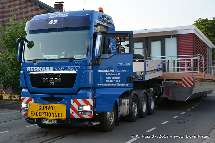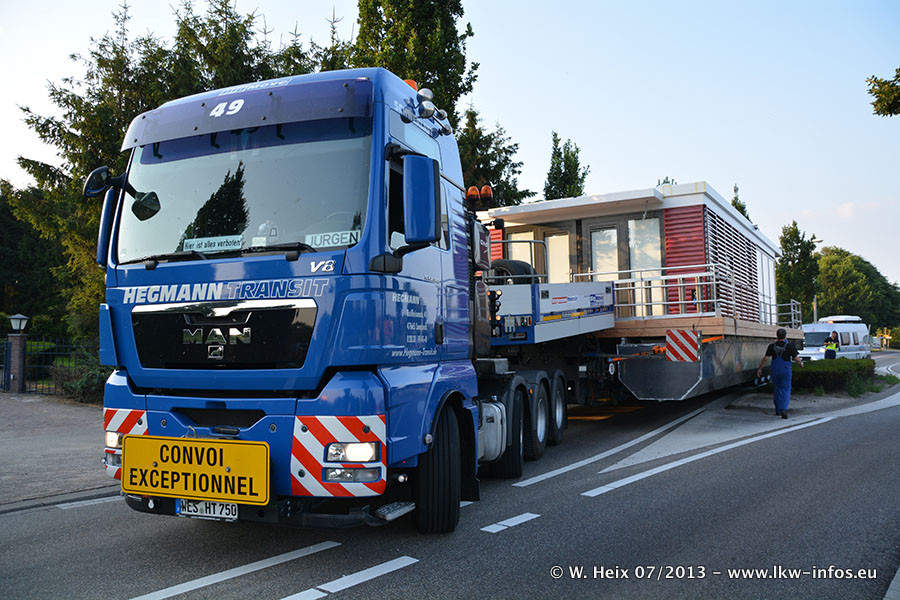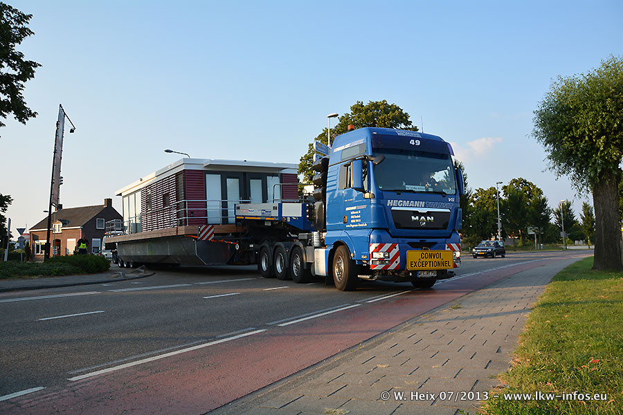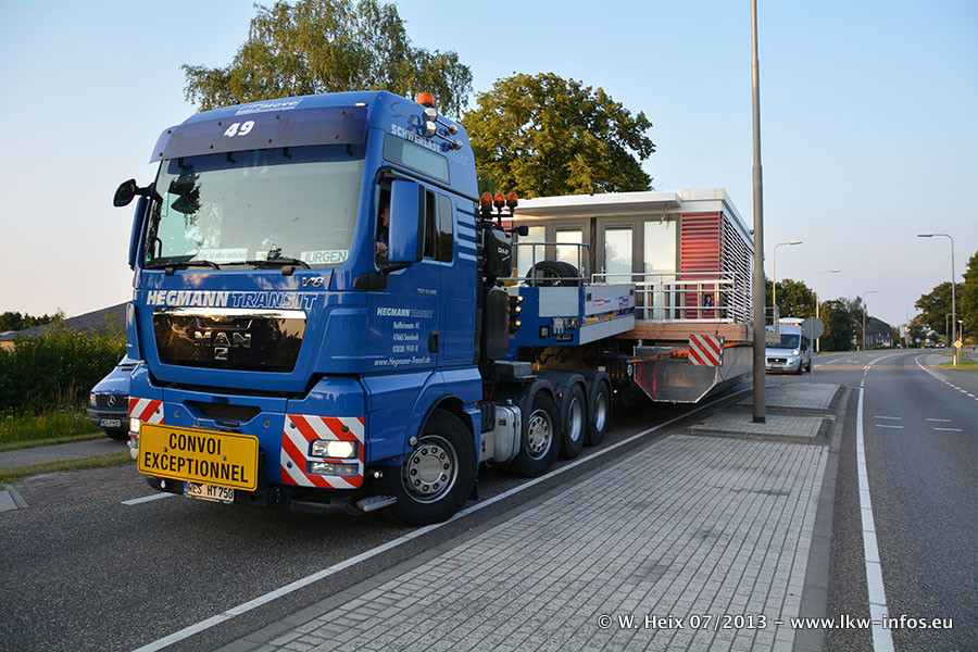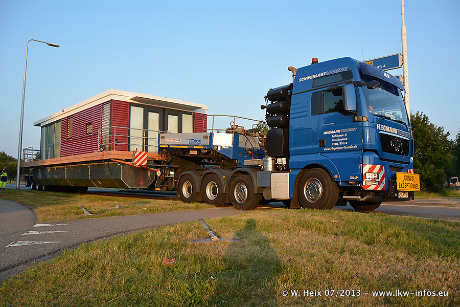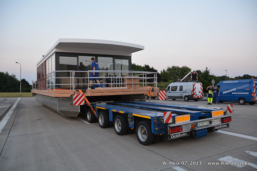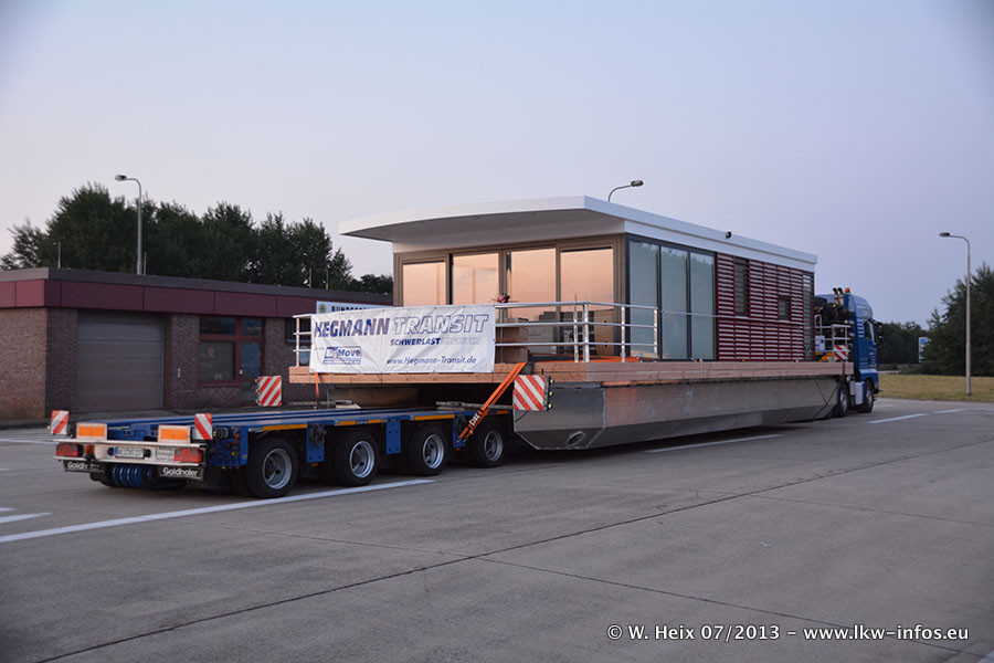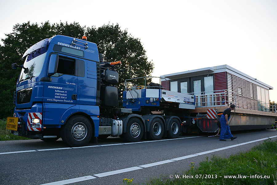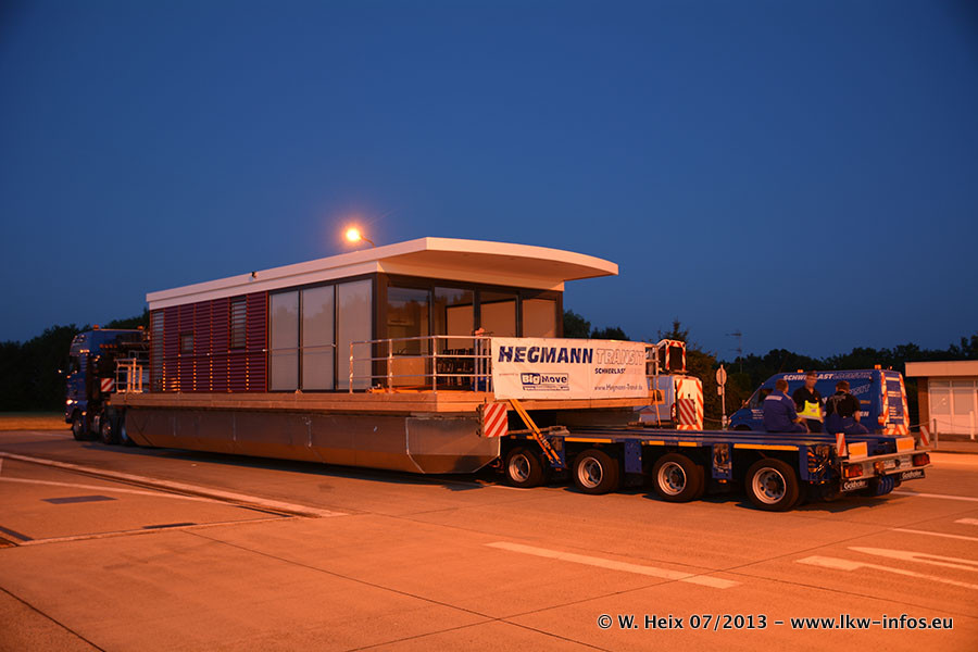 Hegmann Transit - 07/2013: Hausboot-Transport von Wanssum (NL) nach Xanten (D)