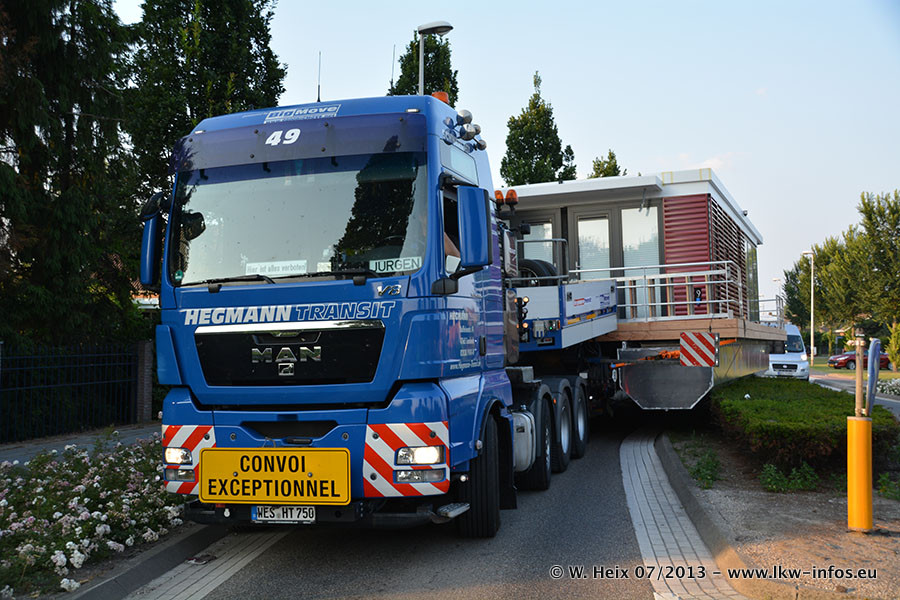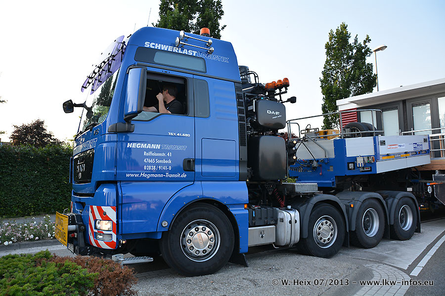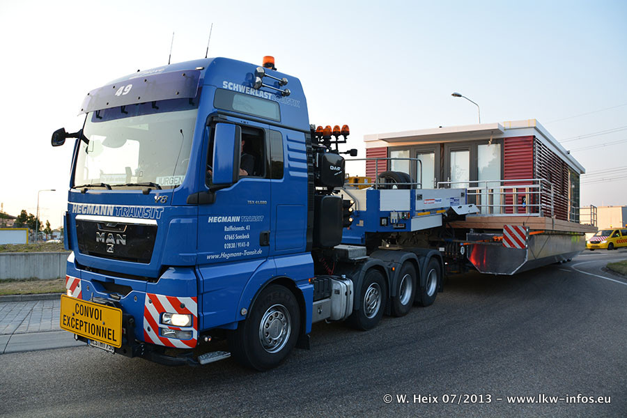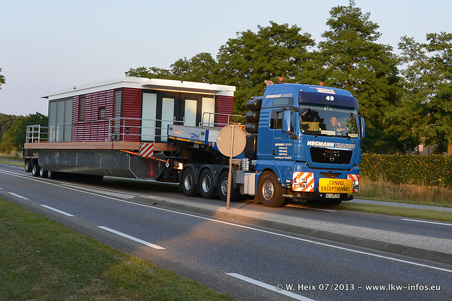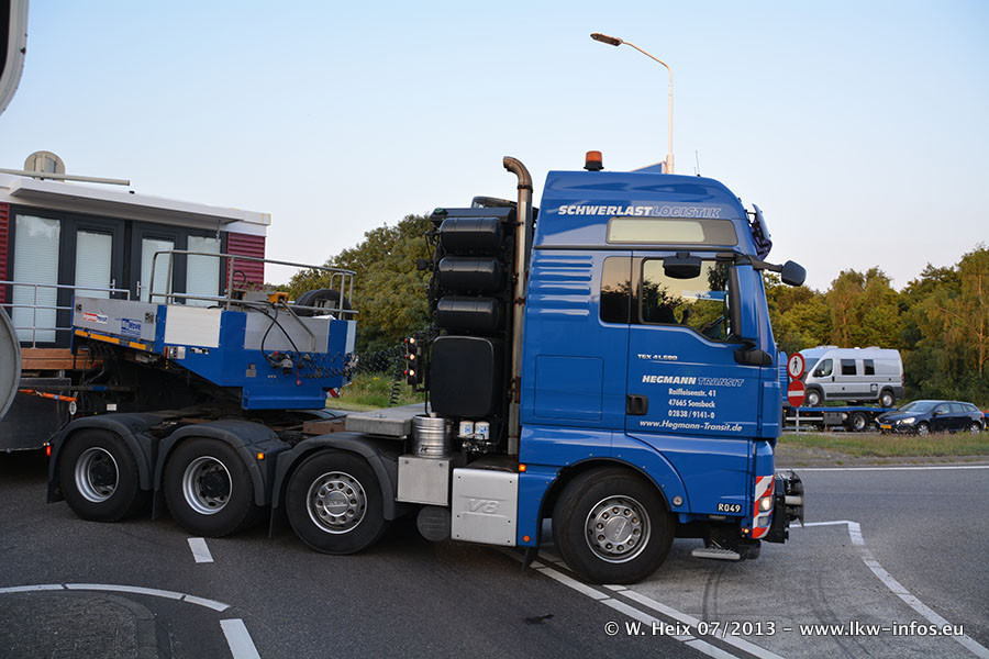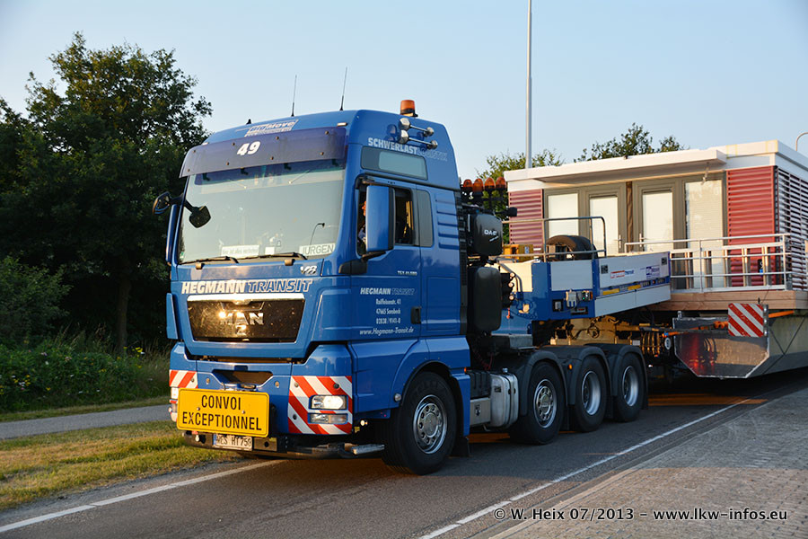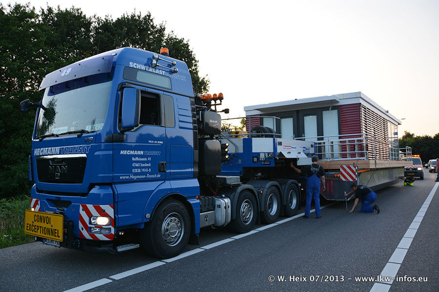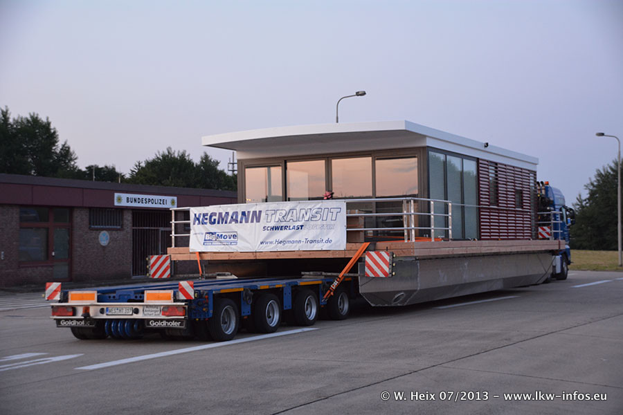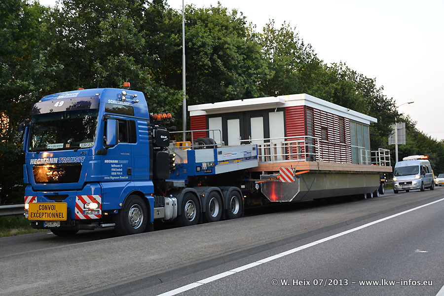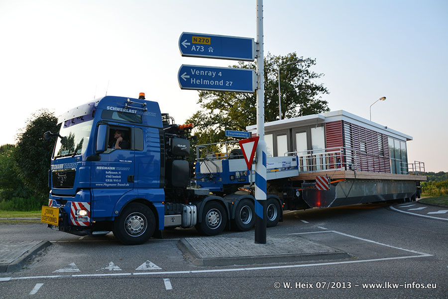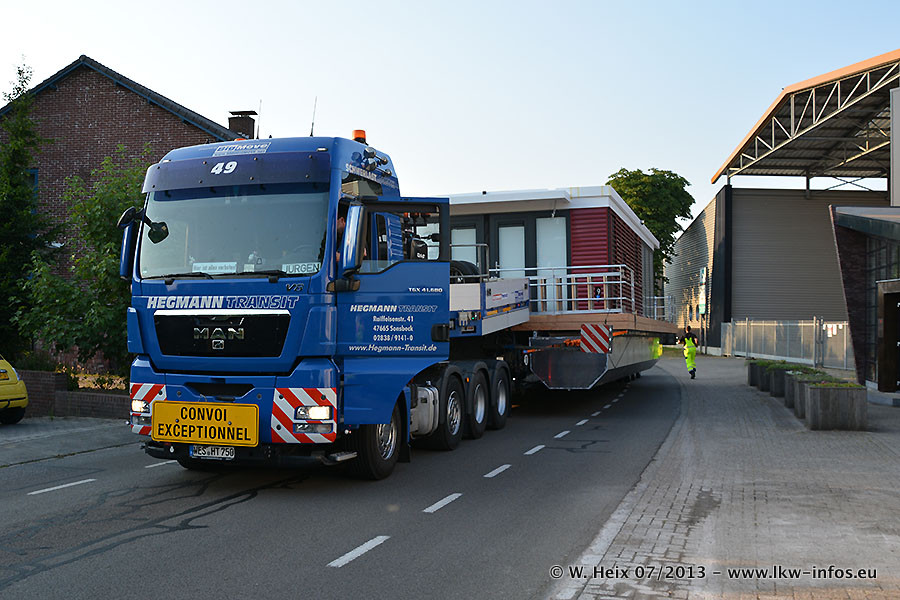 Hegmann Transit - 07/2013: Hausboot-Transport von Wanssum (NL) nach Xanten (D)