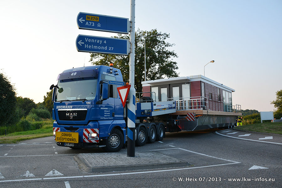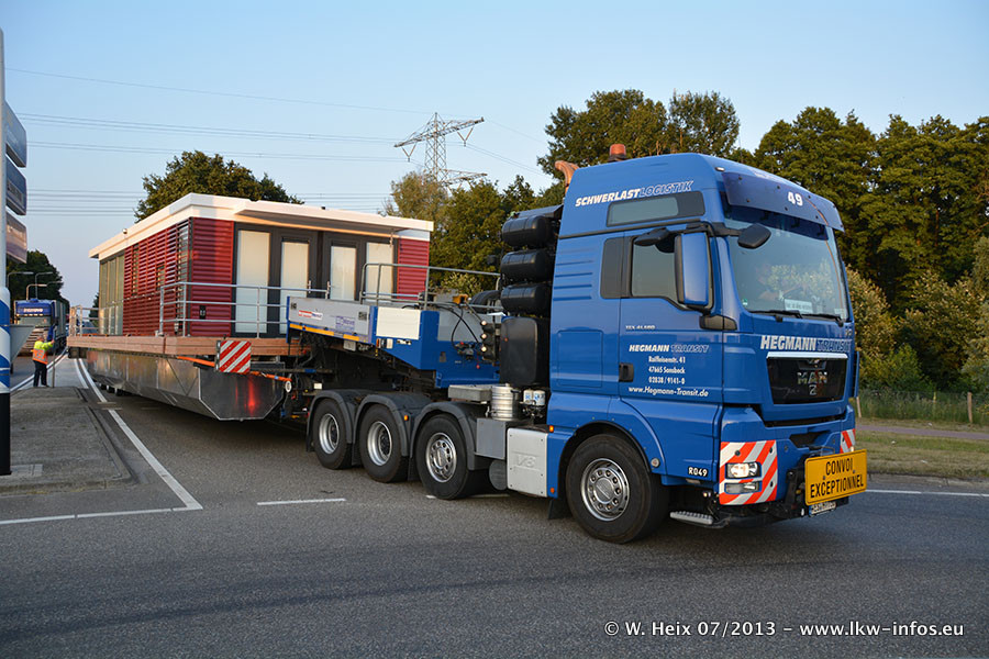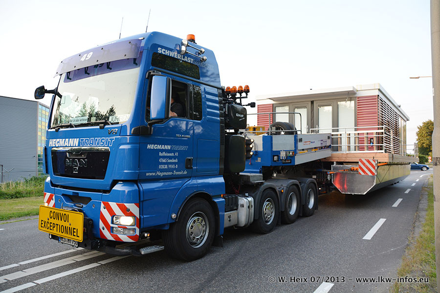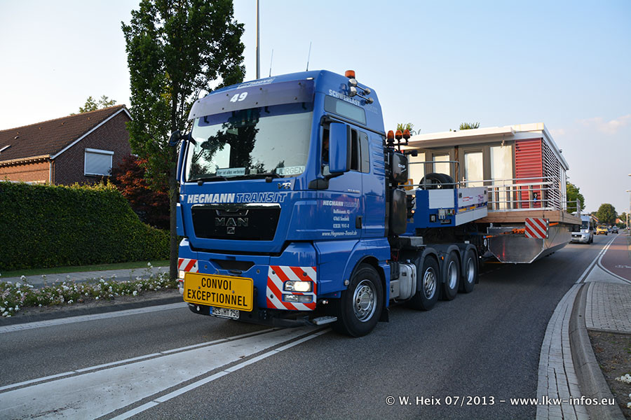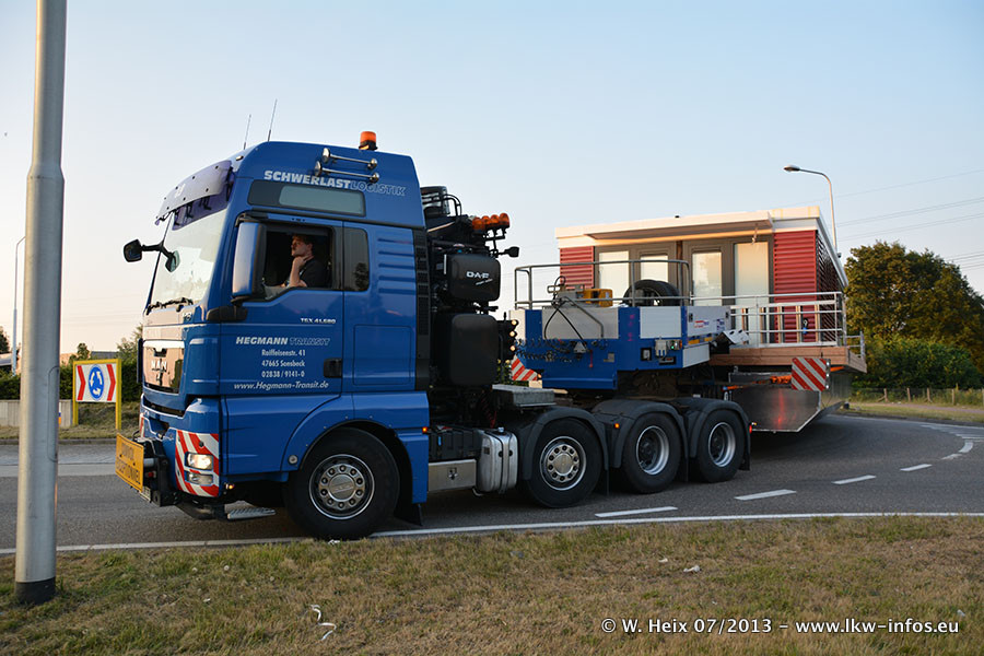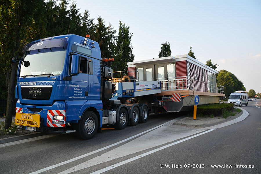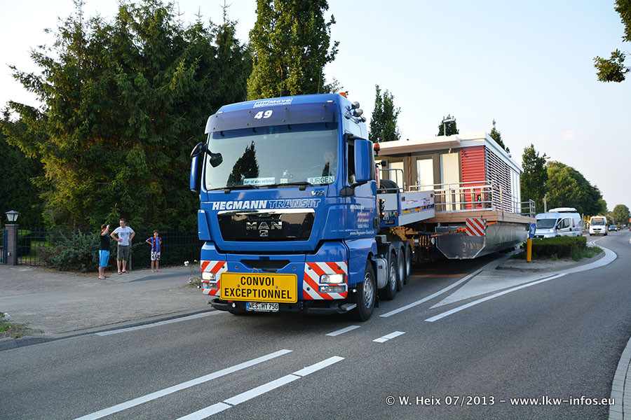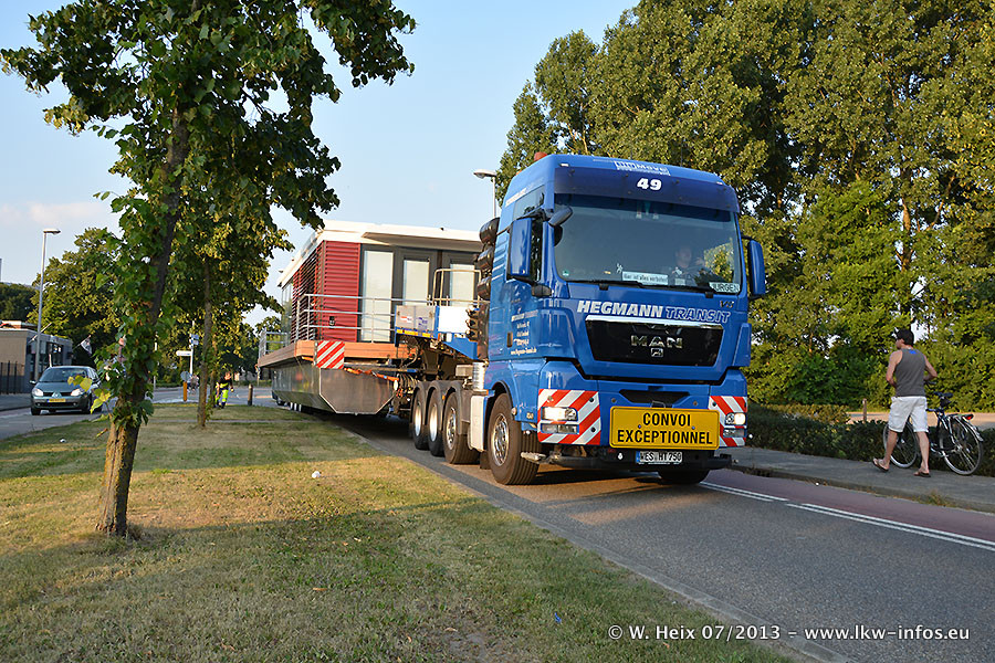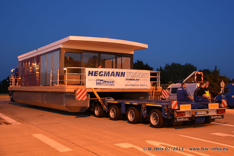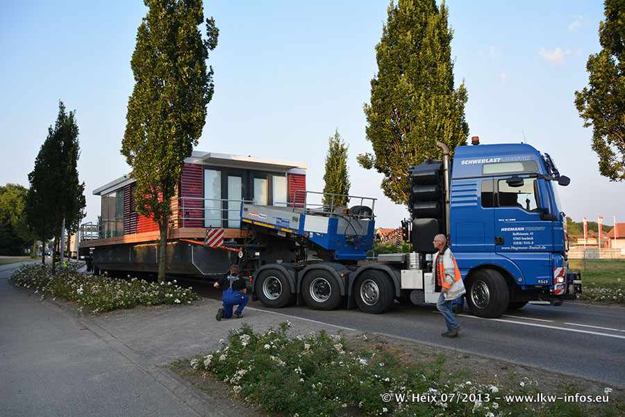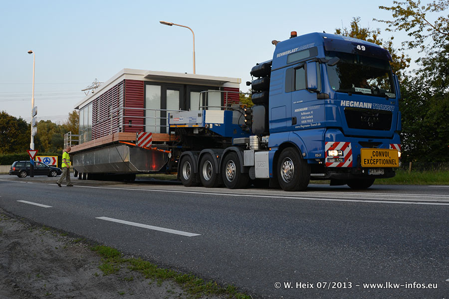 Hegmann Transit - 07/2013: Hausboot-Transport von Wanssum (NL) nach Xanten (D)