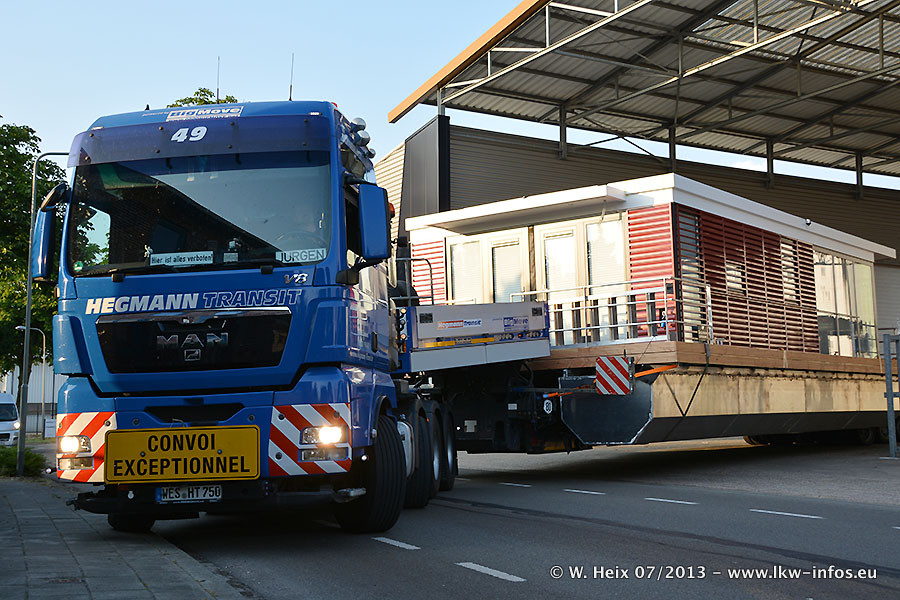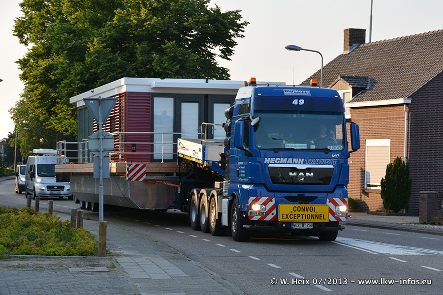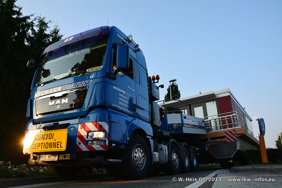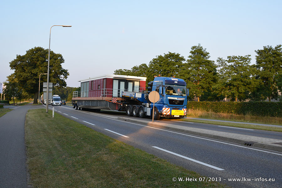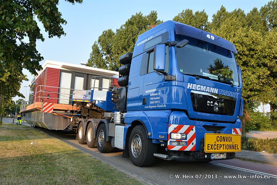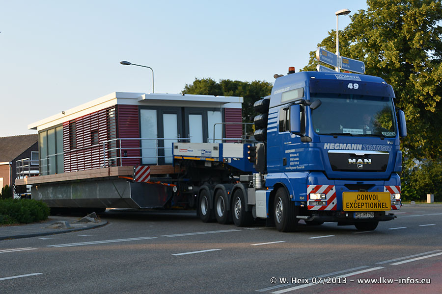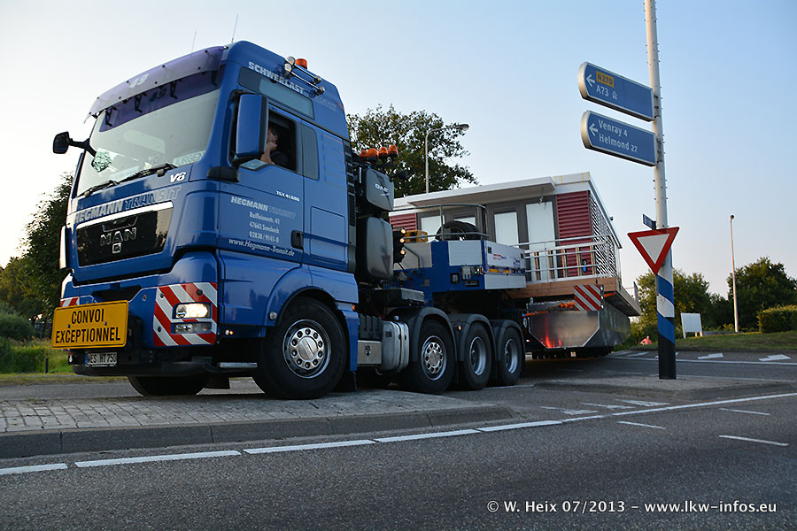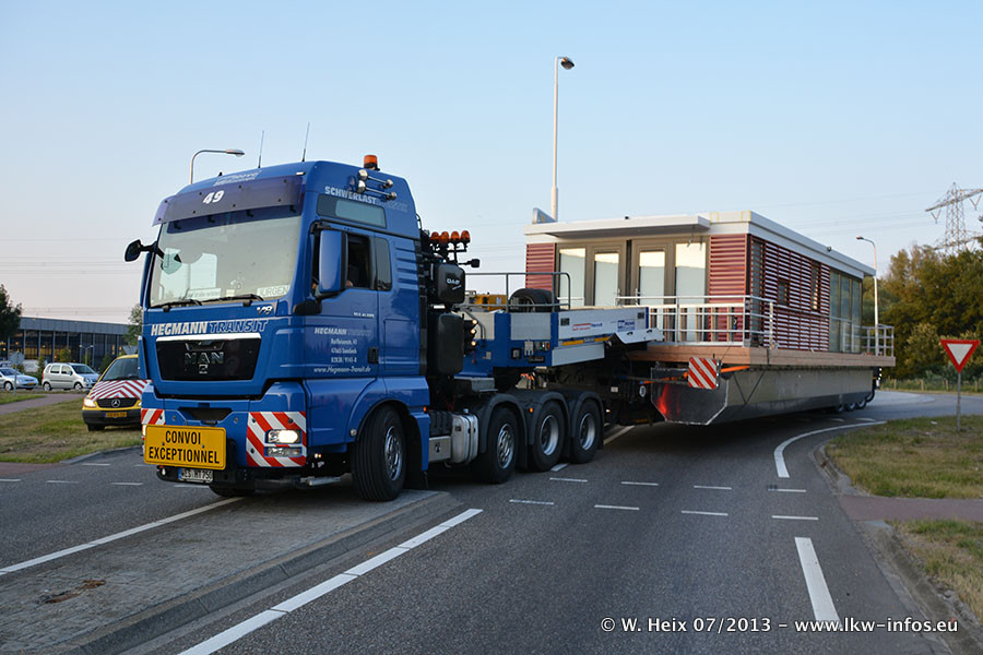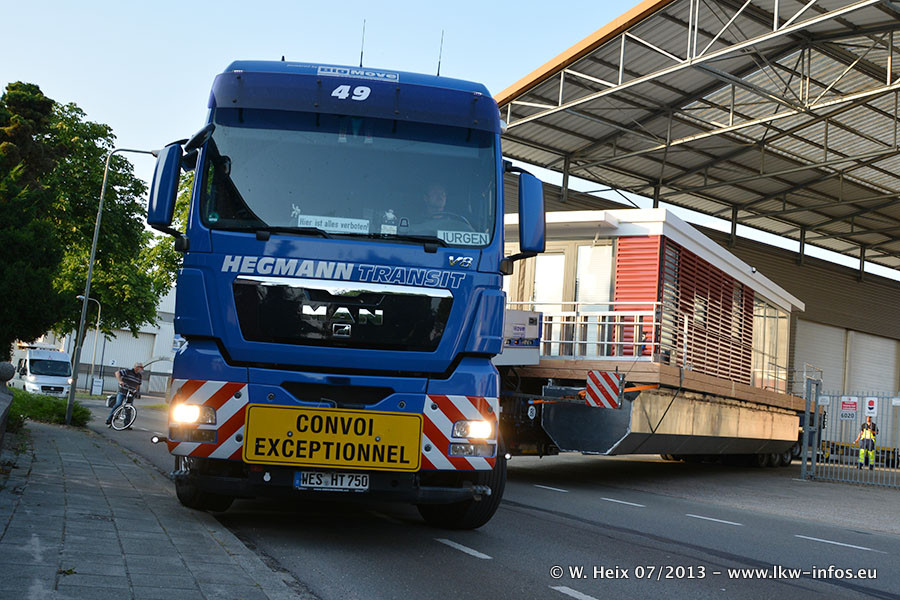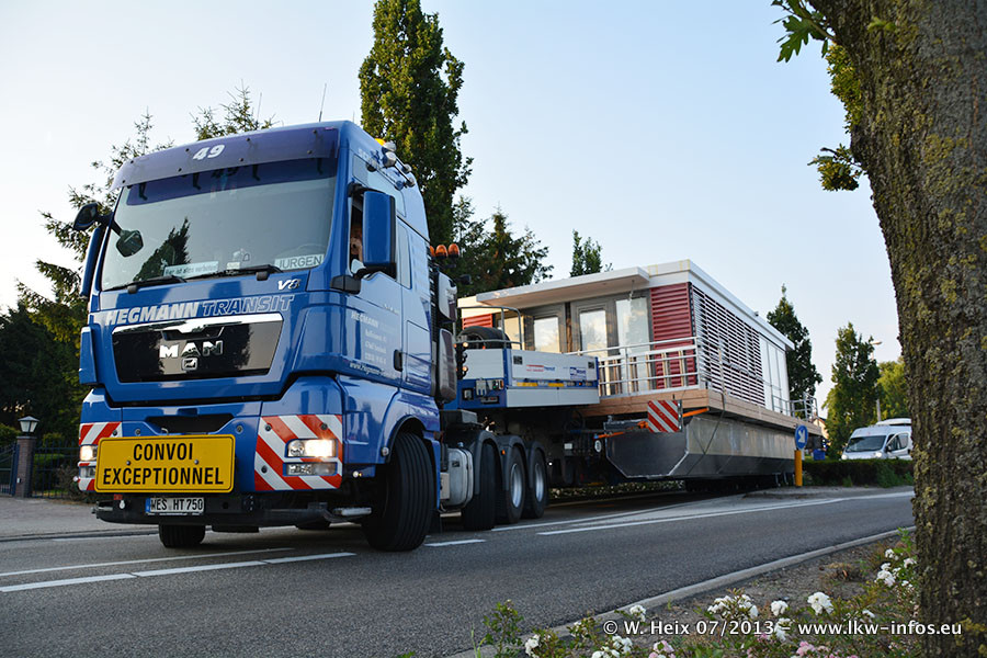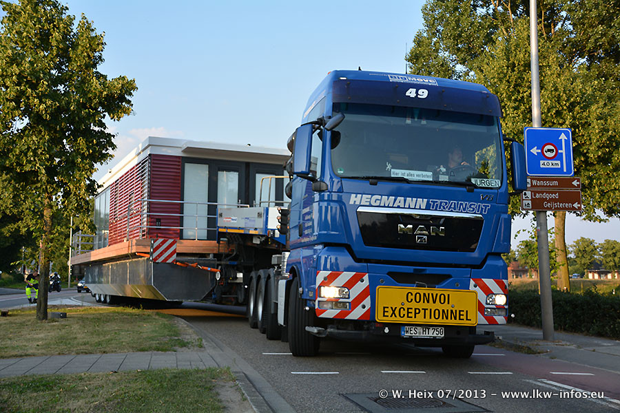 Hegmann Transit - 07/2013: Hausboot-Transport von Wanssum (NL) nach Xanten (D)