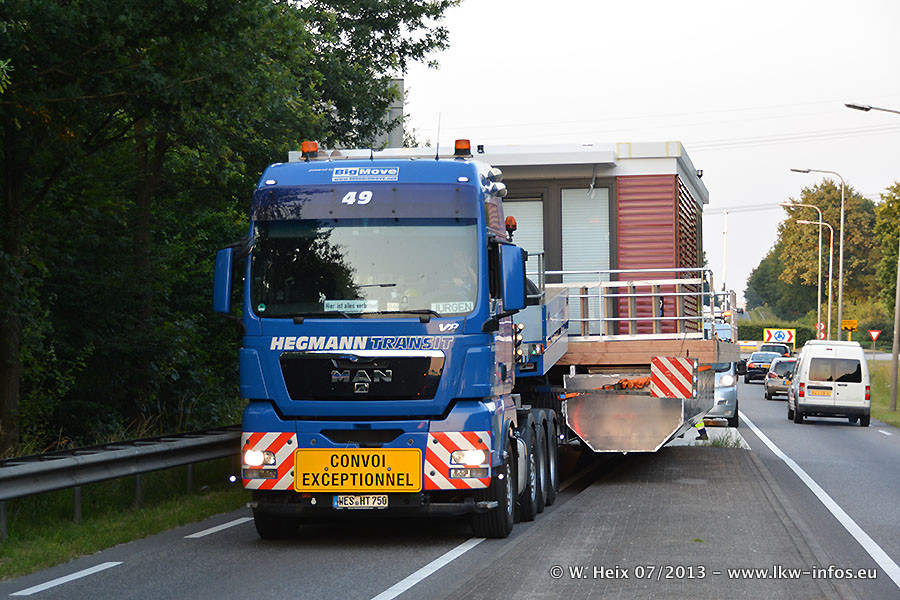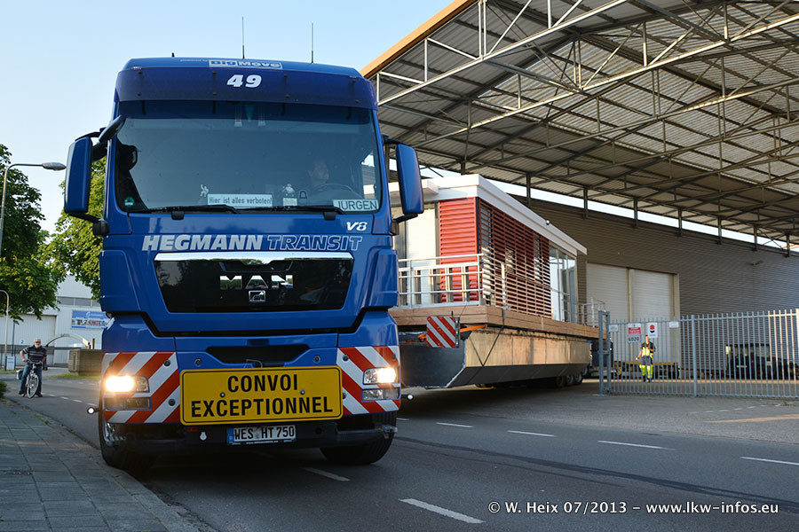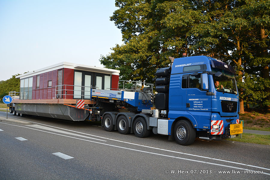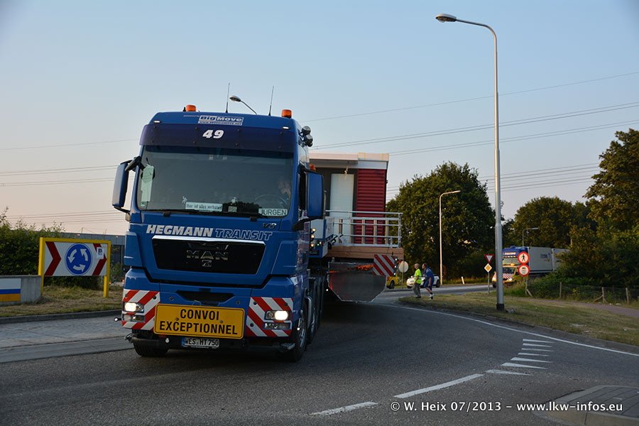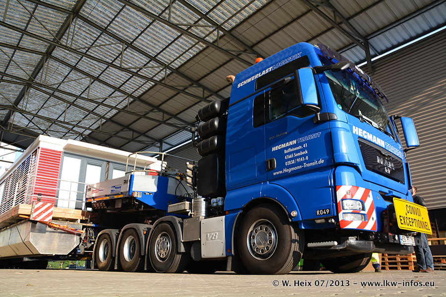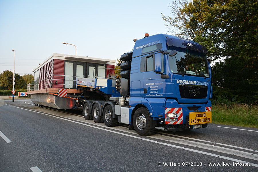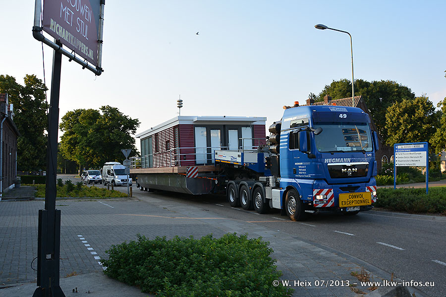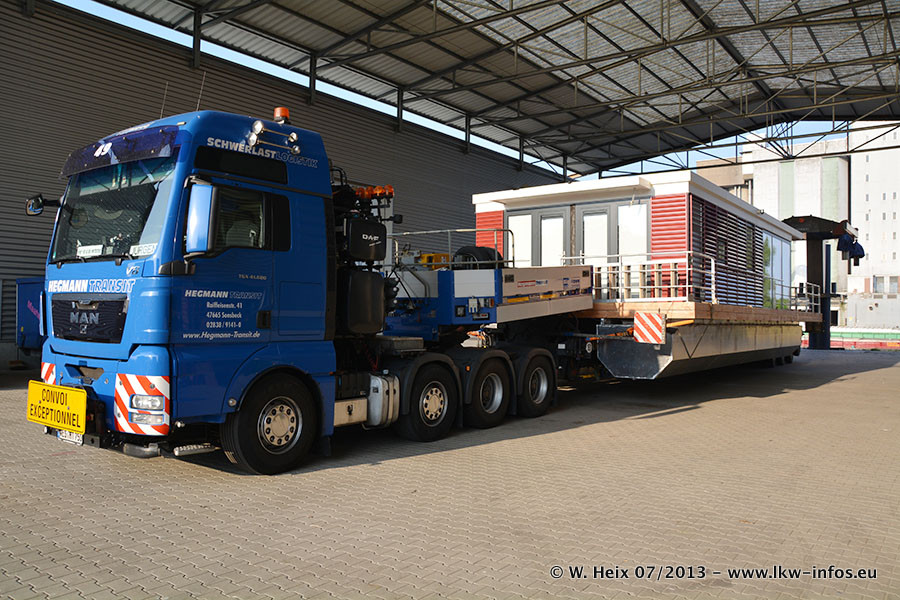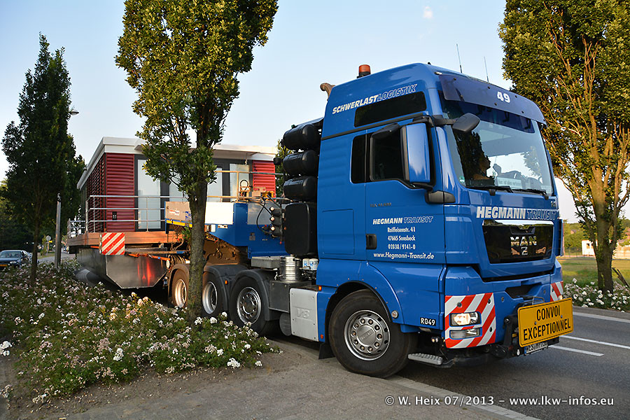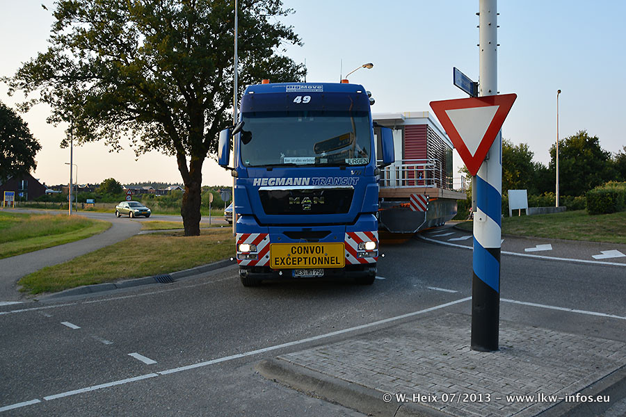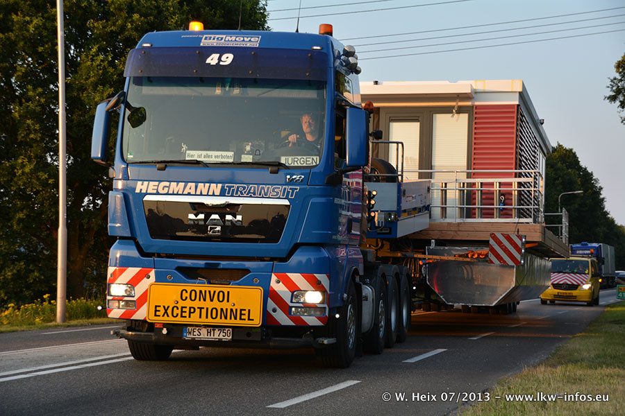Hegmann Transit - 07/2013: Hausboot-Transport von Wanssum (NL) nach Xanten (D)
