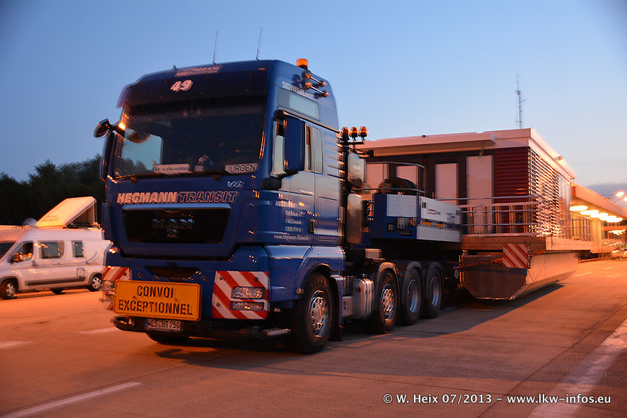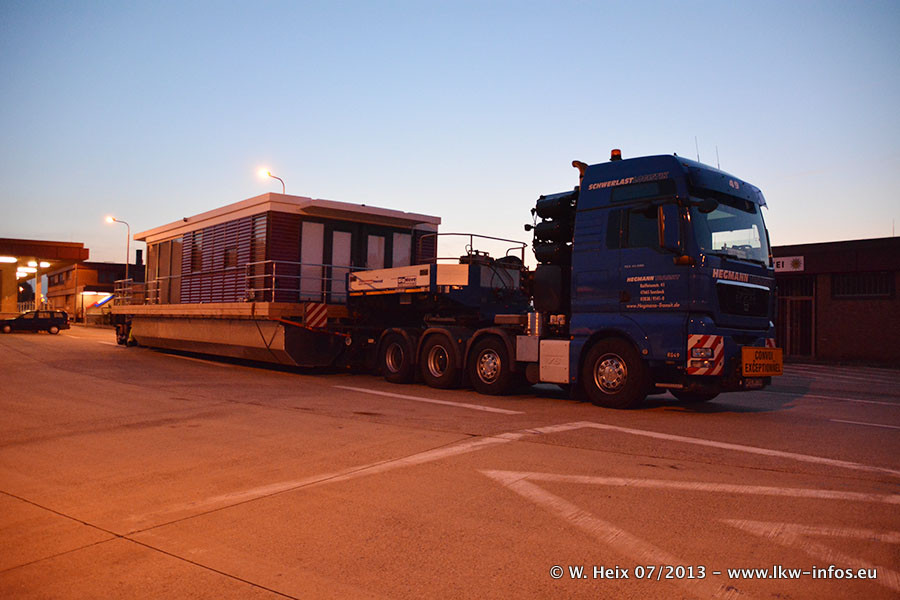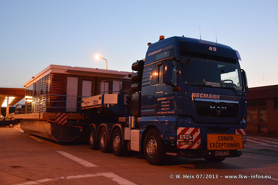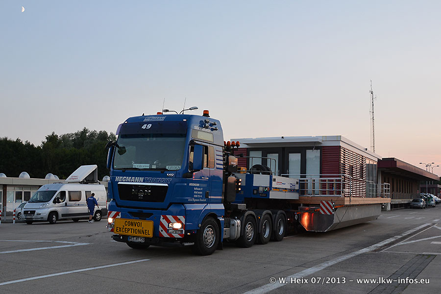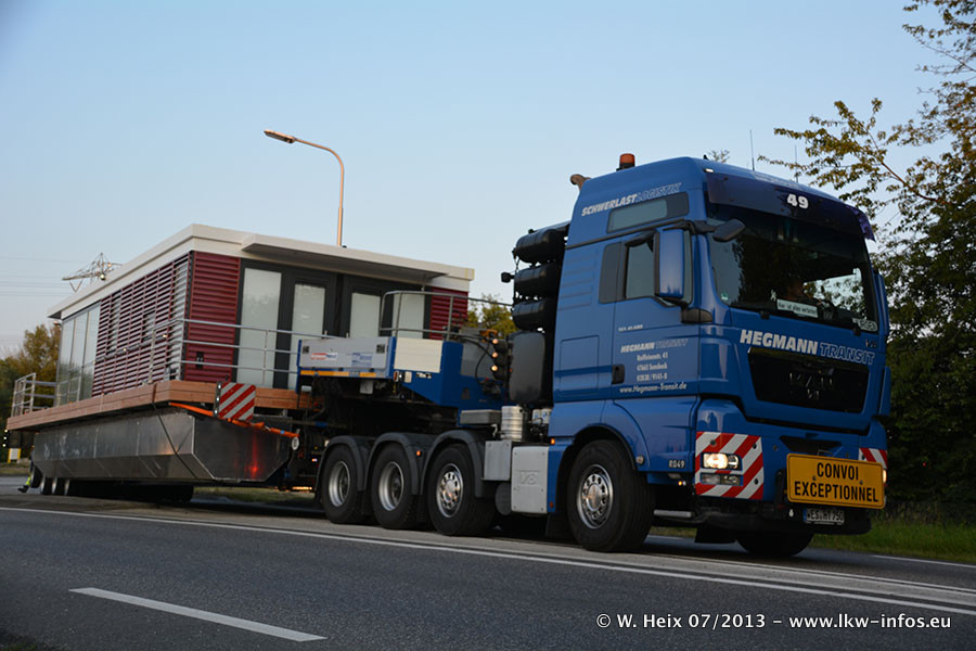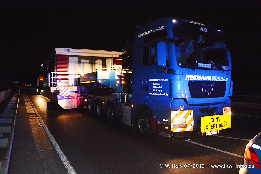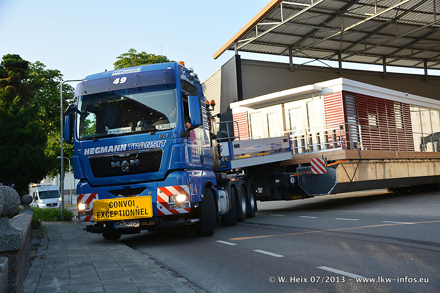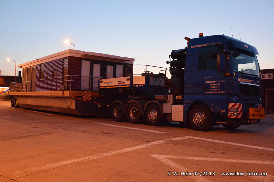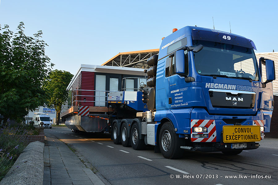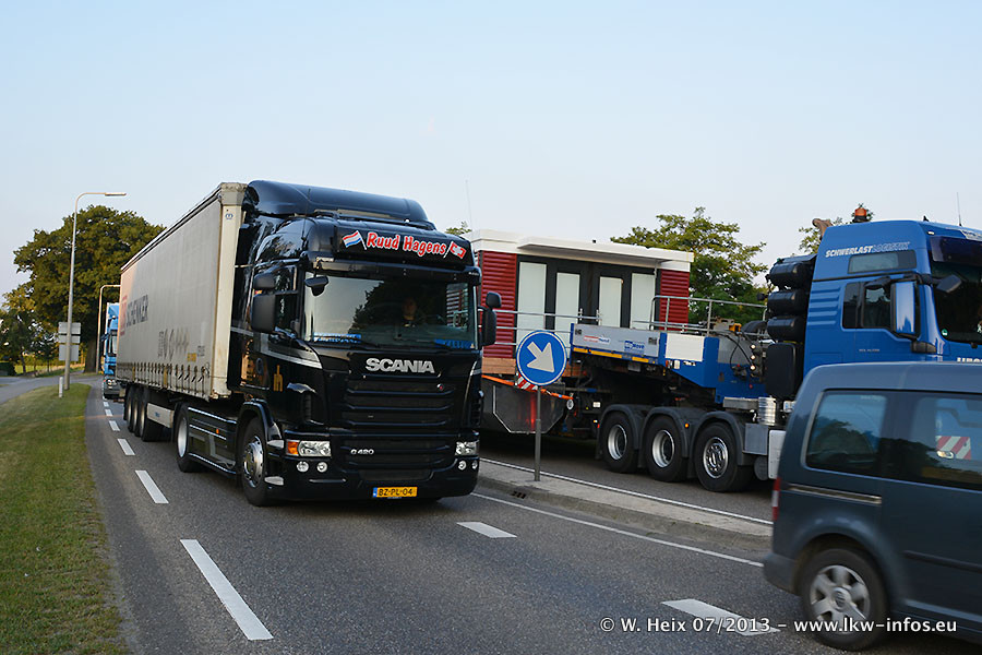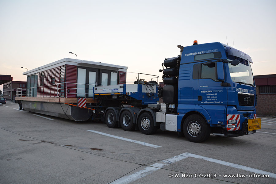 Hegmann Transit - 07/2013: Hausboot-Transport von Wanssum (NL) nach Xanten (D)