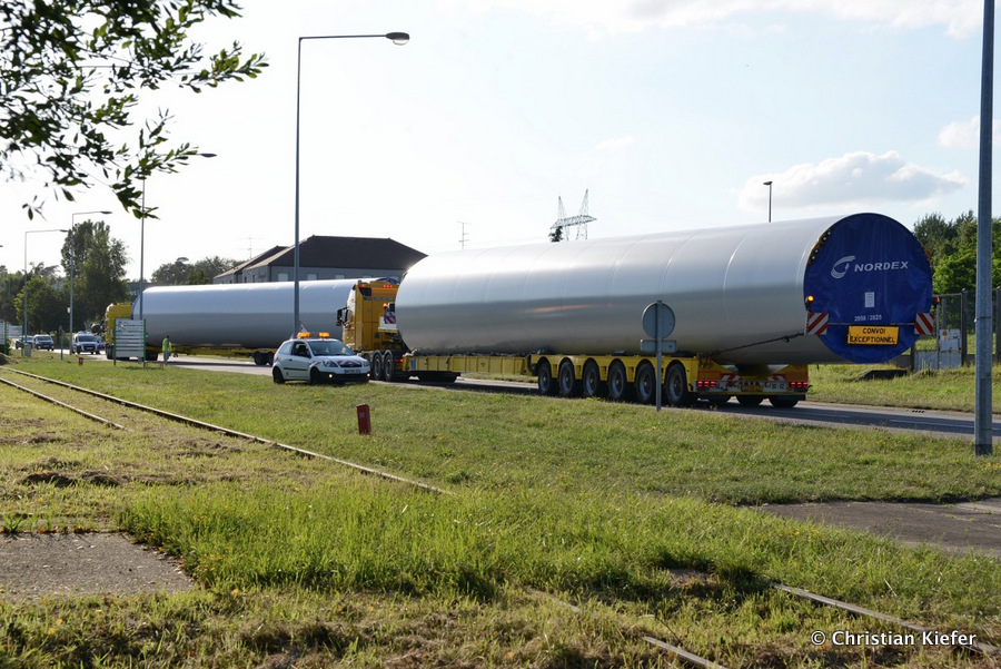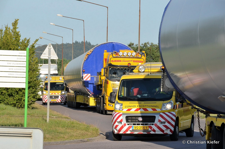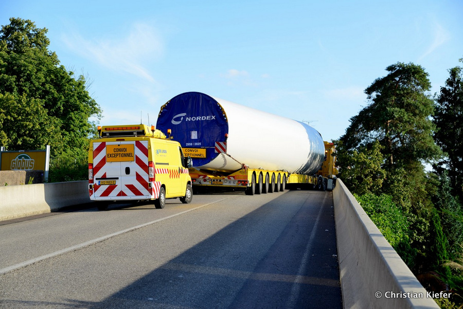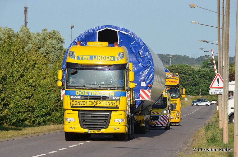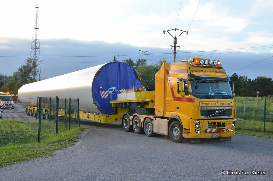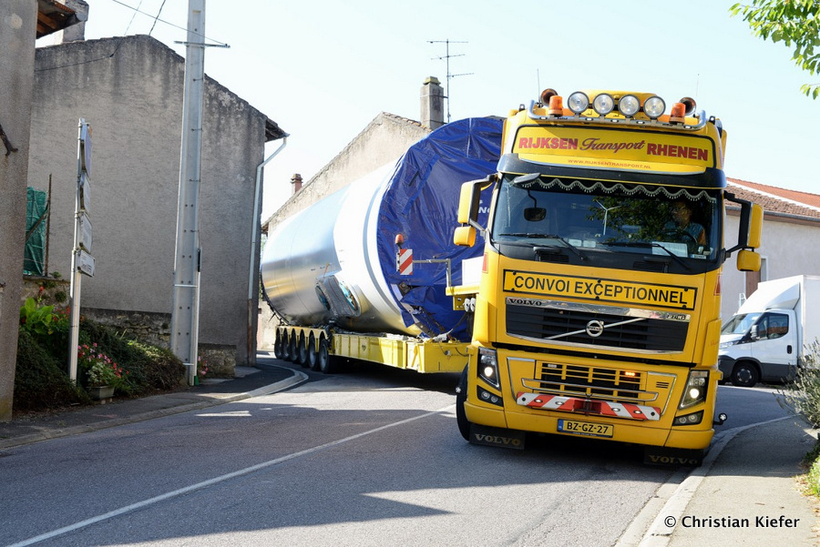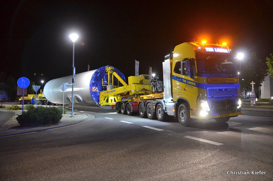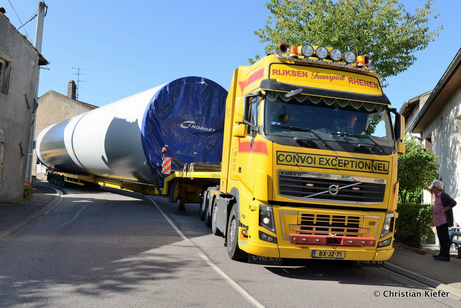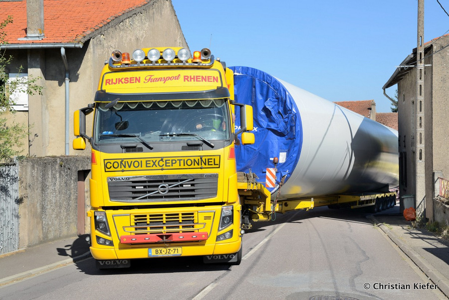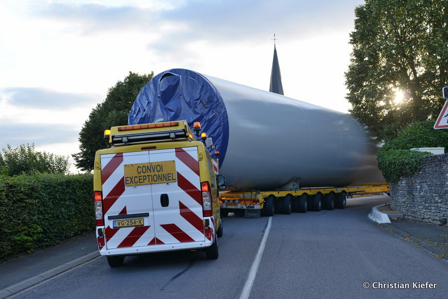 Im Frühjahr/Sommer waren die niederländischen Schwertransport-Spezialisten Rijksen und Ter Linden mit WKA-Teilen in Frankreich unterwegs.