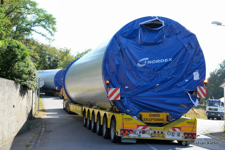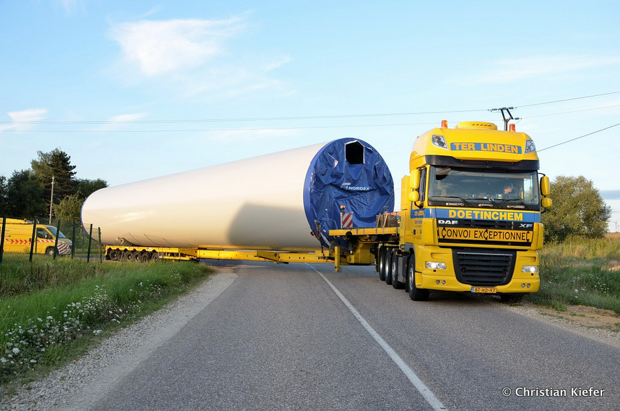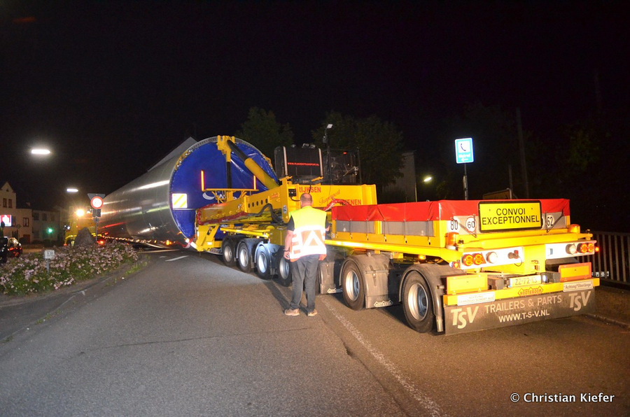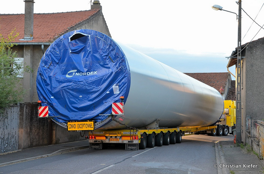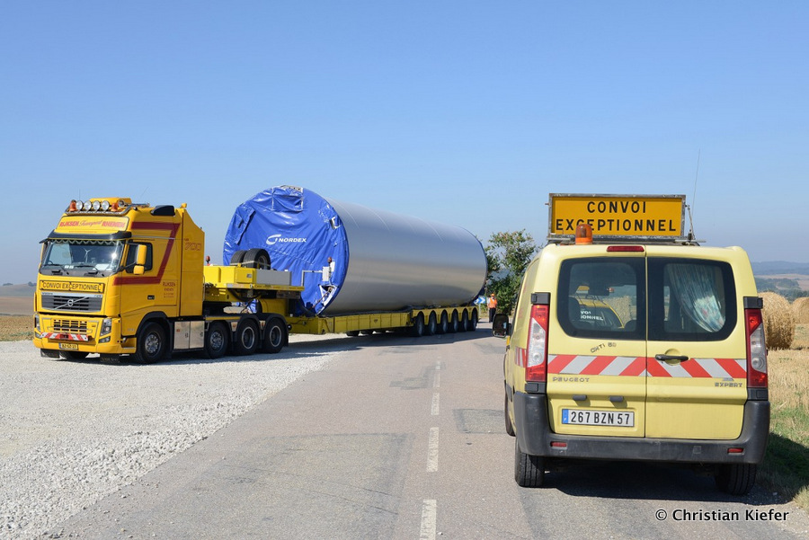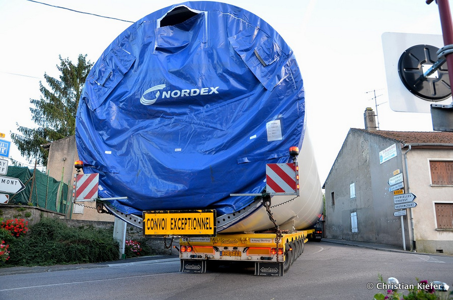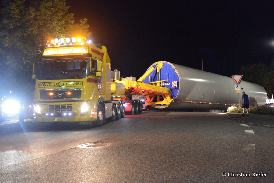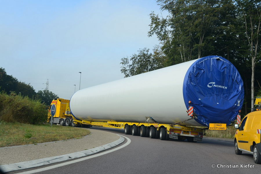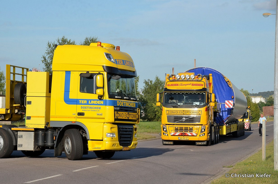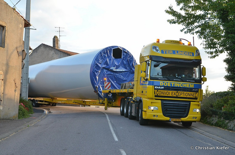 Im Frühjahr/Sommer waren die niederländischen Schwertransport-Spezialisten Rijksen und Ter Linden mit WKA-Teilen in Frankreich unterwegs.