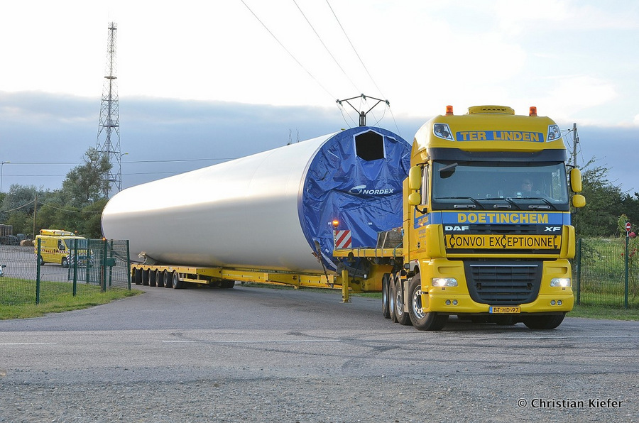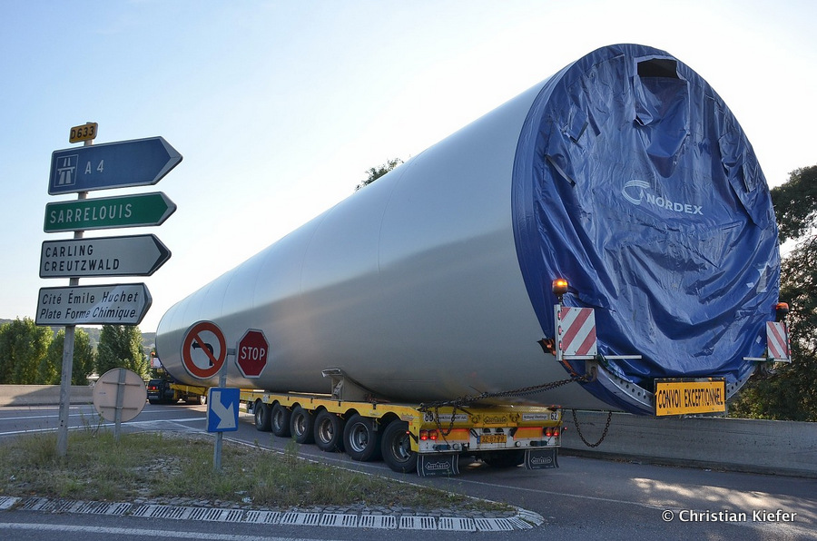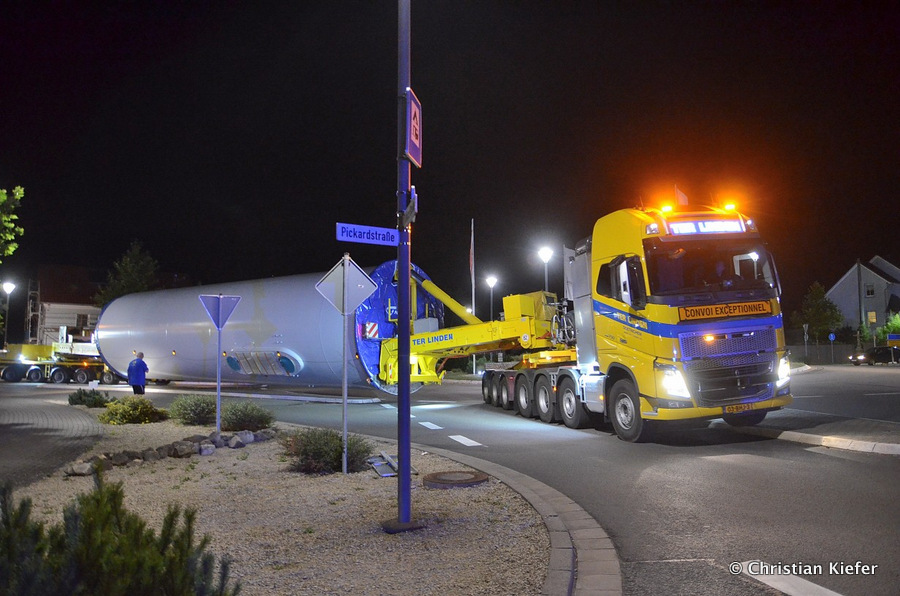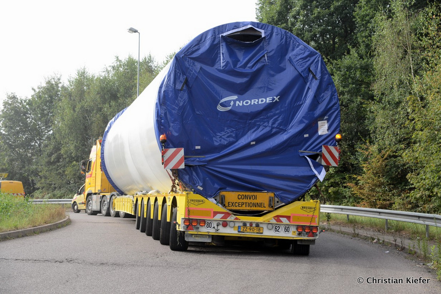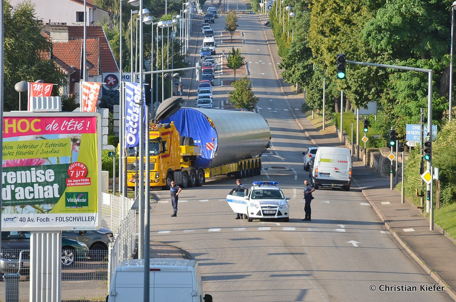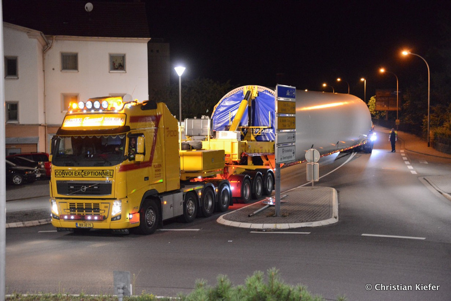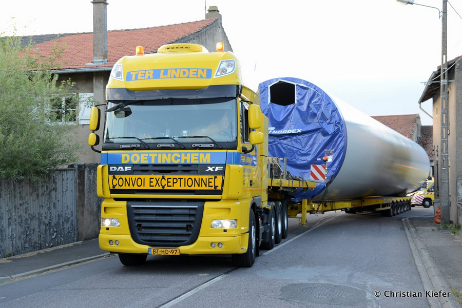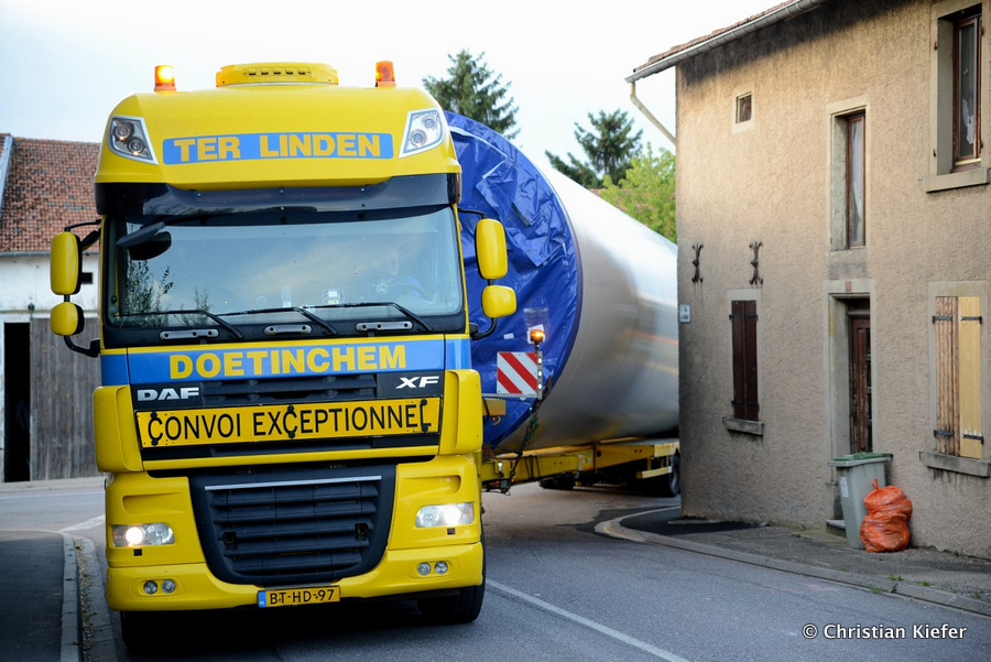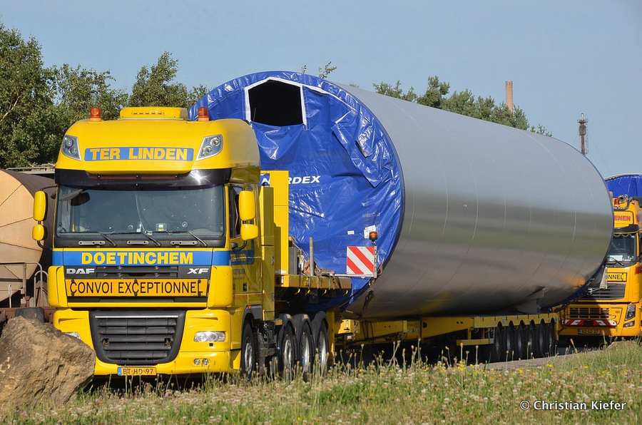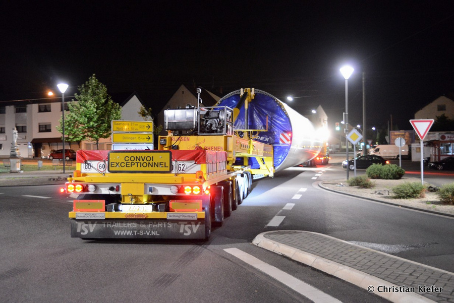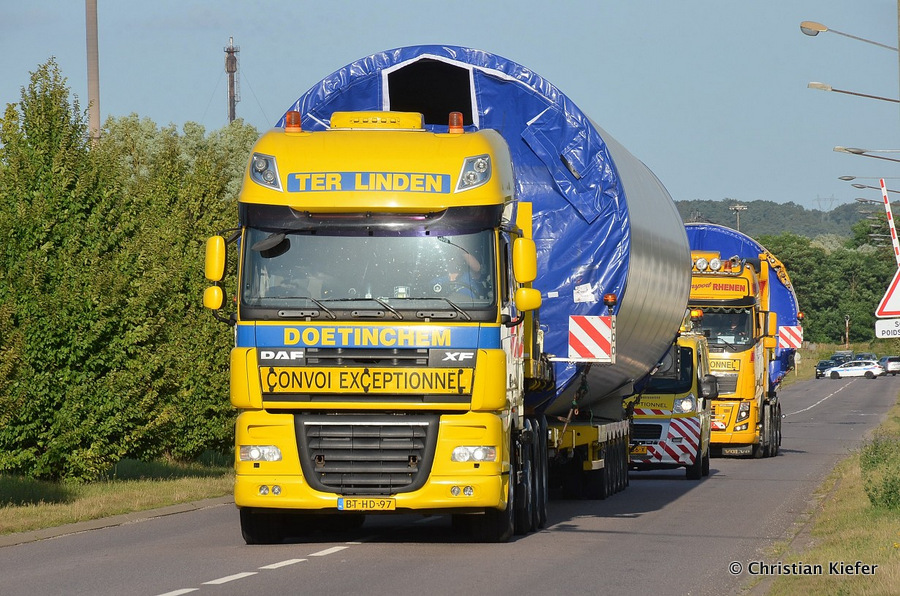 Im Frühjahr/Sommer waren die niederländischen Schwertransport-Spezialisten Rijksen und Ter Linden mit WKA-Teilen in Frankreich unterwegs.
