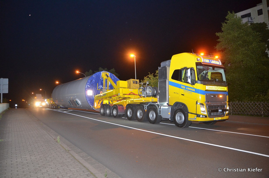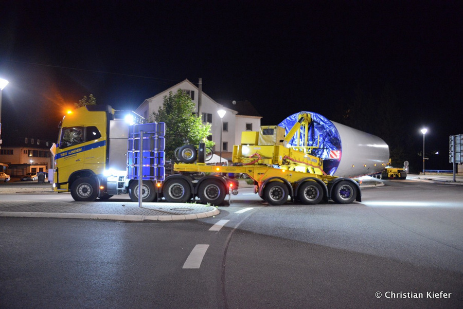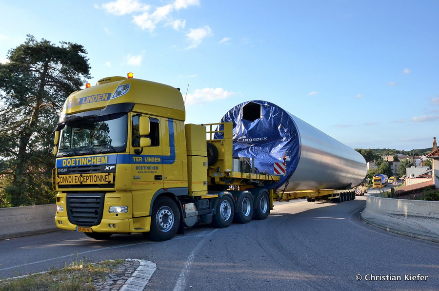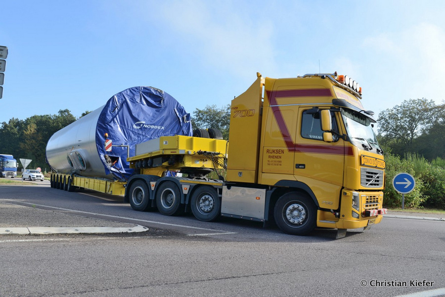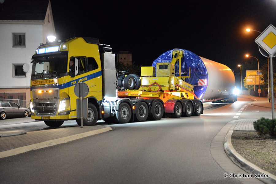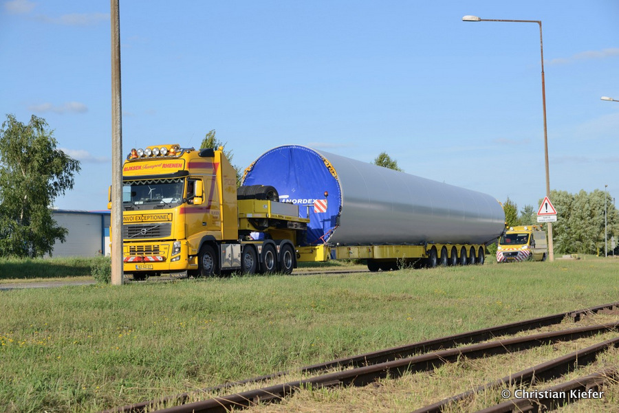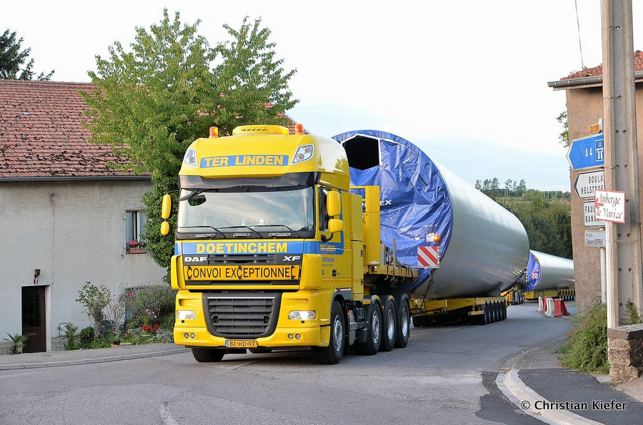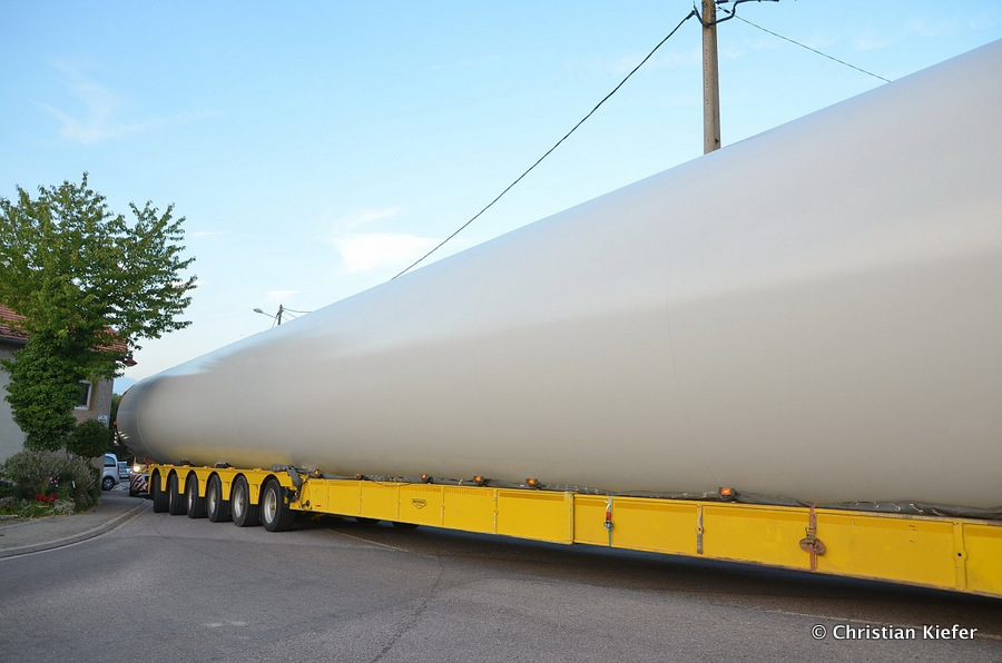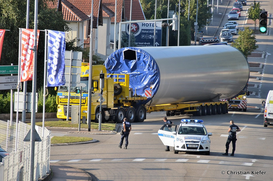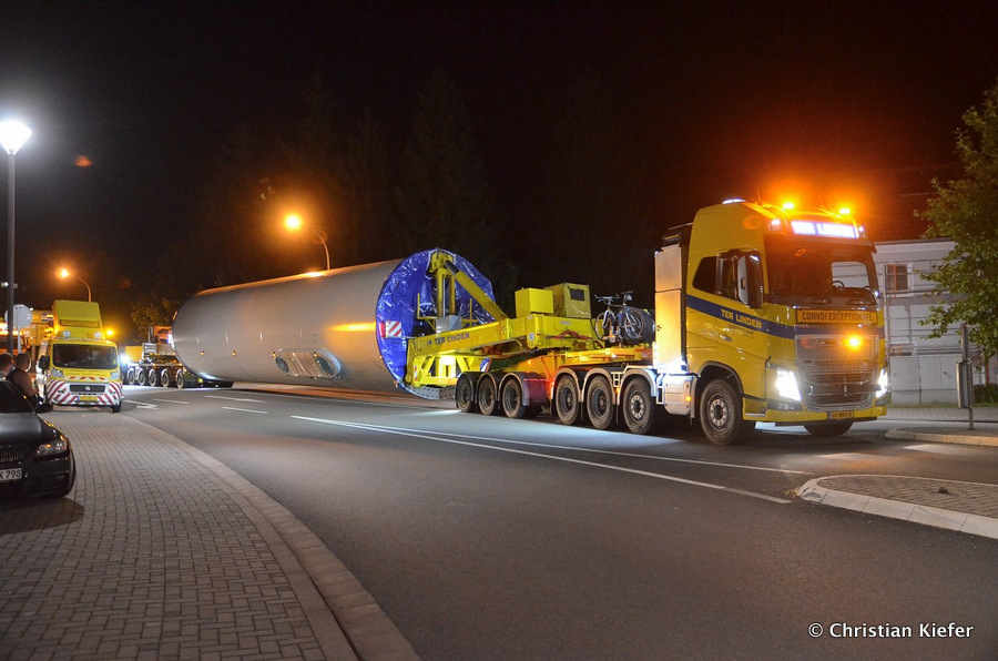 Im Frühjahr/Sommer waren die niederländischen Schwertransport-Spezialisten Rijksen und Ter Linden mit WKA-Teilen in Frankreich unterwegs.