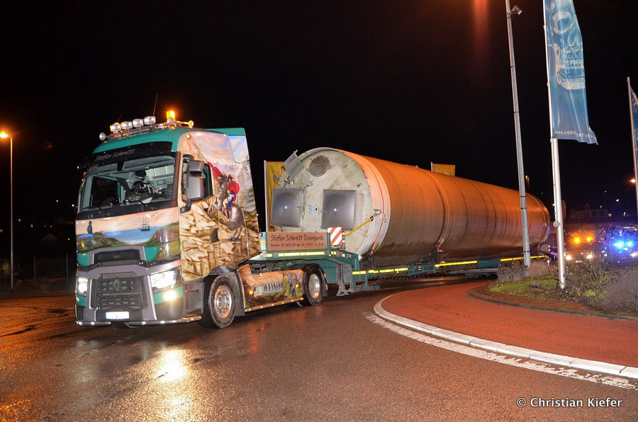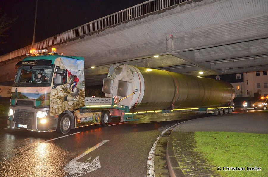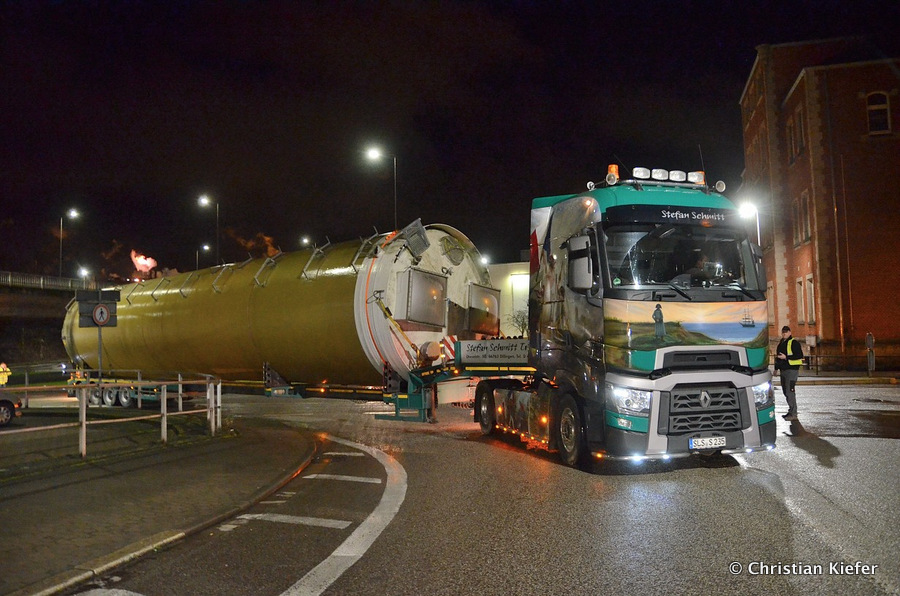 Christian Kiefer hat die beiden nächtlichen Transporte begleitet und die hier gezeigten Bilder gemacht.
