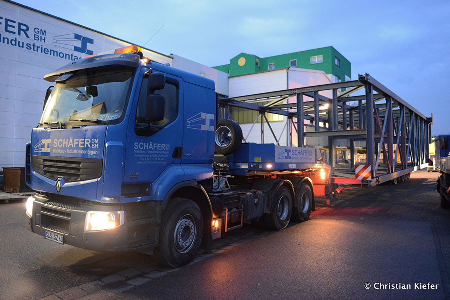 Schmitt, Schäfer, Mayer: Transport von Rohrbrückenteilen für die Dillinger Hütte