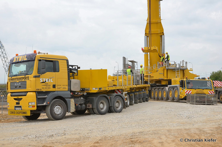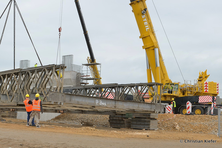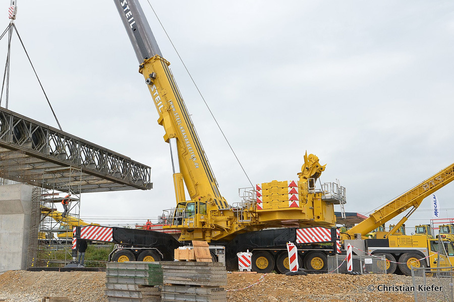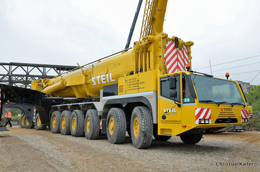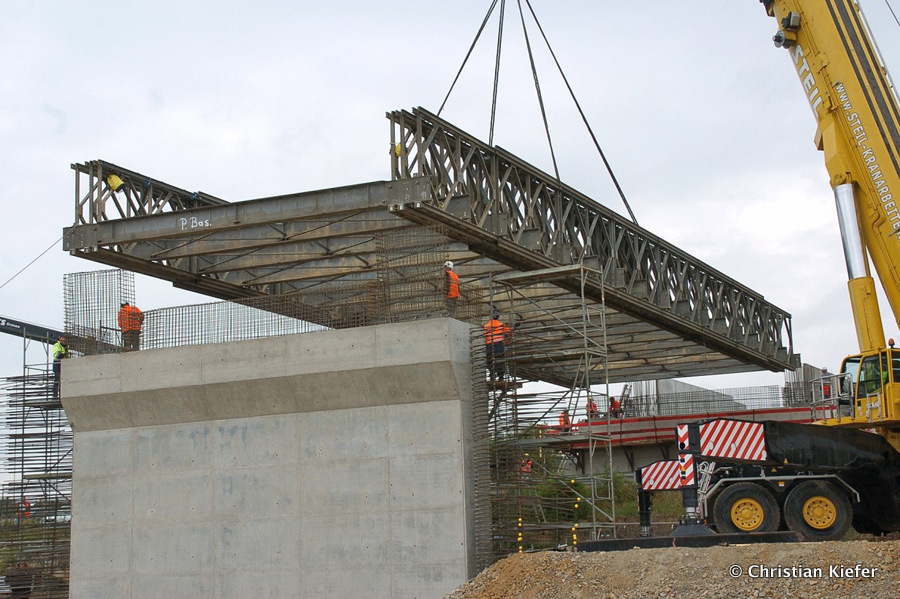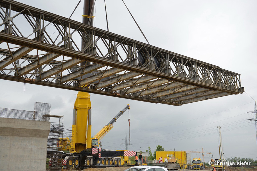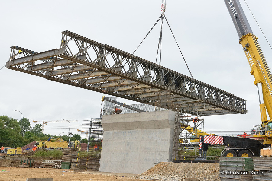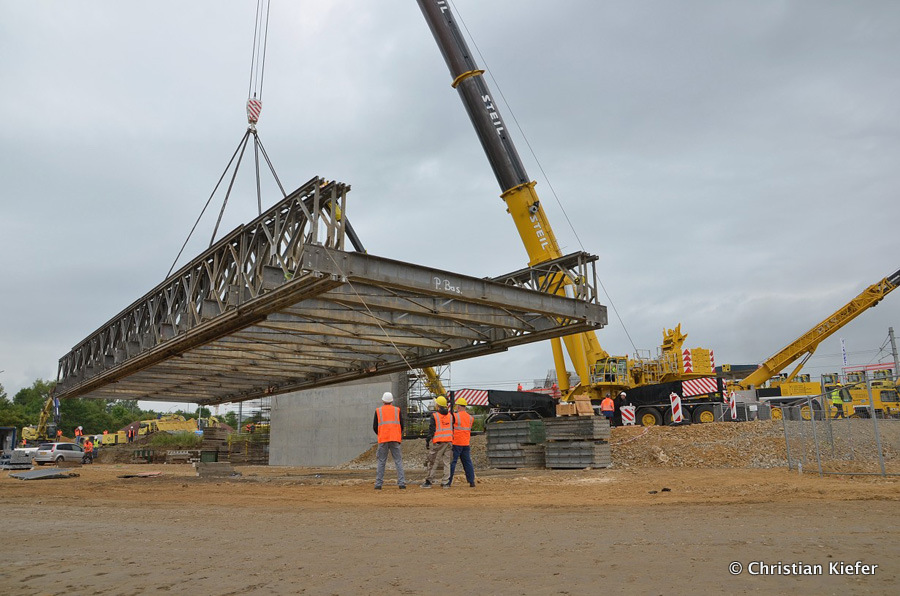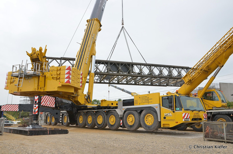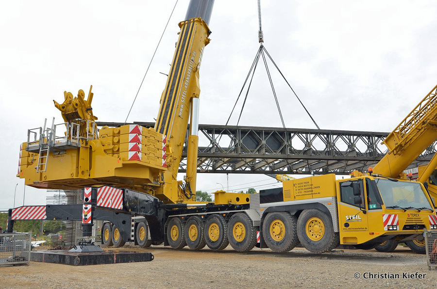 Christian Kiefer konnte in Juni 2014 in Dudelange (Luxemburg) den Brückenhub beobachten und fotografieren, mit dem die Firma Steil beauftragt wurde.