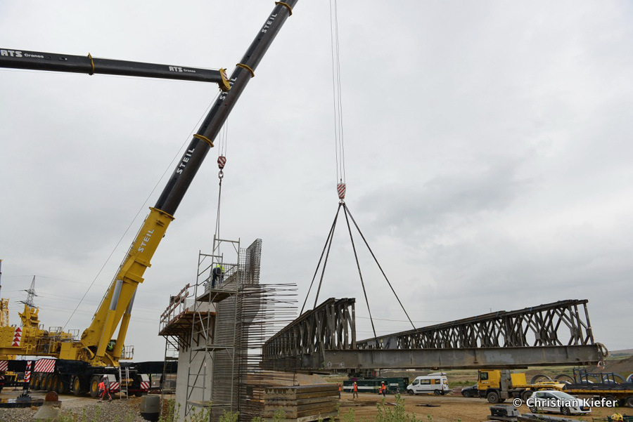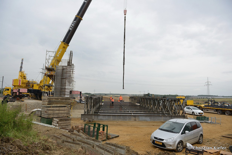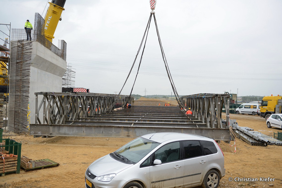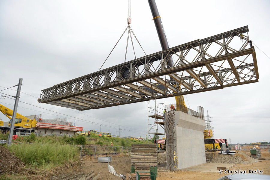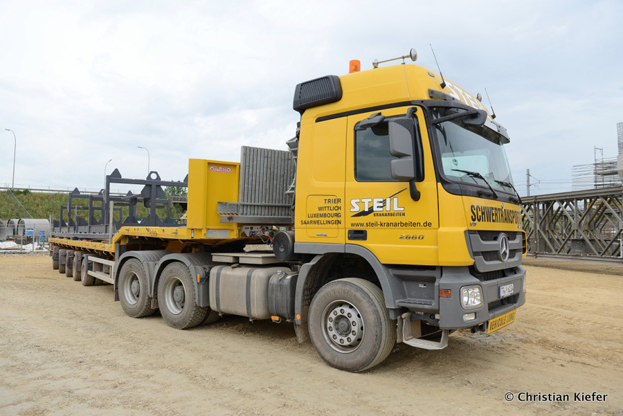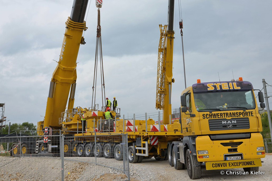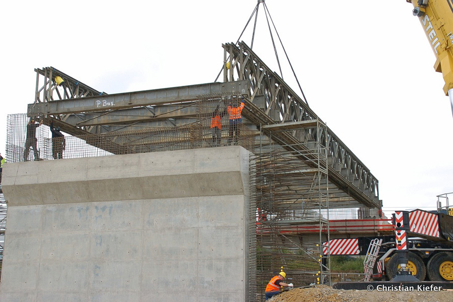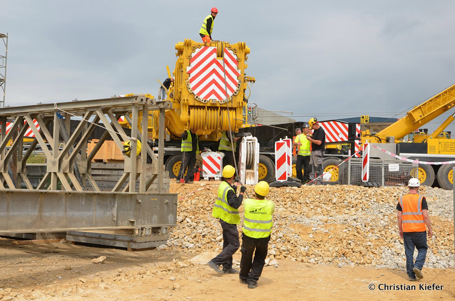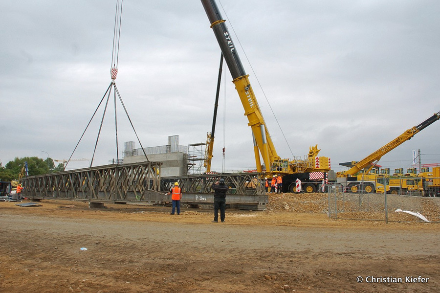 Christian Kiefer konnte in Juni 2014 in Dudelange (Luxemburg) den Brückenhub beobachten und fotografieren, mit dem die Firma Steil beauftragt wurde.