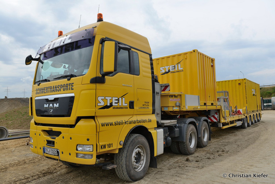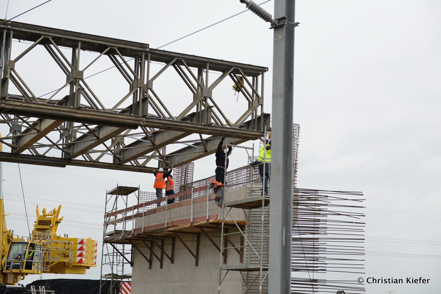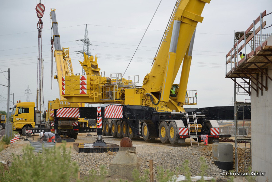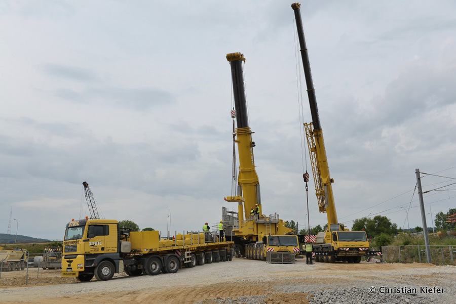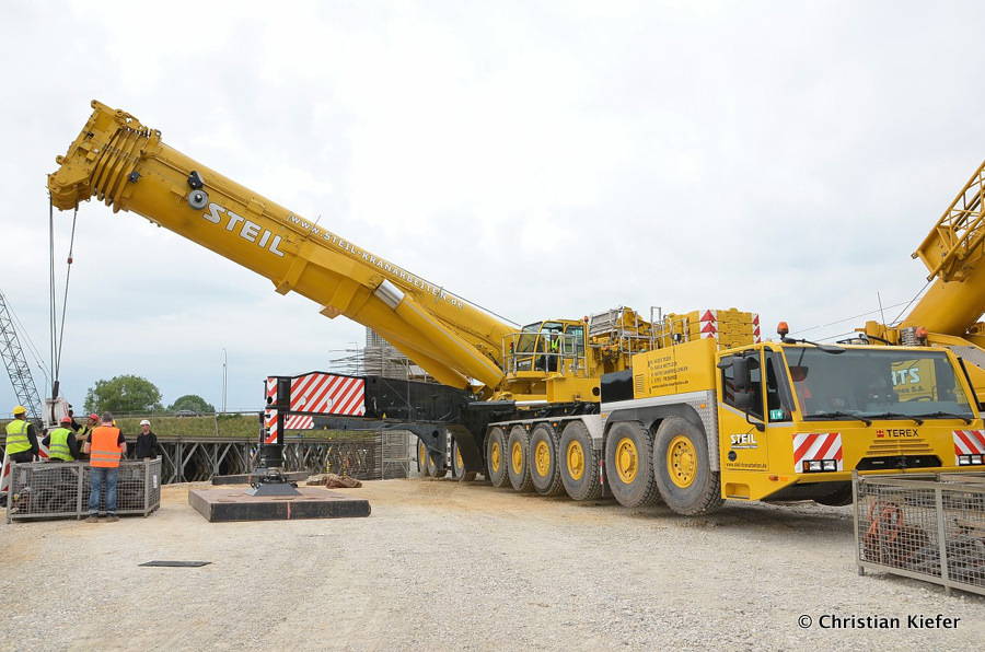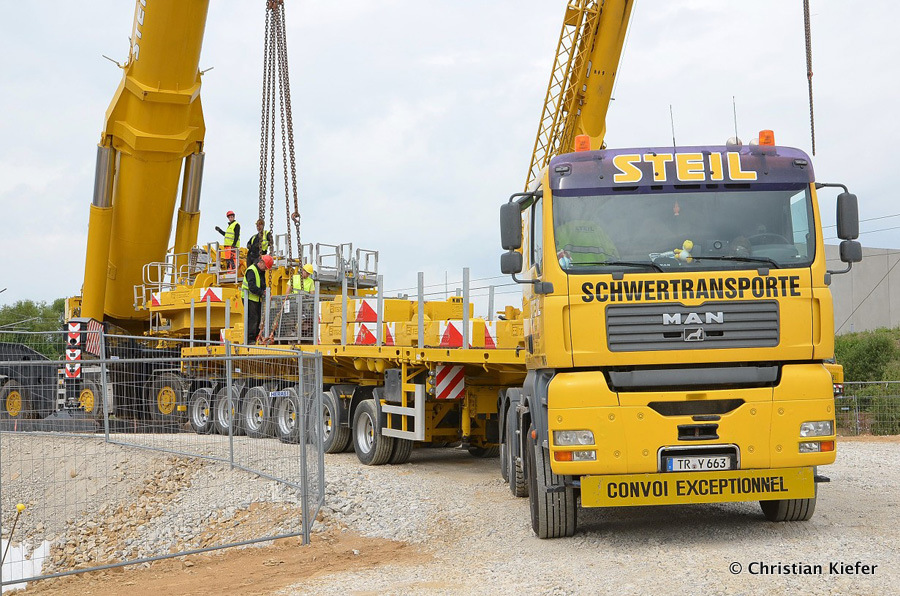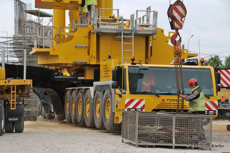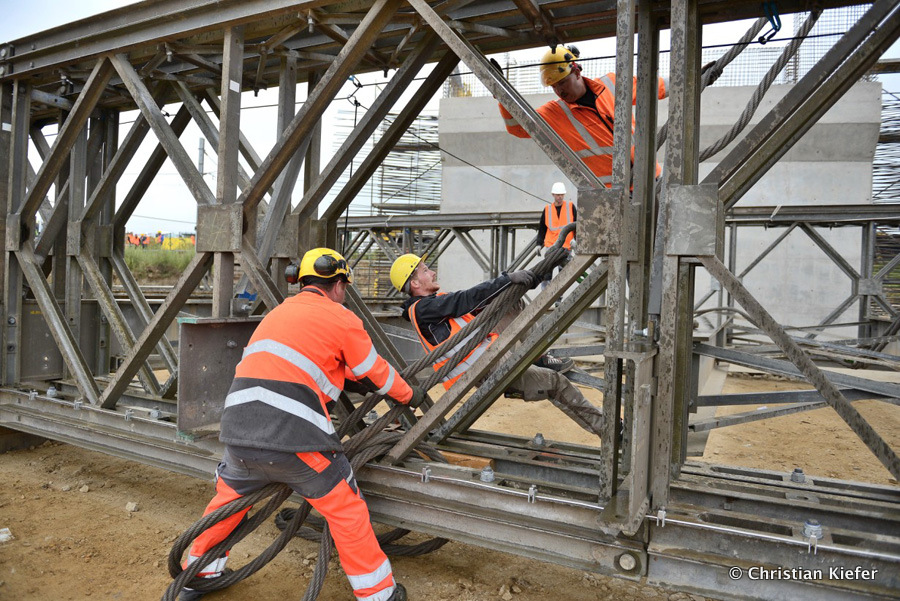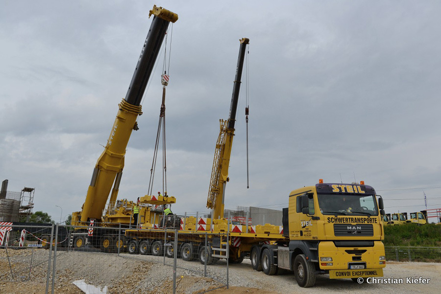 Christian Kiefer konnte in Juni 2014 in Dudelange (Luxemburg) den Brückenhub beobachten und fotografieren, mit dem die Firma Steil beauftragt wurde.