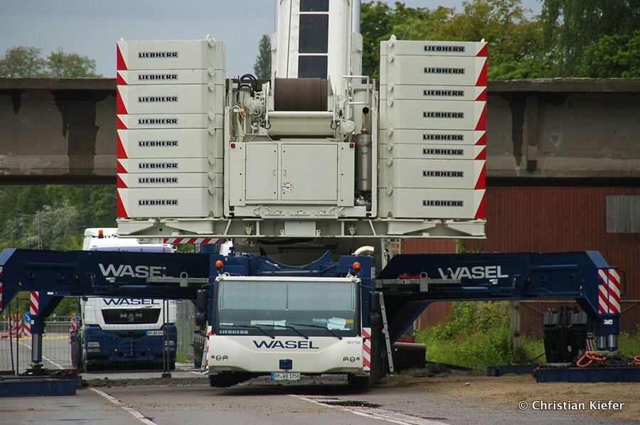 Wasel - 05/2013: Der neue Liebherr LTM 1750-9.1 beim Brückenabriss