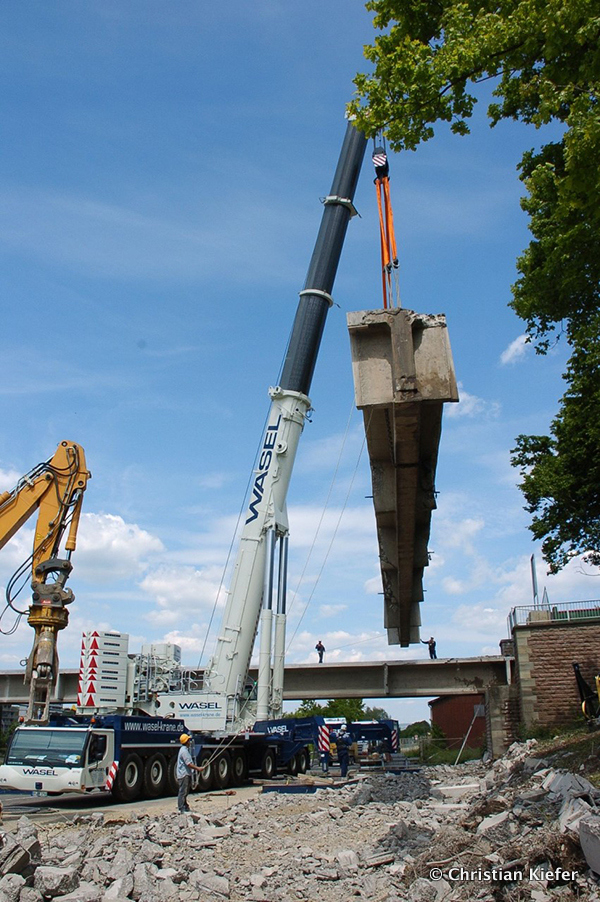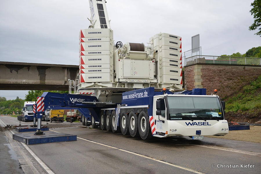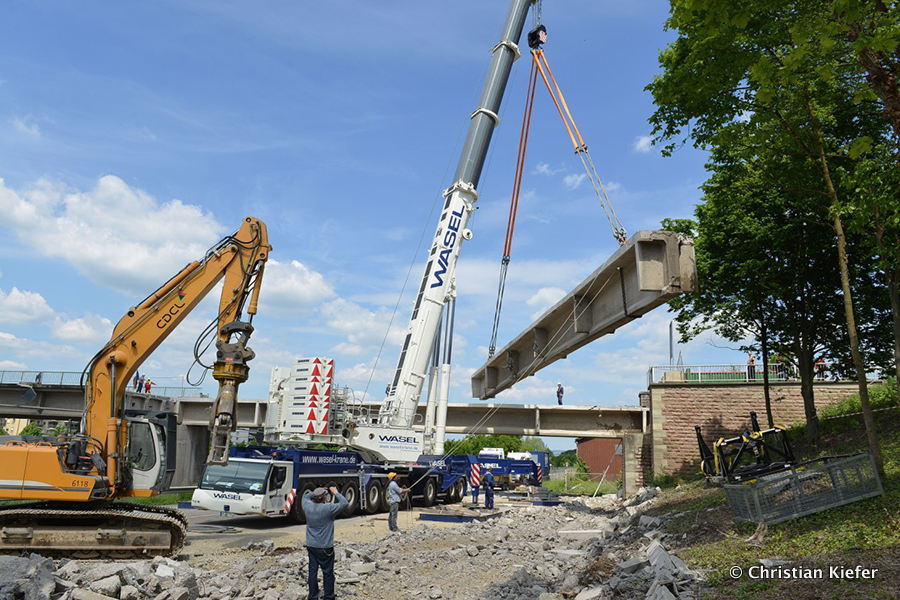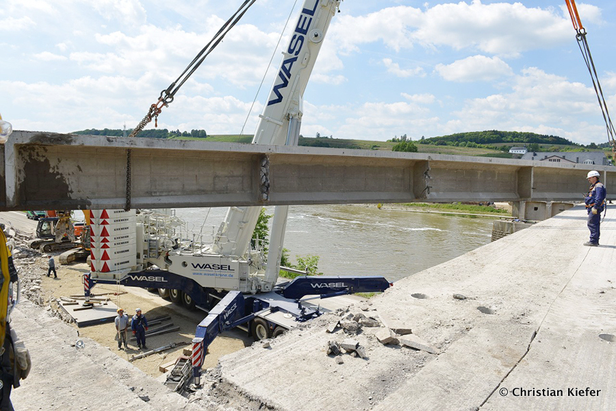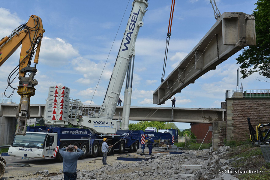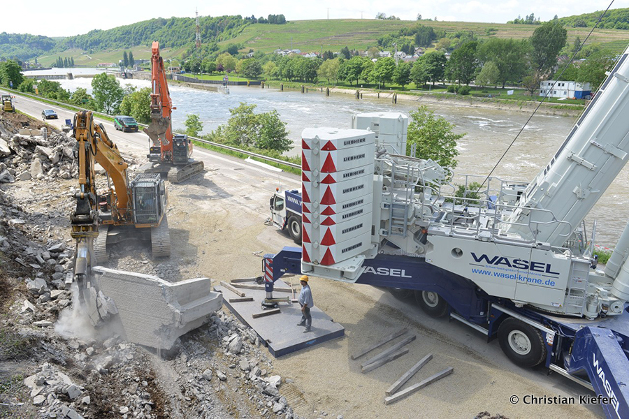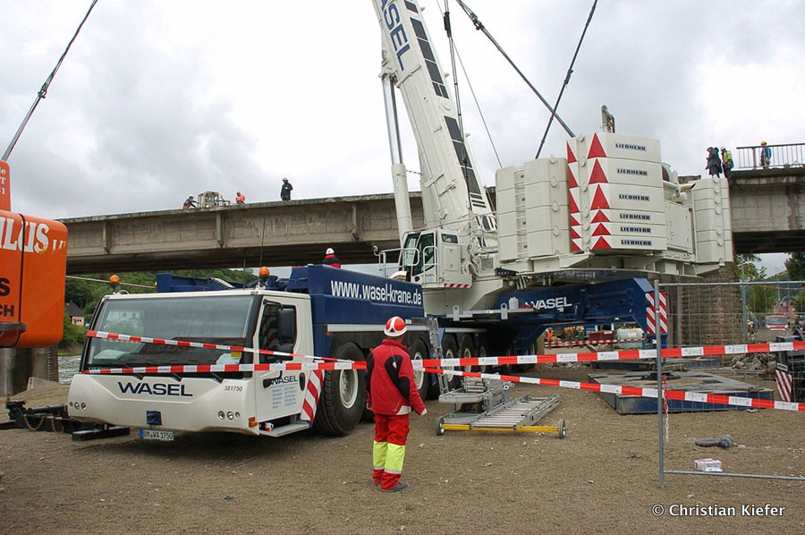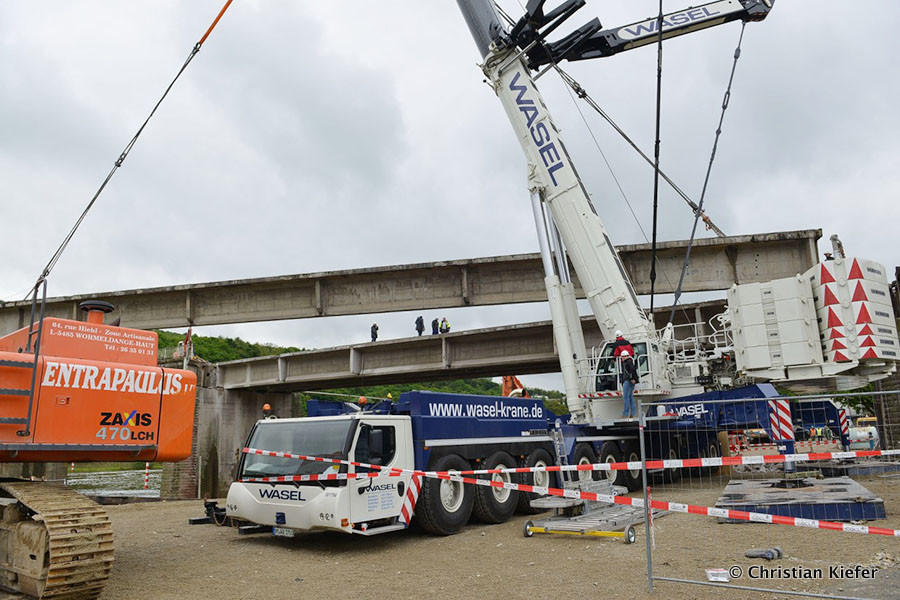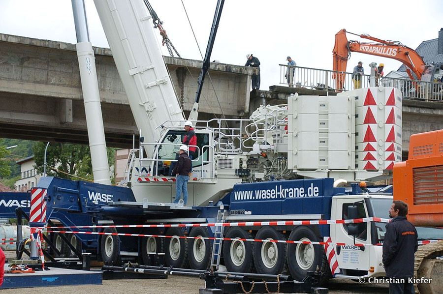 Wasel: Einsatz des neuen Liebherr LTM 1750-9.1 beim Brückenabriss