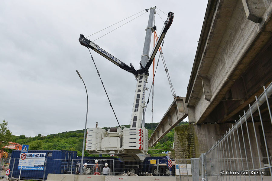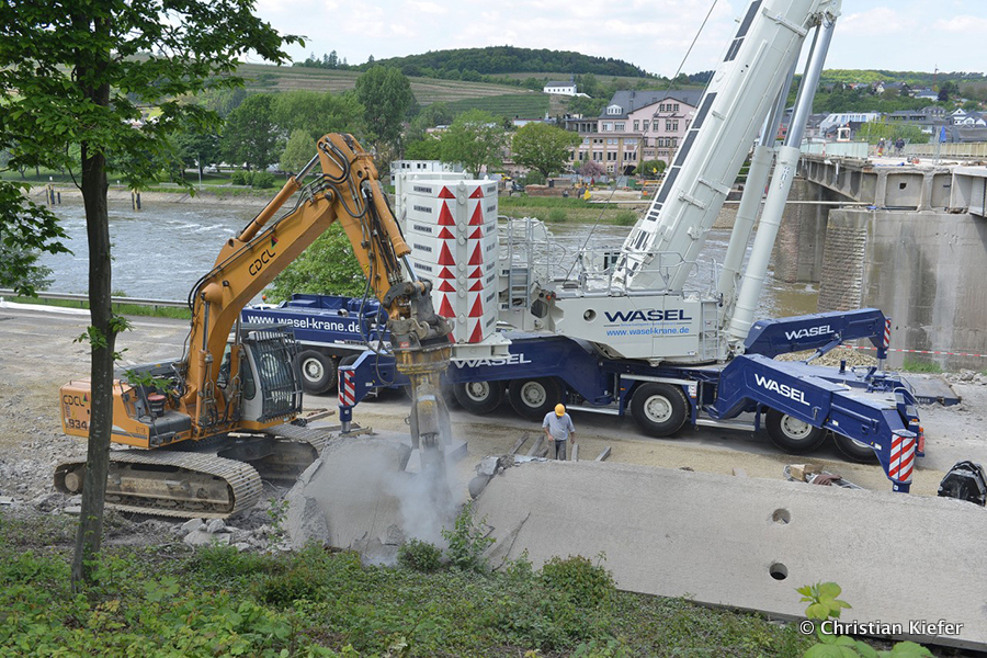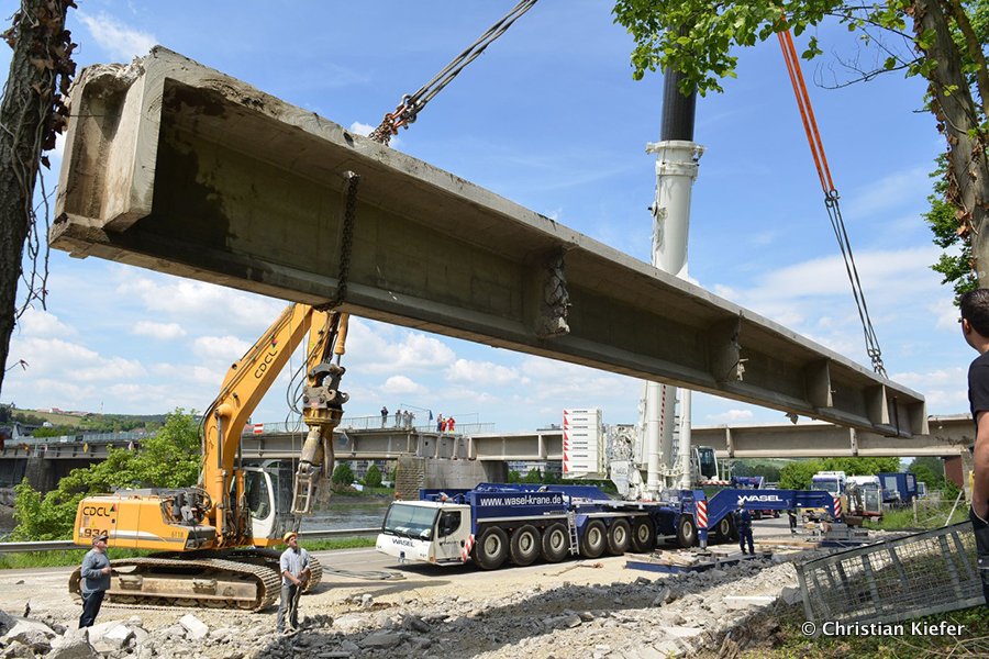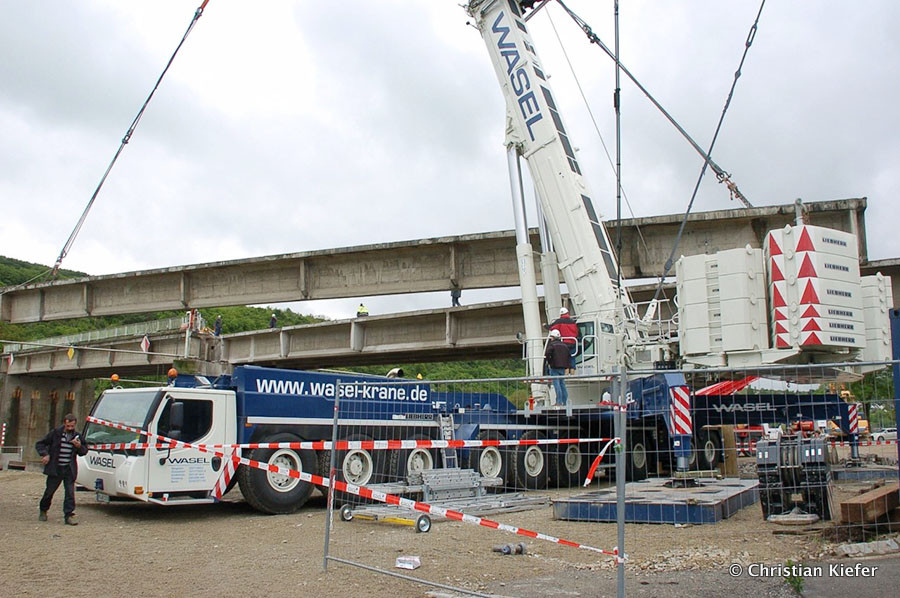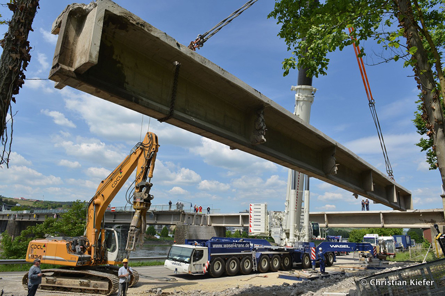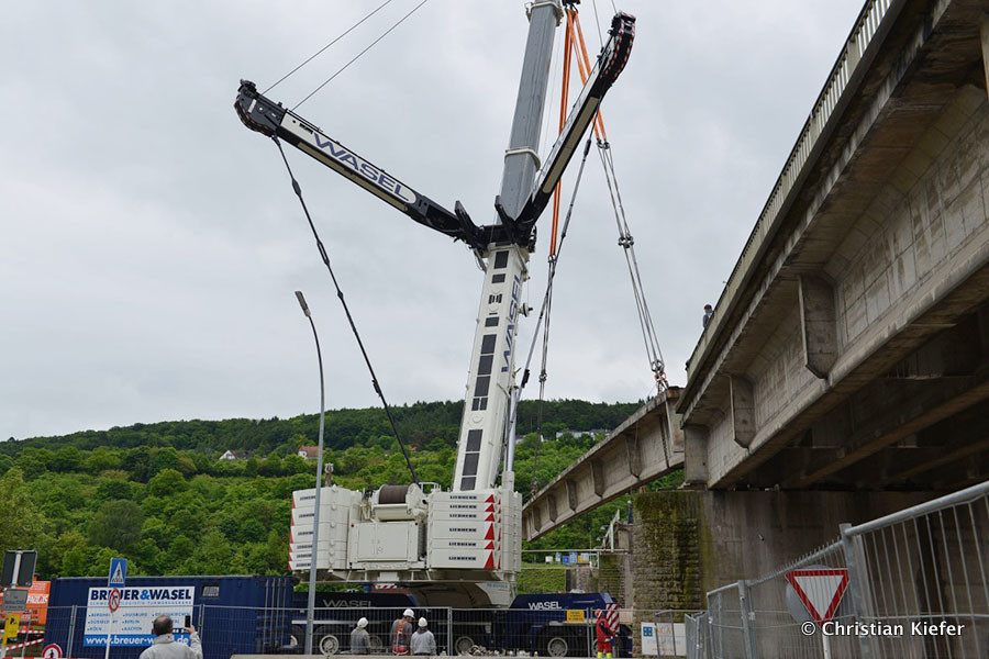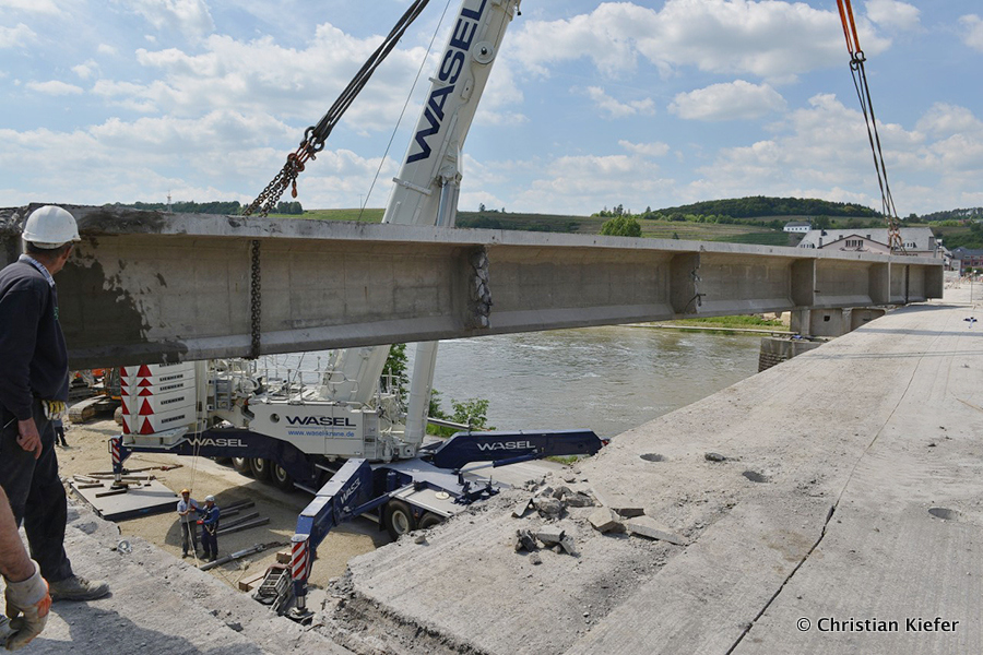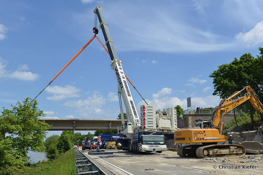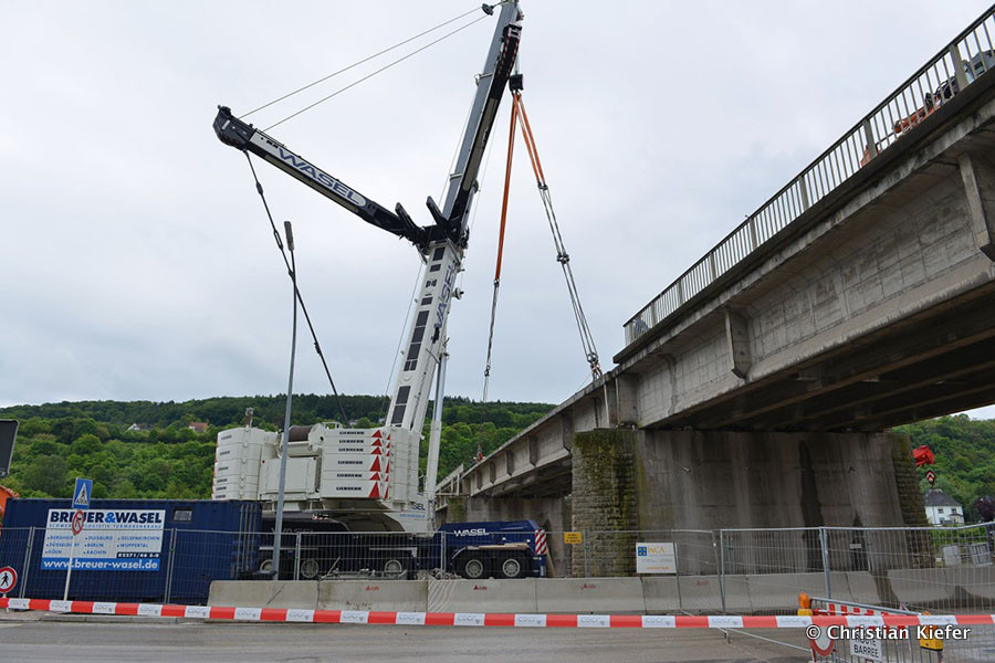Wasel: Einsatz des neuen Liebherr LTM 1750-9.1 beim Brückenabriss