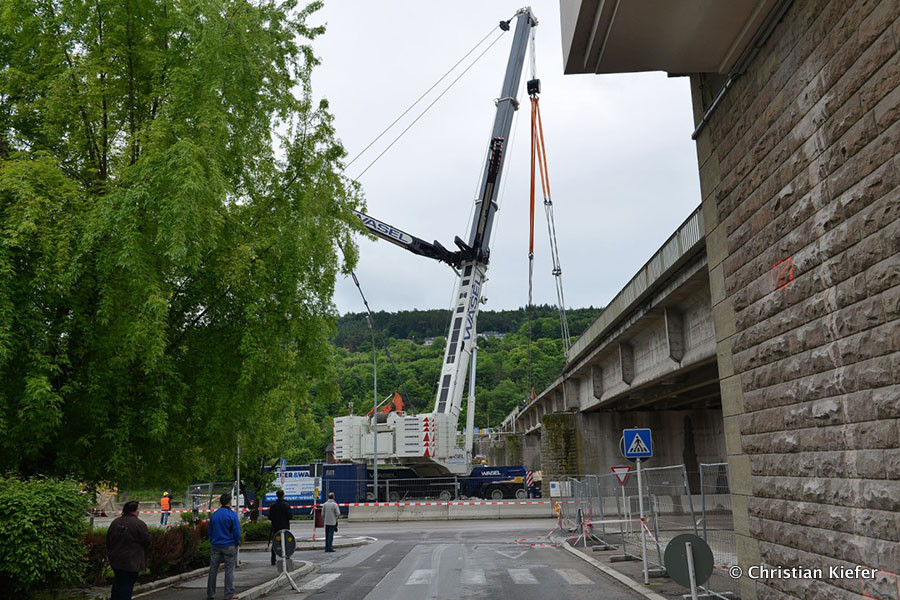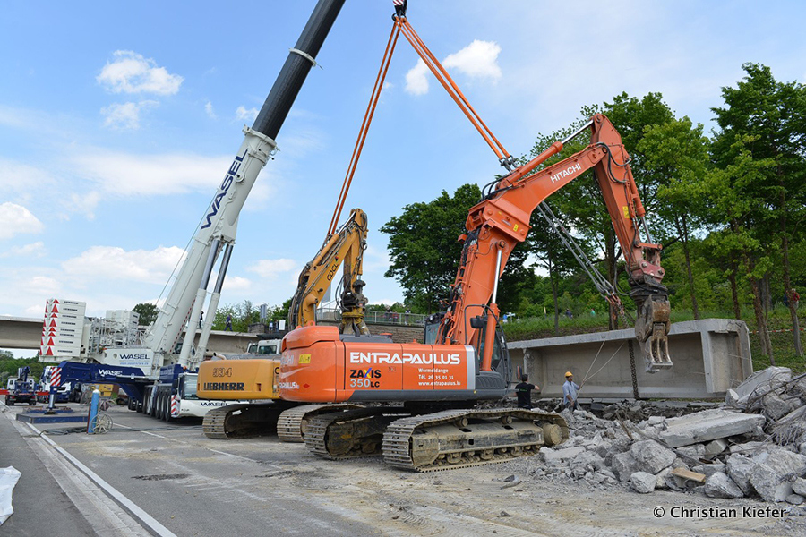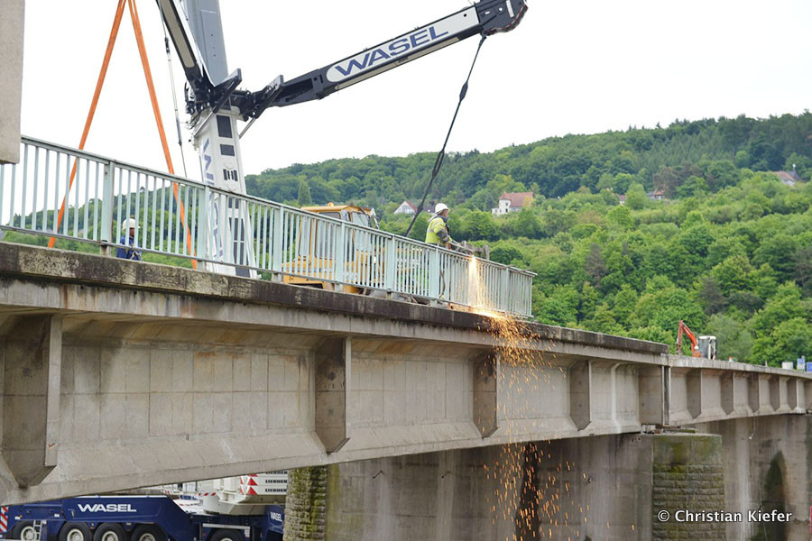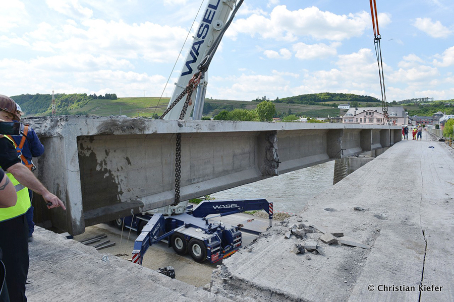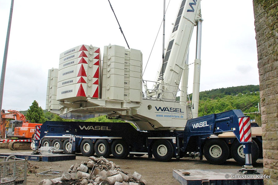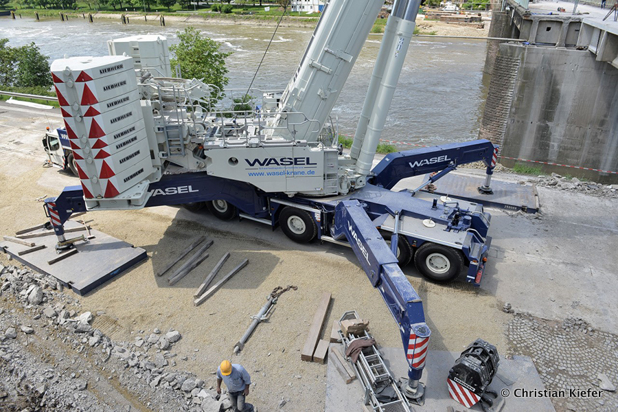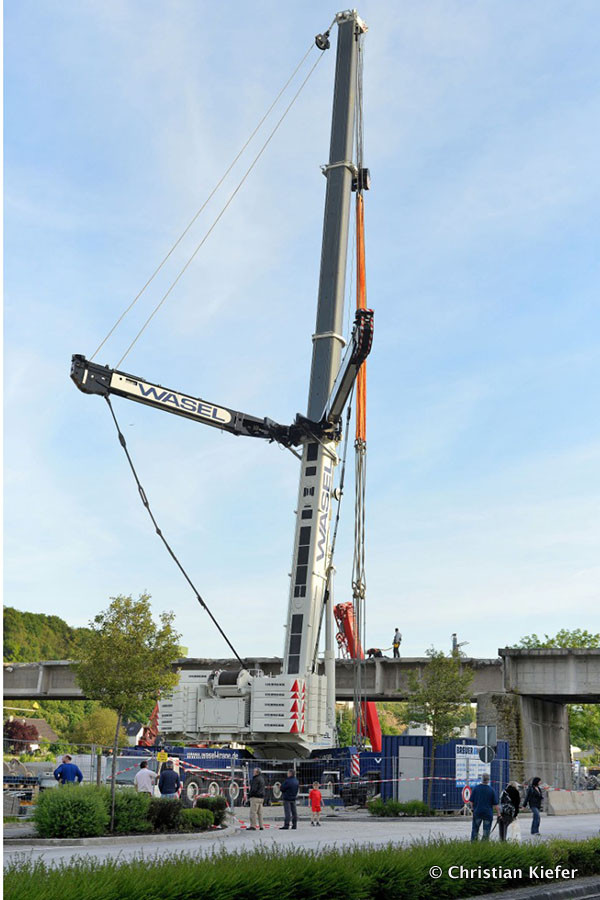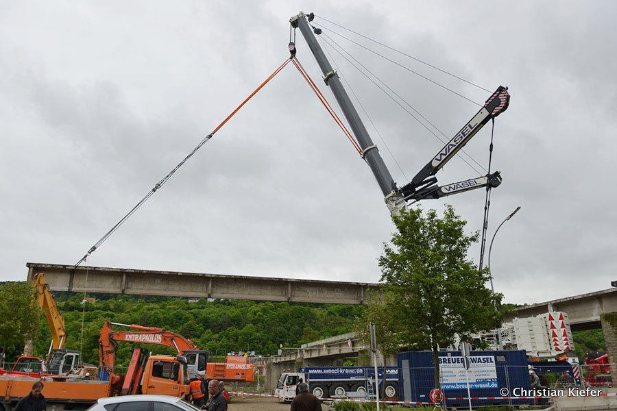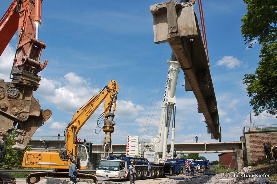 Wasel: Einsatz des neuen Liebherr LTM 1750-9.1 beim Brückenabriss