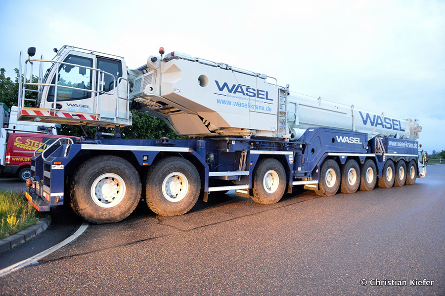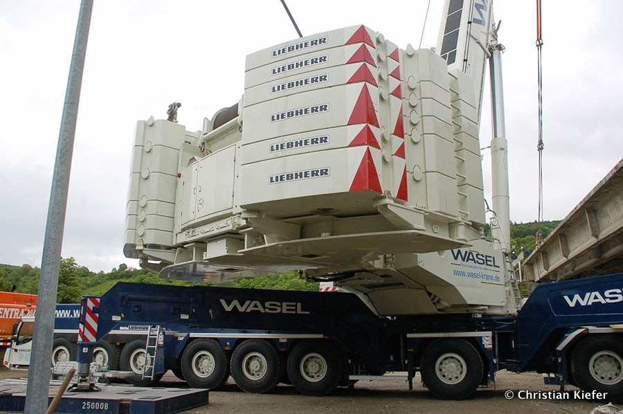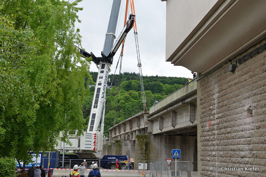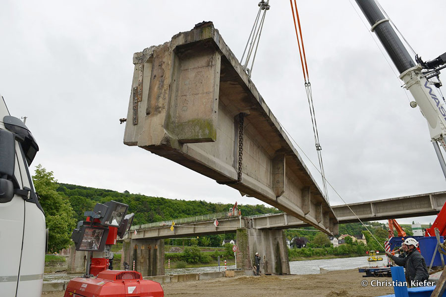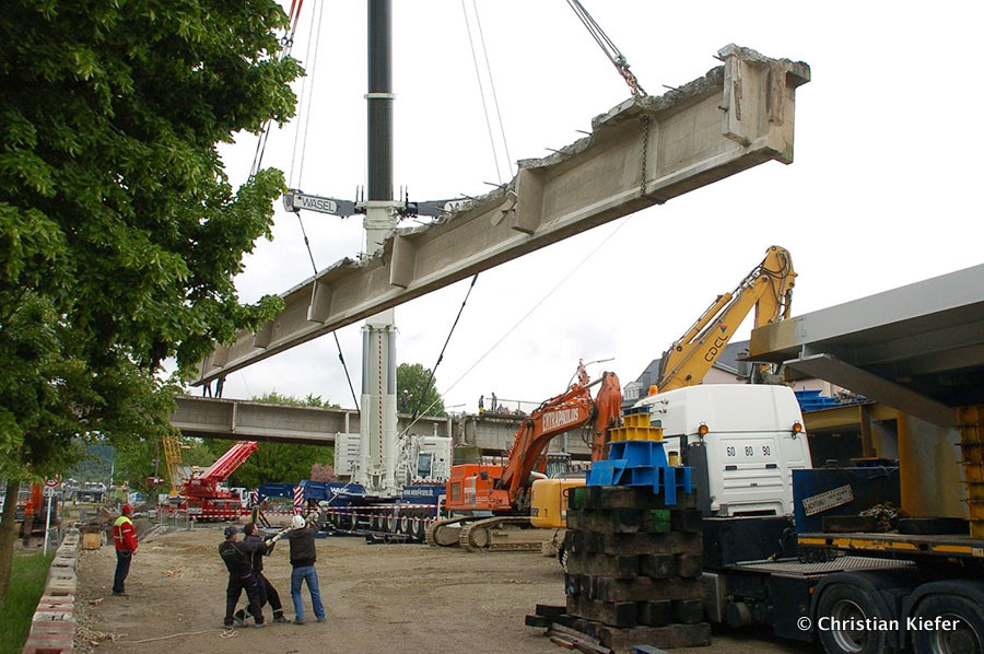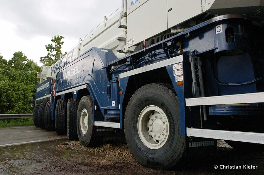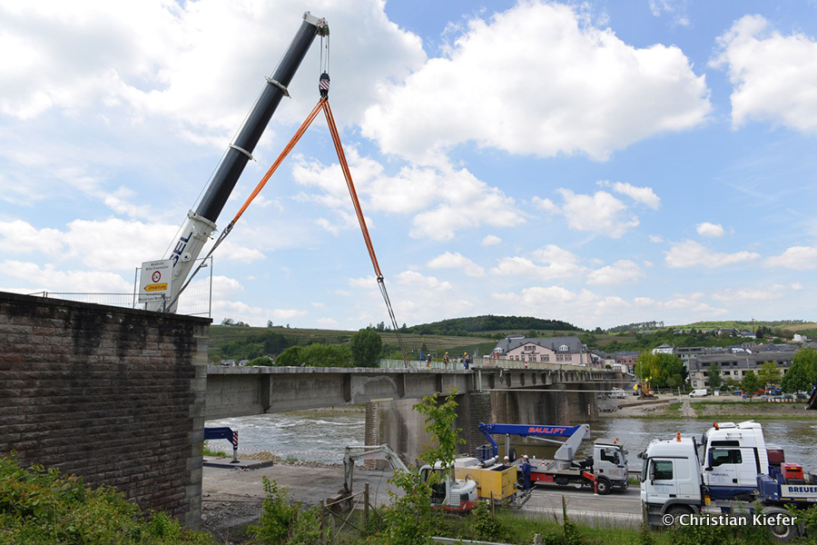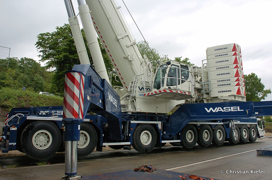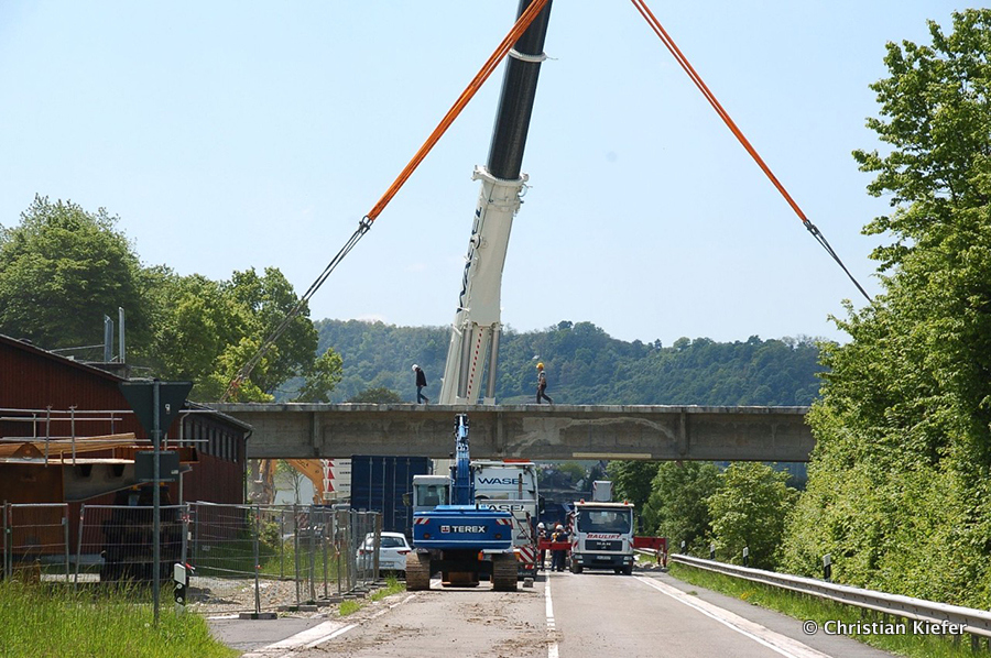 Wasel: Einsatz des neuen Liebherr LTM 1750-9.1 beim Brückenabriss