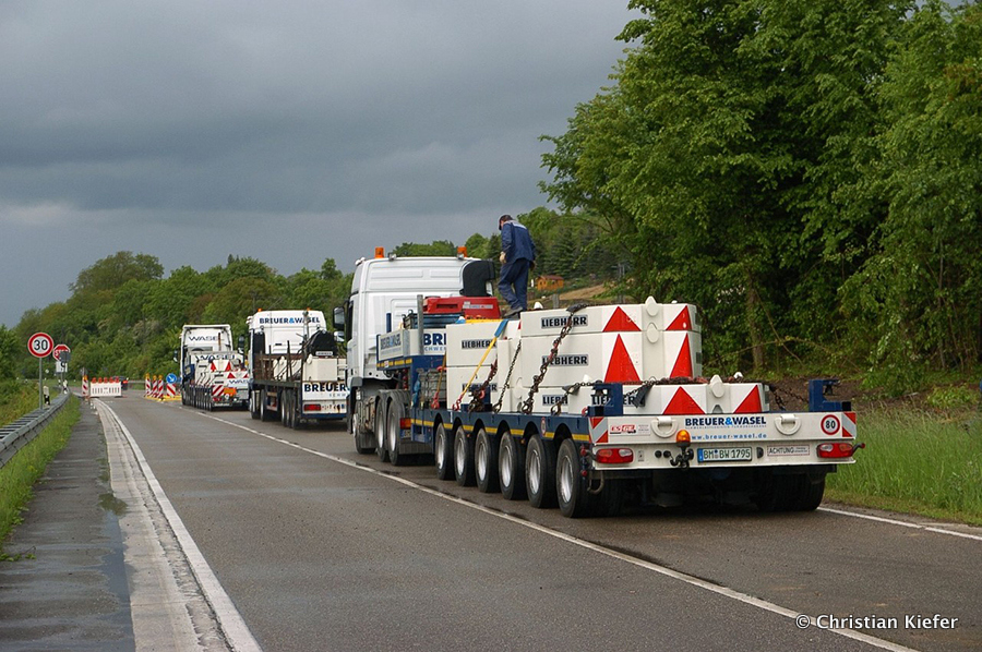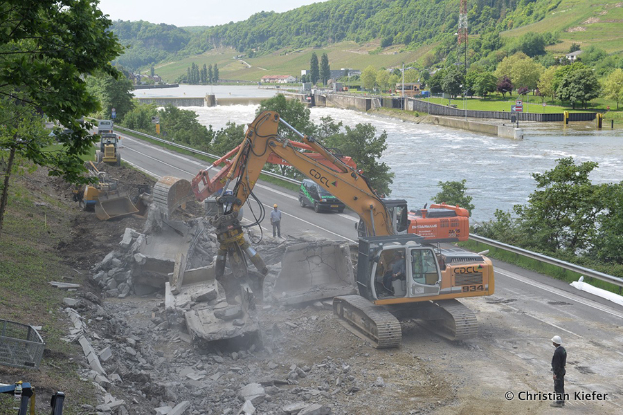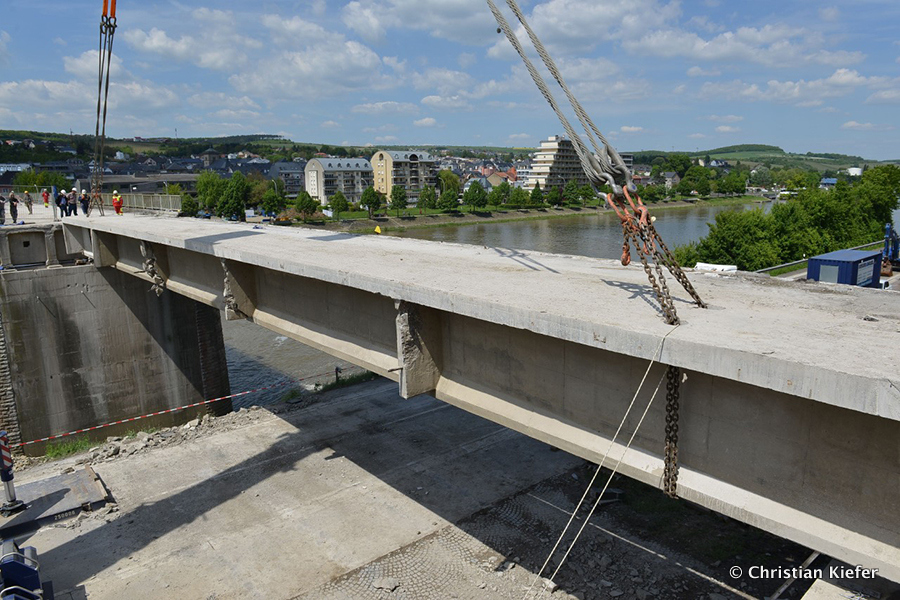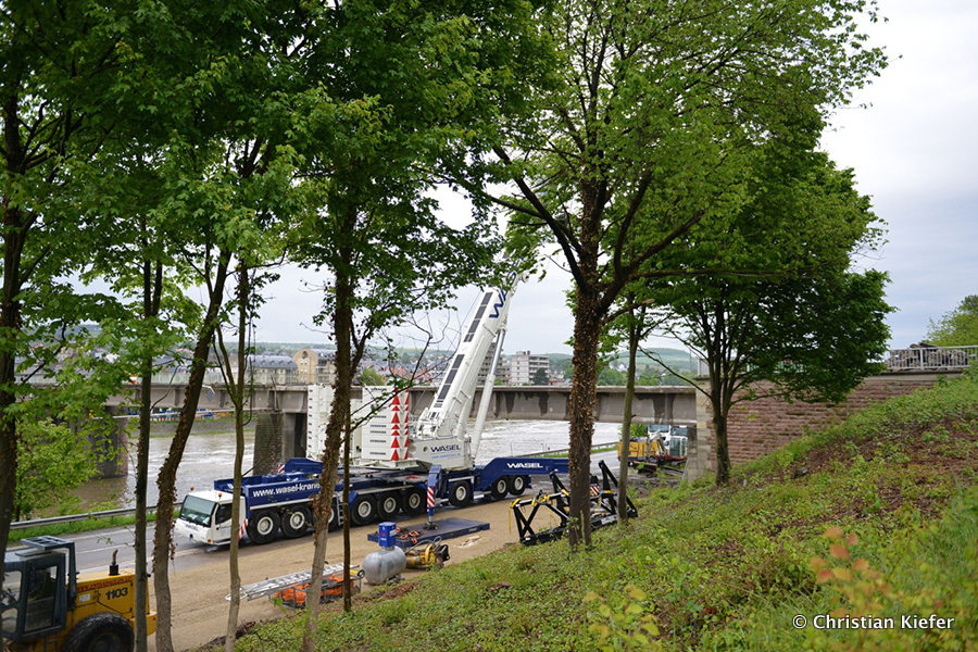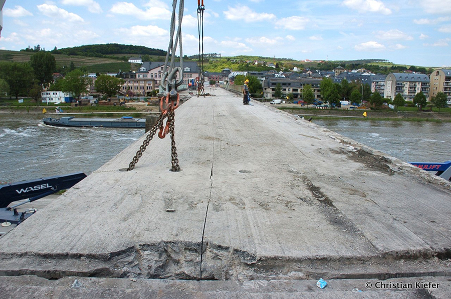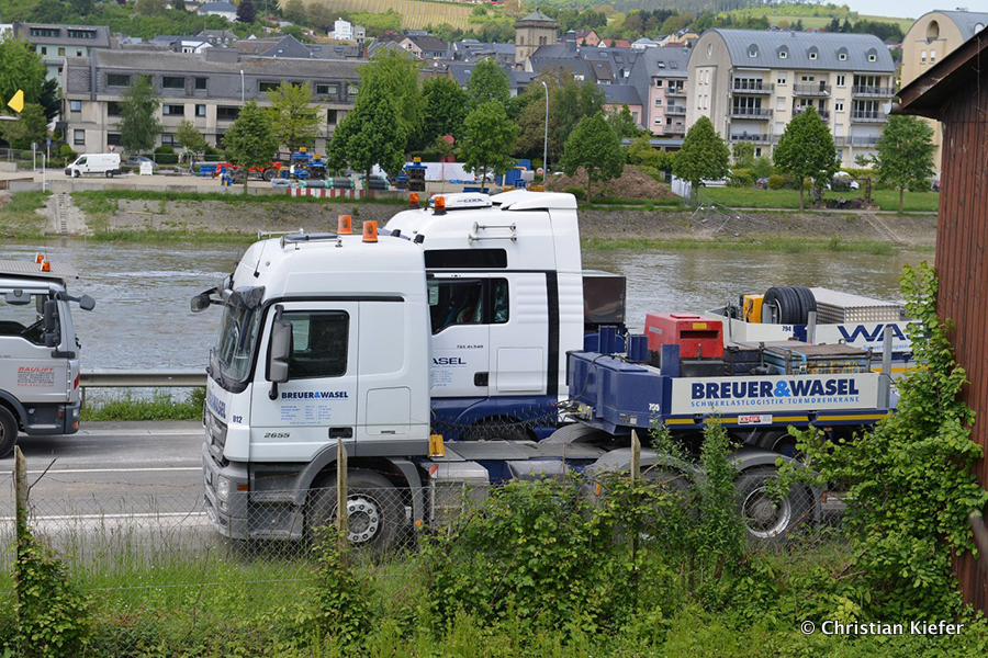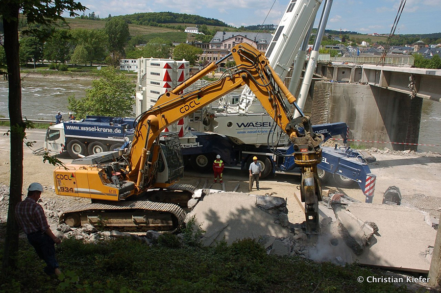 Am 28.05.2013 war der neue Liebherr LTM 1750-9.1 von Wasel im Saarland zu sehen. Die Grenzbrücke über die Mosel, die Grevenmacher (Luxemburg) mit Wellen (Deutschland) verbindet, wurde abgerissen. Die Bilder sind von Christian Kiefer, der vor Ort war.